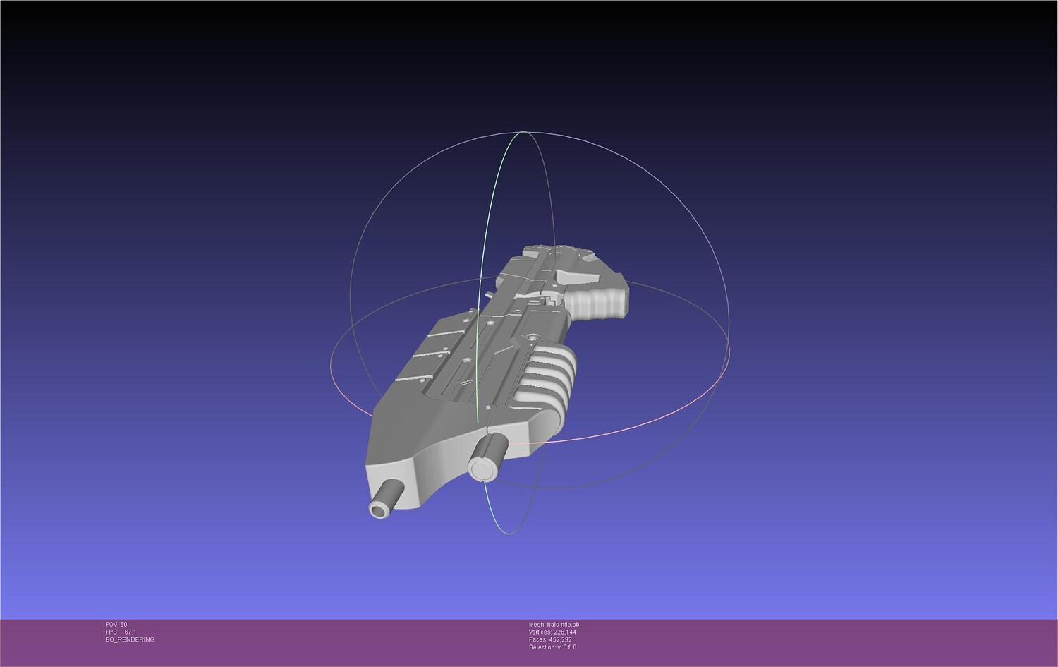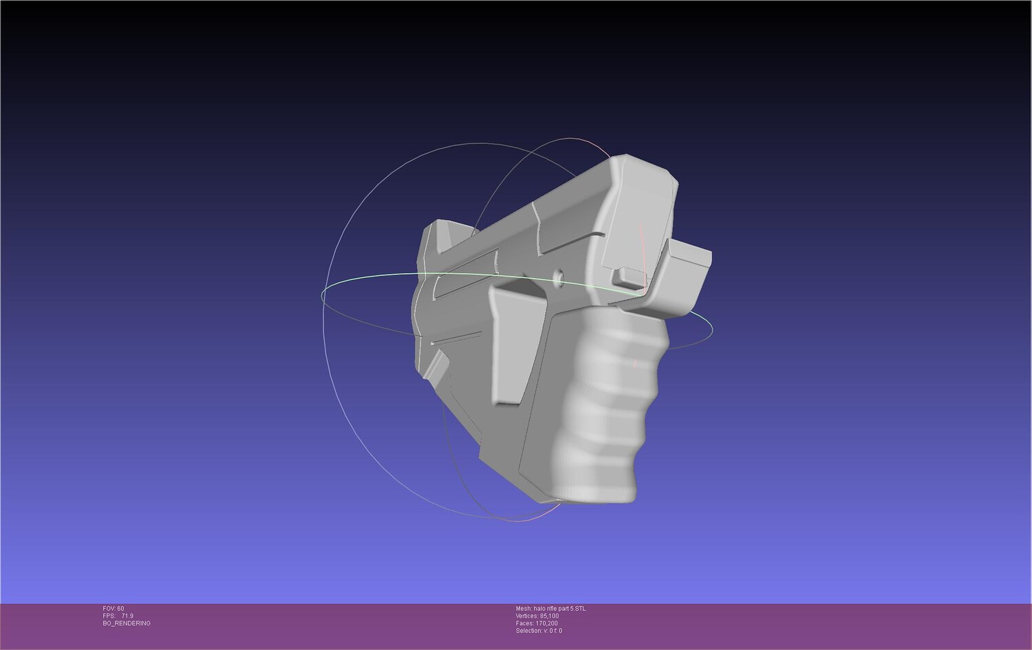 A basic 3d-printable model of the assault rifle MA5B from the videogame HALO this includes a full version, one split into parts for easier painting and one with a hollow upper part and a screen to make a working ammo counter