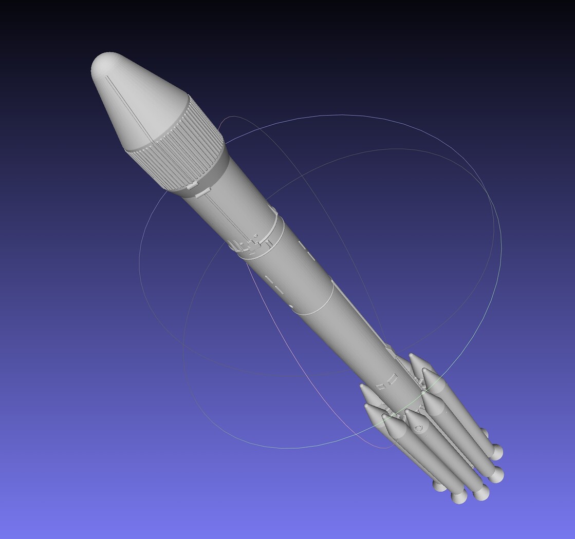 A 3d model of a Delta II Heavy Rocket - a United Launch Alliance launch vehicle that could lift over 6000kg into low earth orbit - and more than 1000kg onto interplanetary trajectories being used to launc hseveral scientific spaceprobes the model is full scale but designed ot be scaled down and easily printable at around 1/100 scale allthough smaller or larger models are still printable