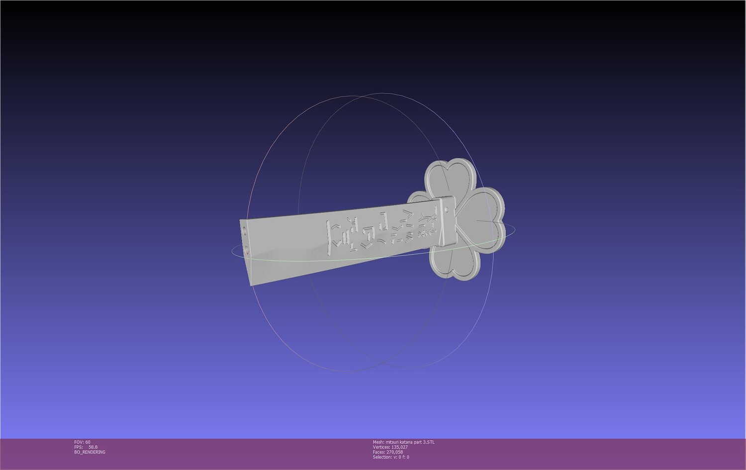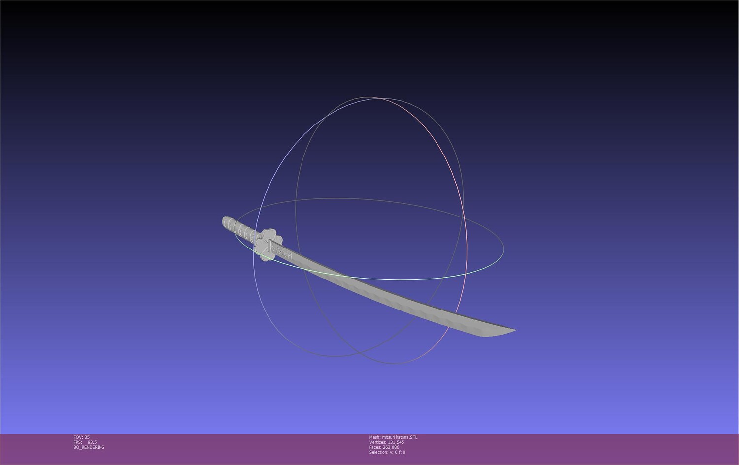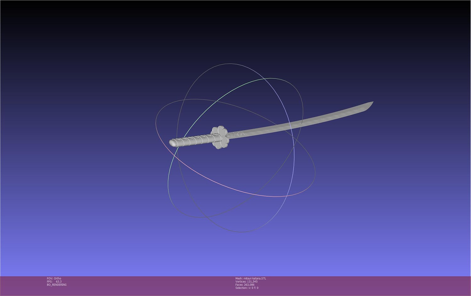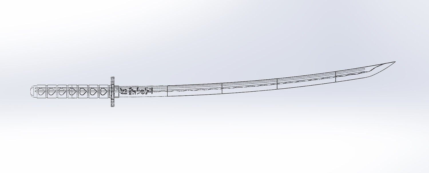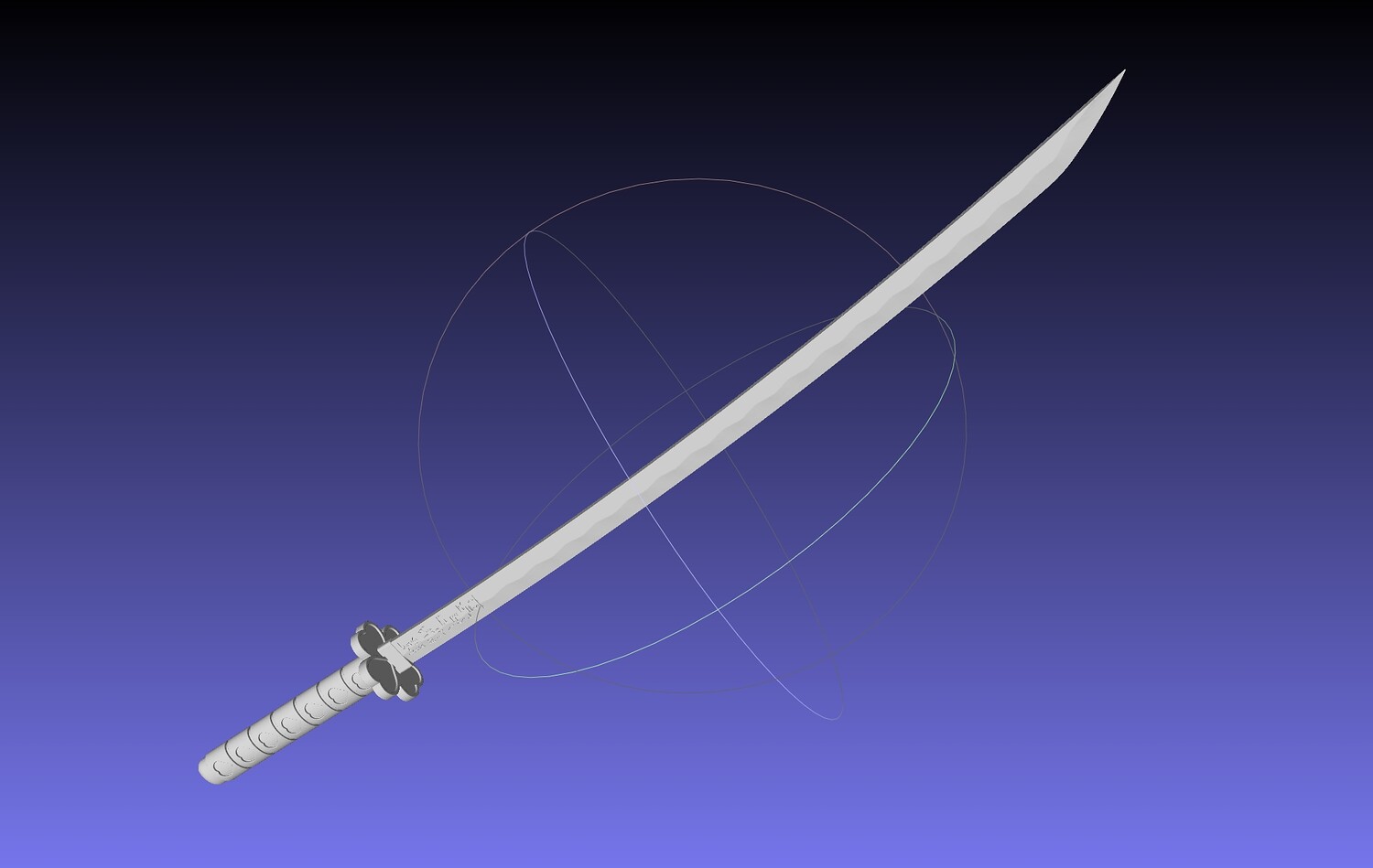 A 3d-printable model of the sword used by the character Mitsuri Kanroji from the anime Demon Slayer, made by commission but allowed to publish The model is slightly simplified and designed with priority on printability It includes both a full model of the sword and a version split up into 7 parts that can be assembled using two slightly bent 108cm long 4mm support rods The sword is about 120cm long in total and designed for easy printability, assembly and strength