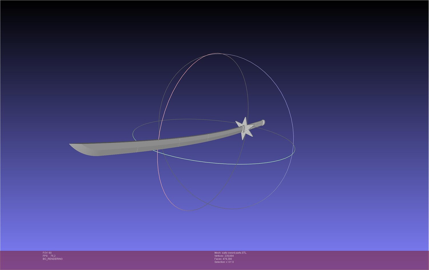 A 3d-printable model of the sword and scabbard used by Saitou Furoufushi from Bleach including 2 slightly different versions of the sword.