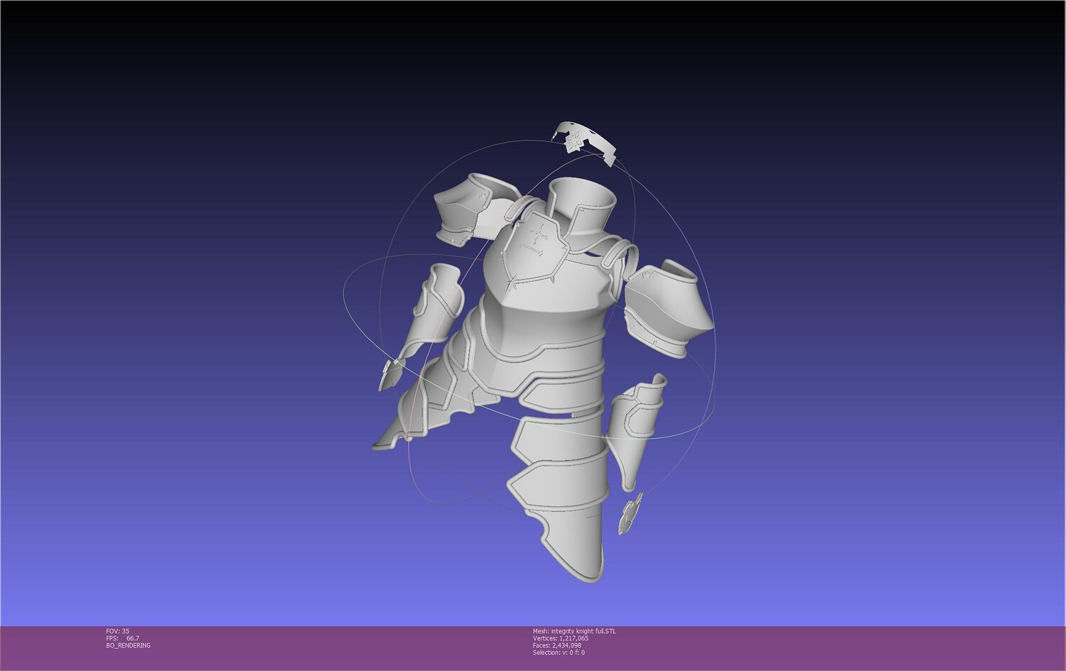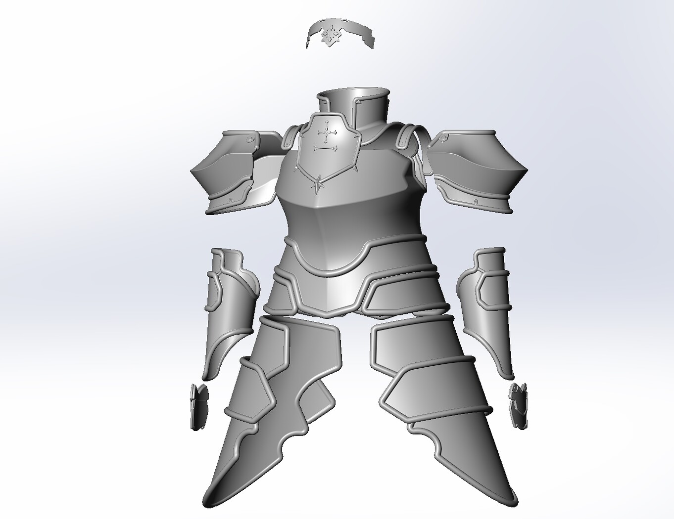 A set of 3D-printable models of the armor worn by the integrity knights from the anime sword art online alicization made by commission this includes the chestpiece, neck, chest shield, headband, shoulderpieces, inner shoulderpieces, armpices, glove backs, lower chestplate segments, hip pieces and hip piece covers all models are designed for easy printability and practicality