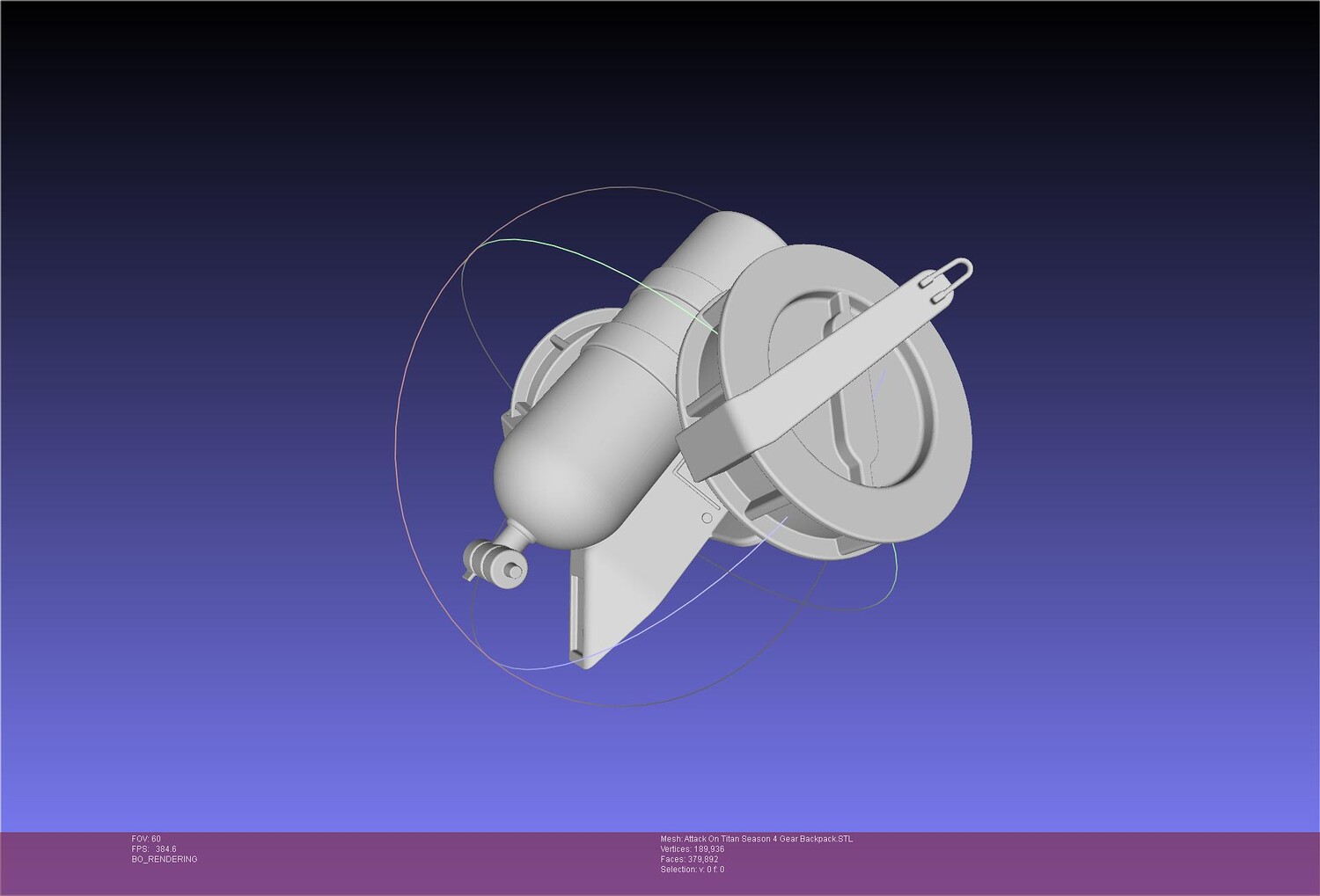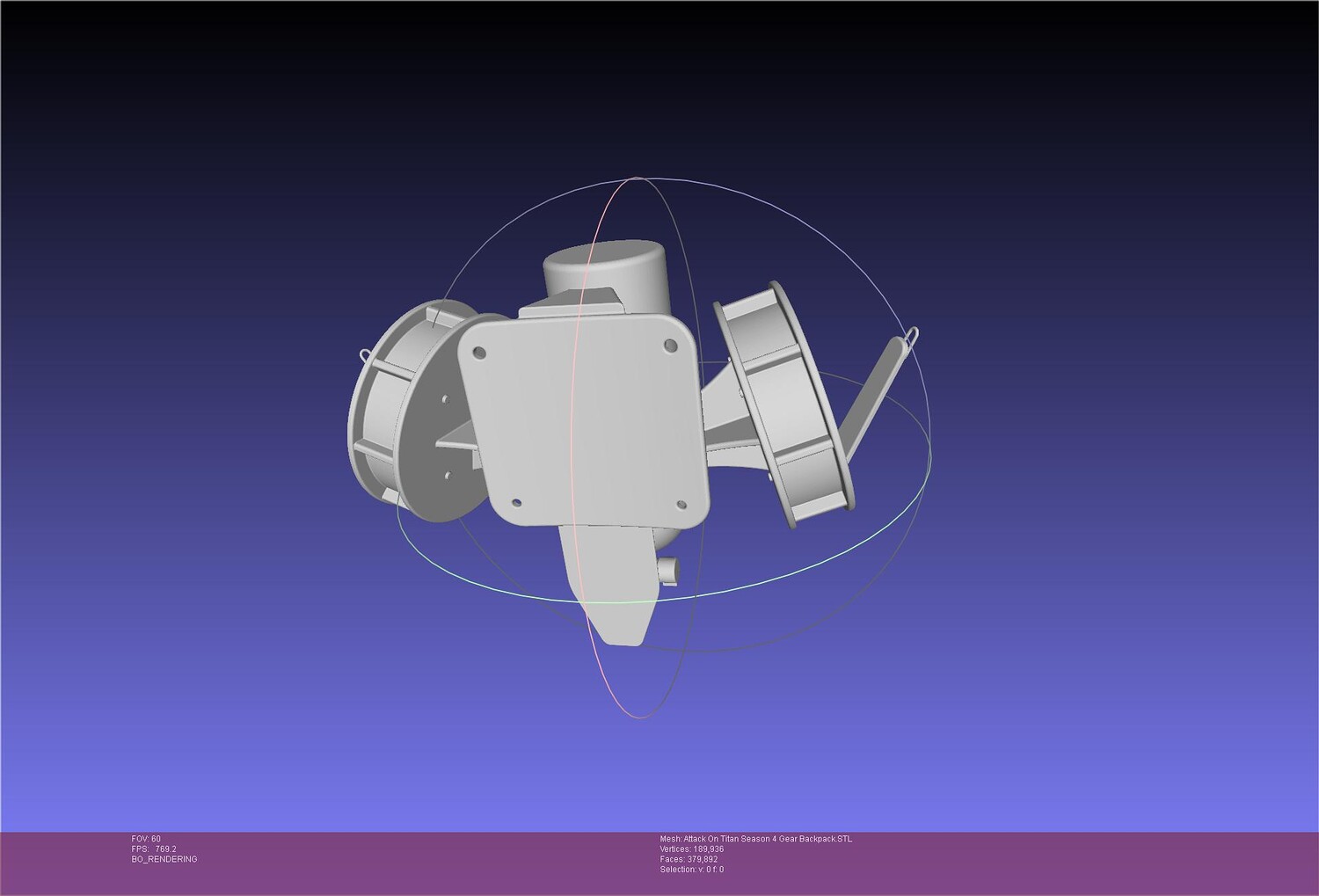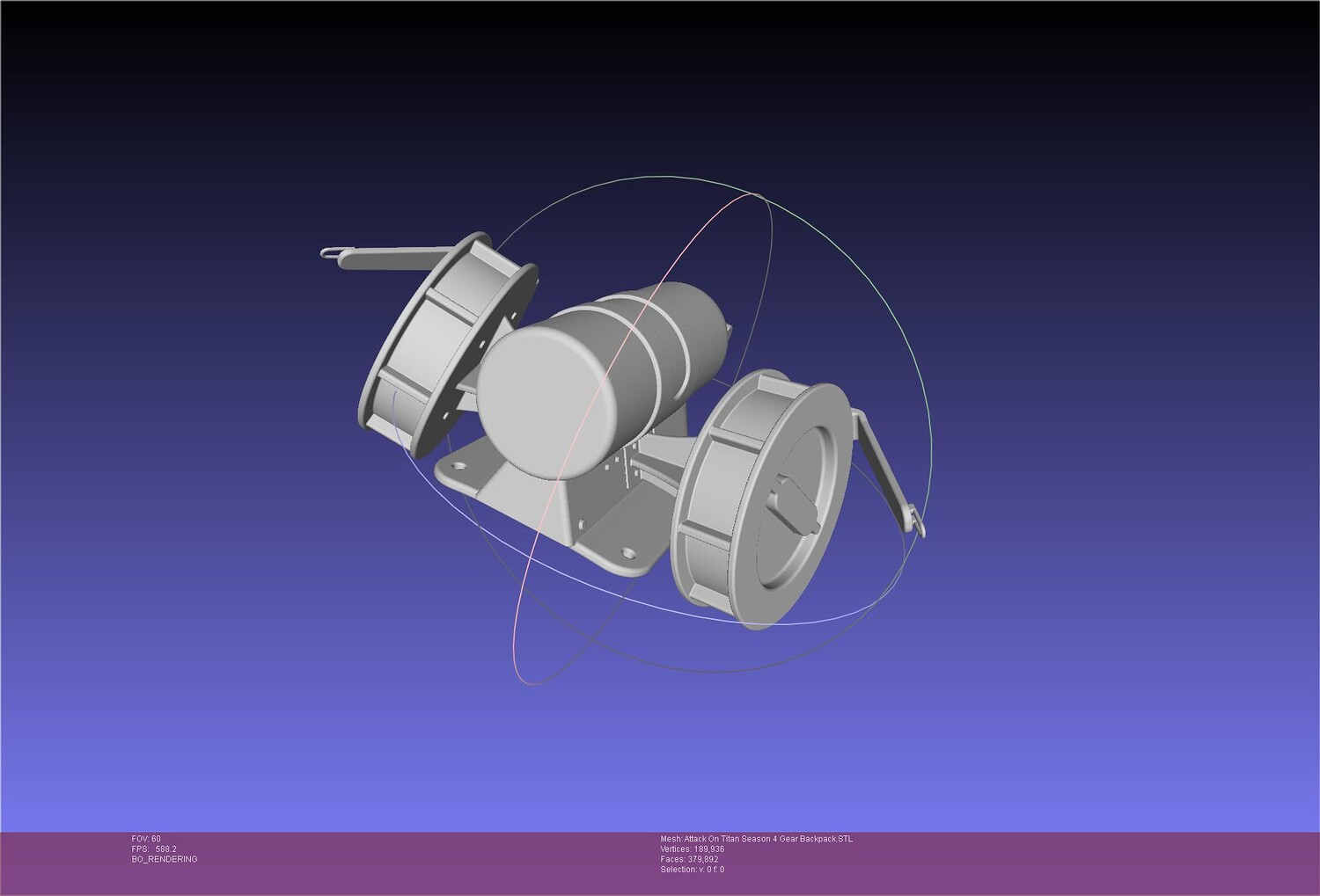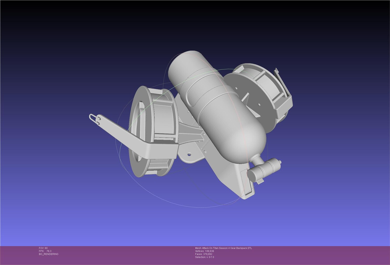 A 3d-printable model of the backpack part of the new gear seen in Attack On Titan season 4 the model is made for printability and can be scaled to fit but may have to be split up to print more easily