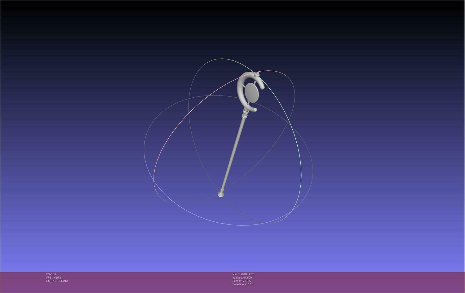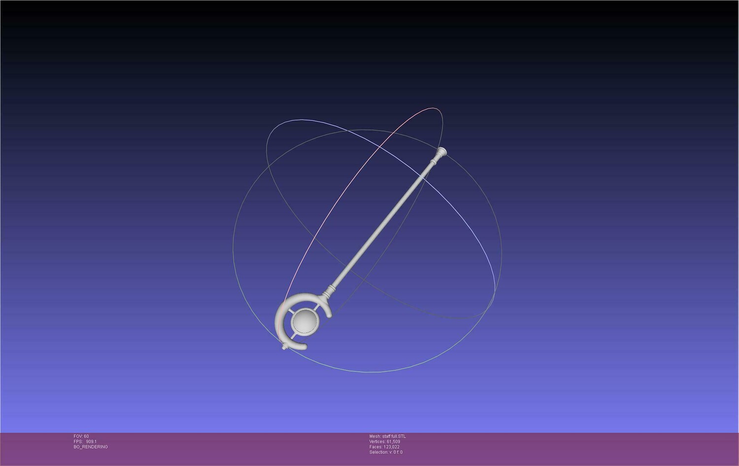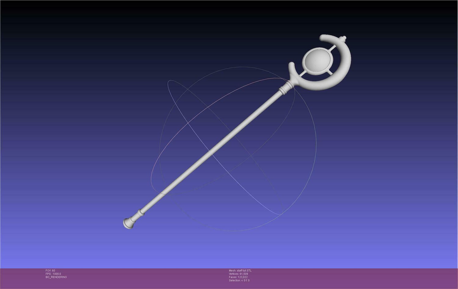 A 3d-printable model of Frierens staff from the anime Sousou no Frieren It includes a full 3d model and one split up into 4 parts to be assembled with a 36 mm staff and 4mm pegs