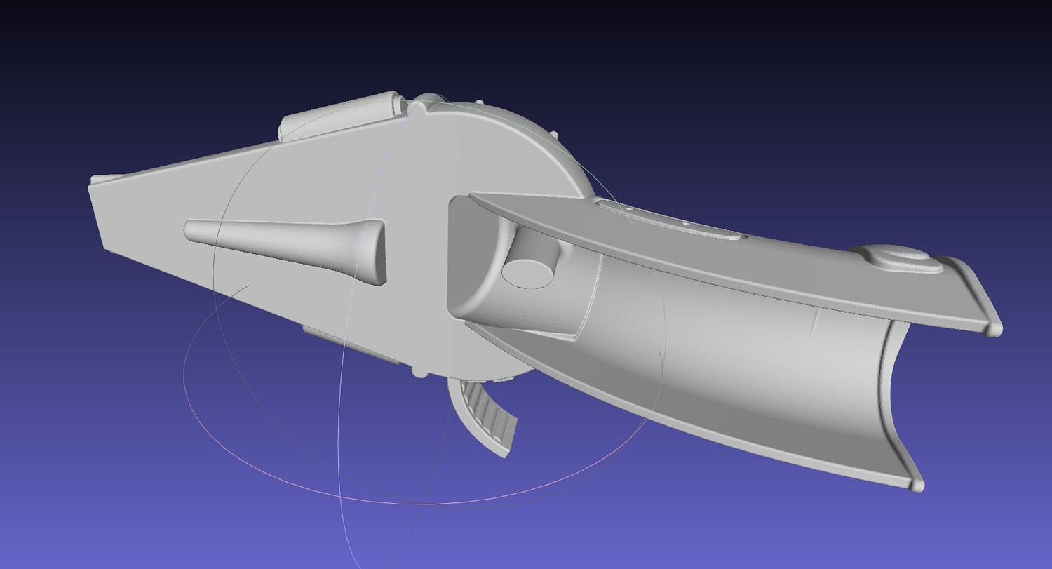 A printing optimized model of the netgun from the Predator 2 movie the model can be scaled for different users and has a simple grip as well as wristguard