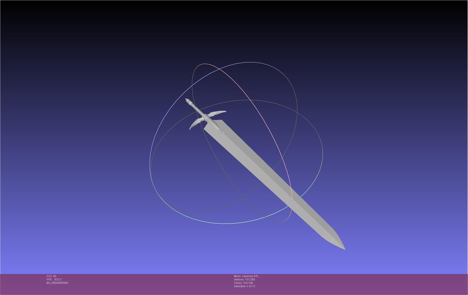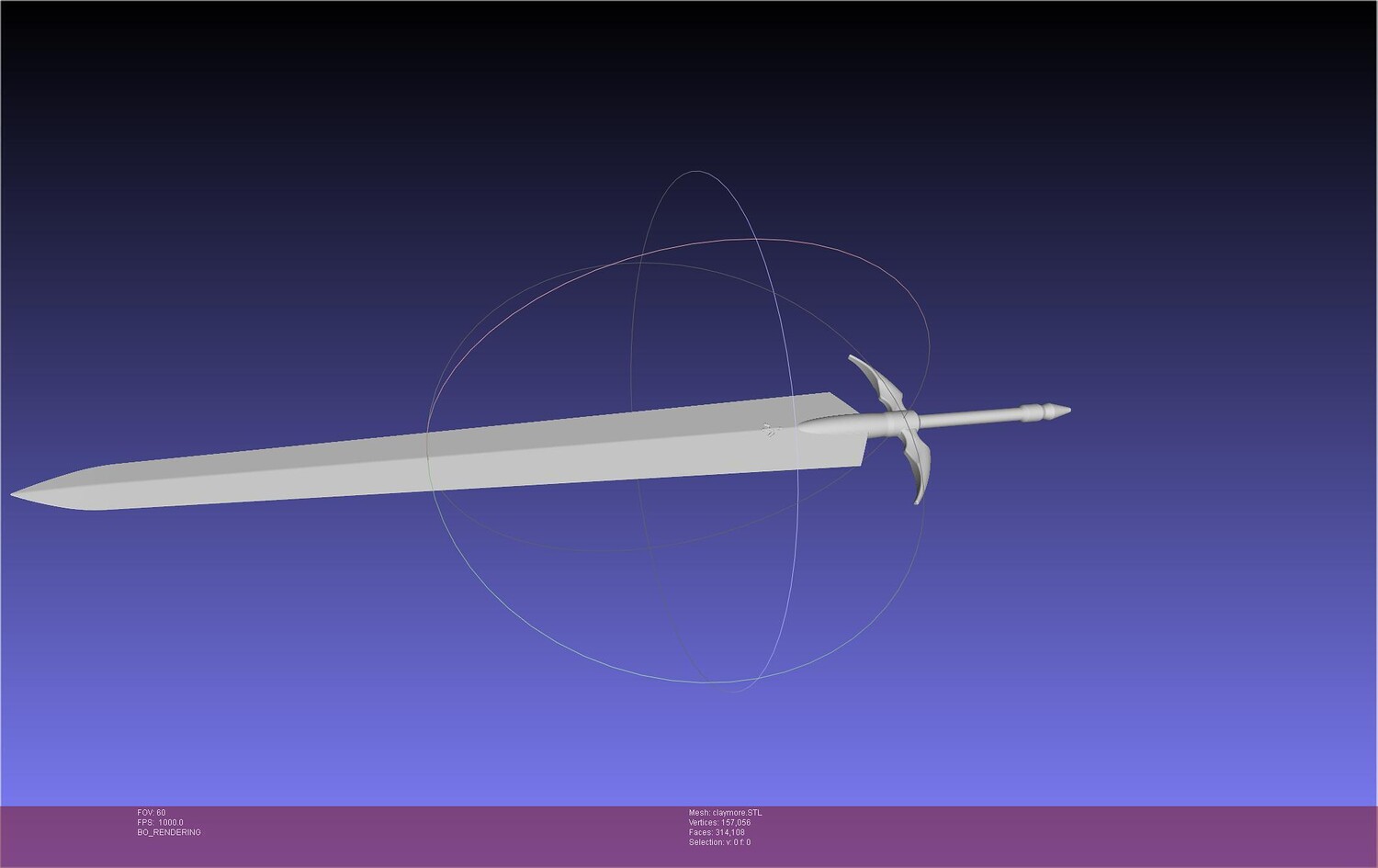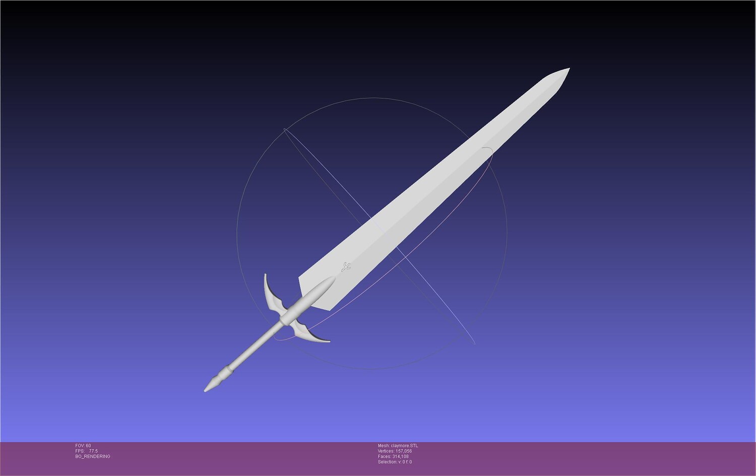A 3d printable model of Clares Claymore sword from the anime Claymore