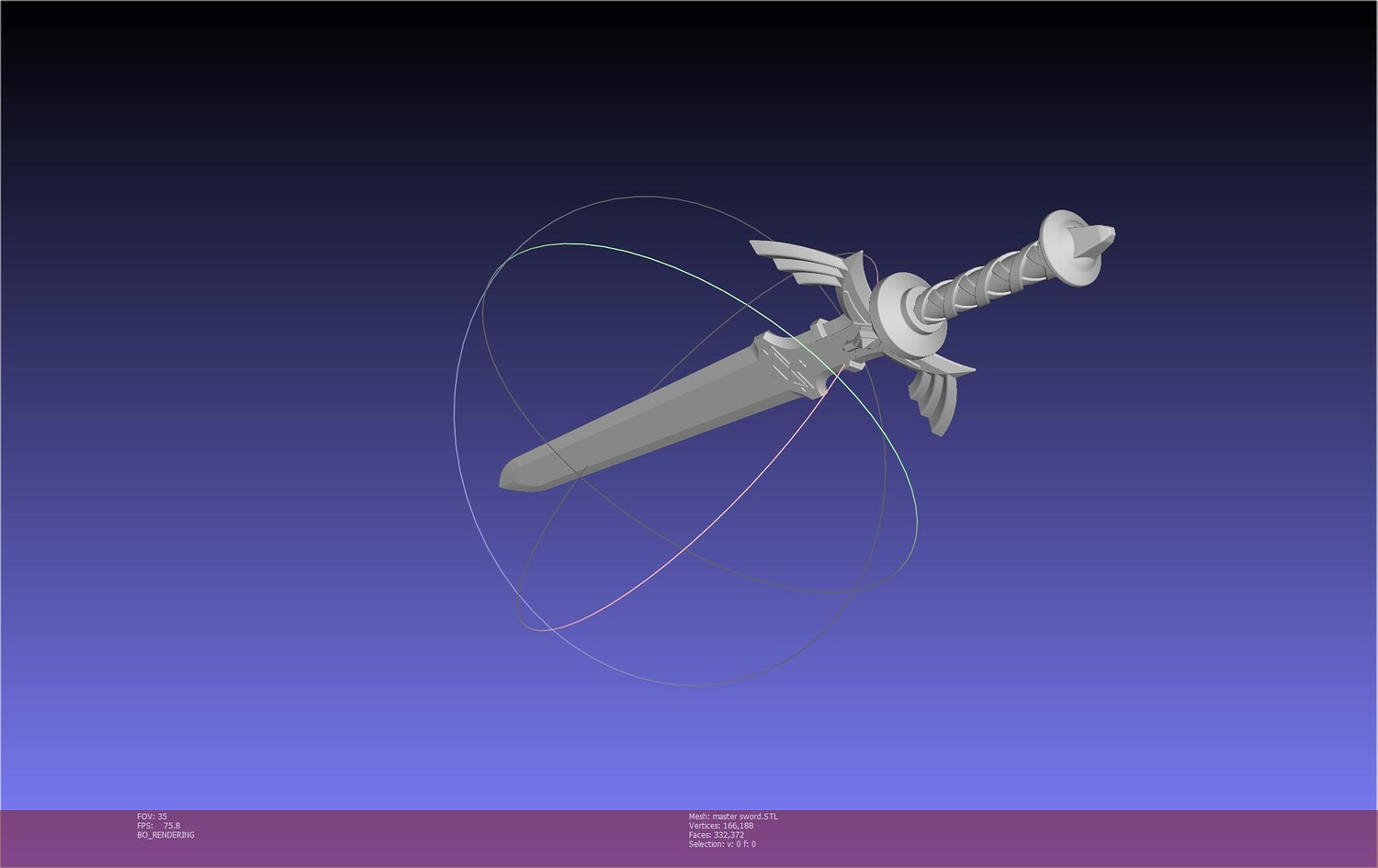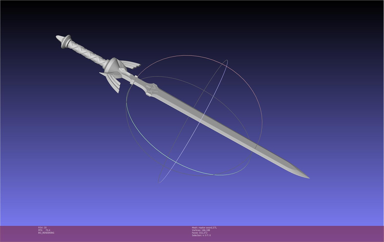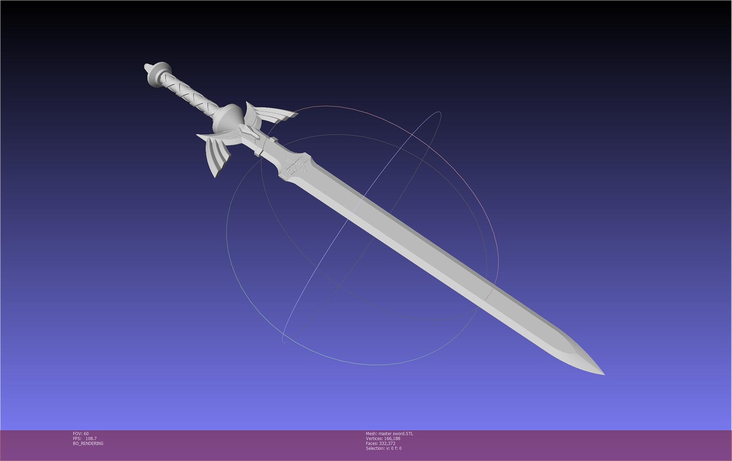 A 3d-model of the master sword from the zelda games this includes both a full model and a version split up into 7 parts for easier printing and assembly using 4mm support rods all parts are designed for easy printability and include both solid files for easy editing and printable stl and mesh files