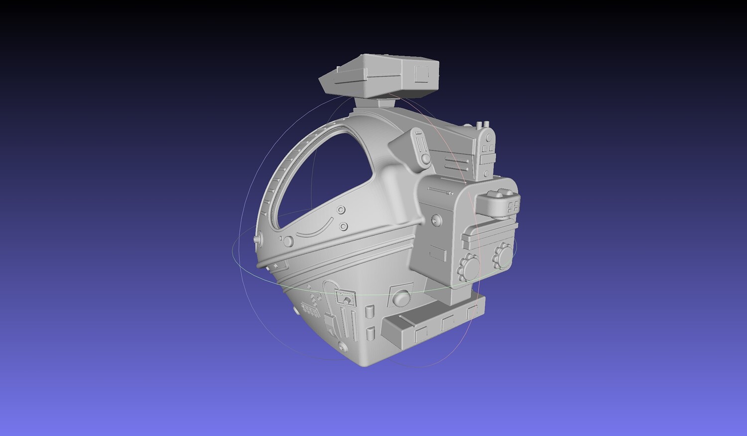 A 3D-printable model of the helmet of the spacesuit from the movie "Alien" made by commission the model can fit a glass or plastic dome with an outer radius of 186mm and a thickness of 3mm cut off from the 180° bottom by 14mm or 4° the model is designed for printability and can be scaled but needs to be split up for printing it includes a full version as well as one split in half for adding in the dome more easily but are still too large for most printers