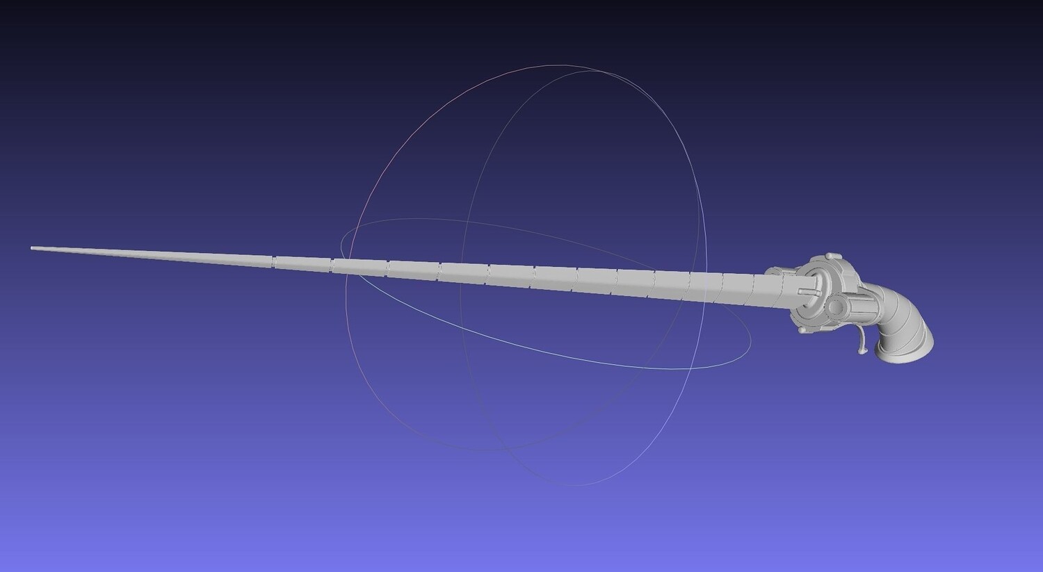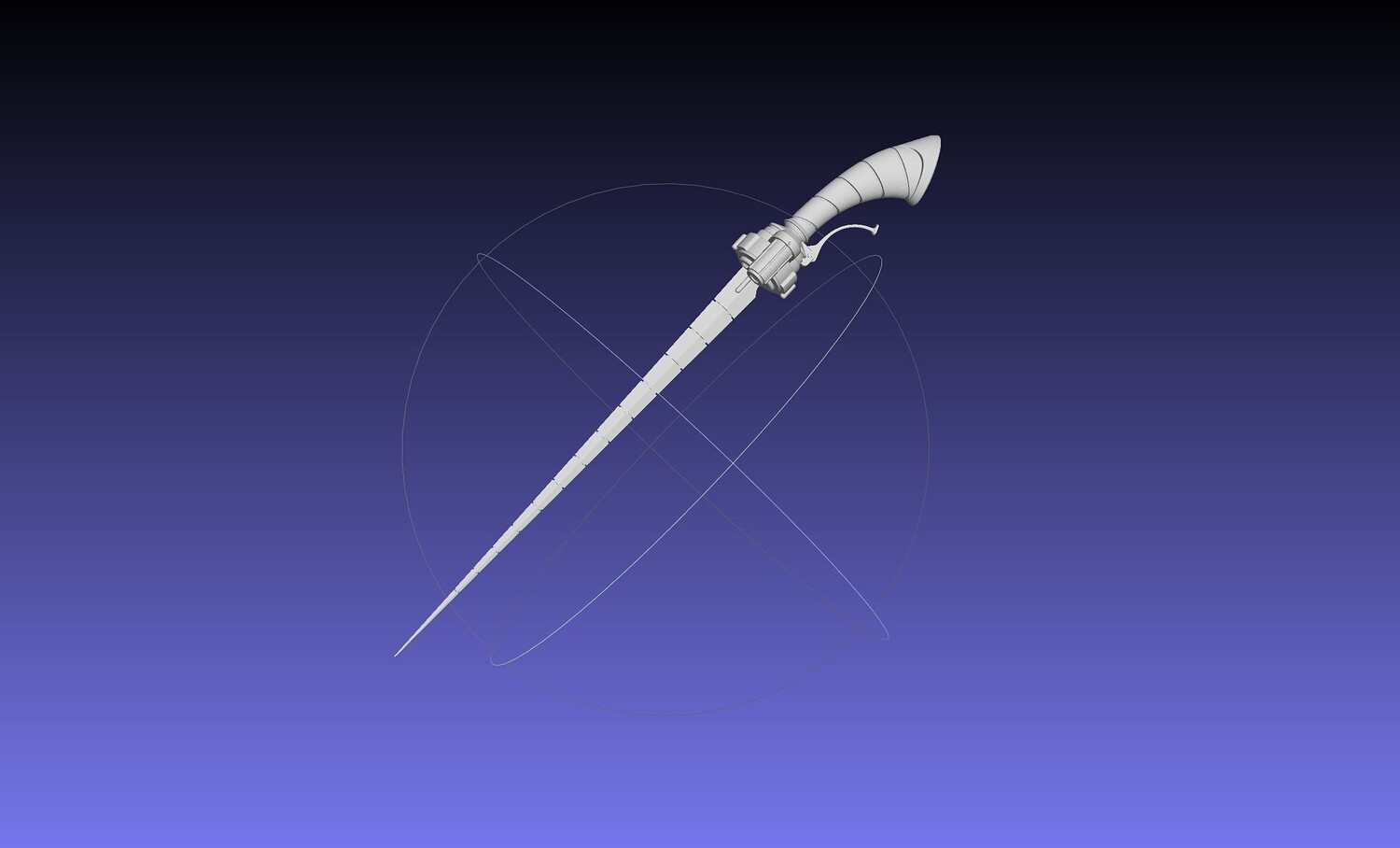 A 3D-model of the whip/sword weapon used by the character Ilia Amitola from the webseries RWBY it contains both a full single piece model as well as a version split up into 9 parts with a moving trigger/grip and hollow spaces for LED illumination inside the full weapon is about 118cm long with the blade being about 800mm long but it can be scaled both ways and still be printable