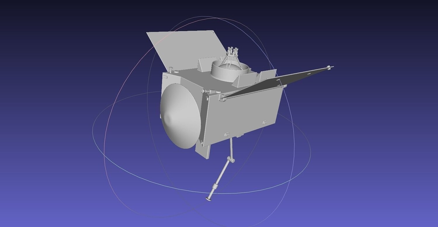 A simplified model of the OSIRIS-REx asteroid study and sample return spaceprobe by NASA the model is somewhat simplified in order to ensure printability - when printed on the side and split in halves it can be printed with relatively few supports and all details are printable with average nozzle diameters if the model is scaled down for a regular sized printer