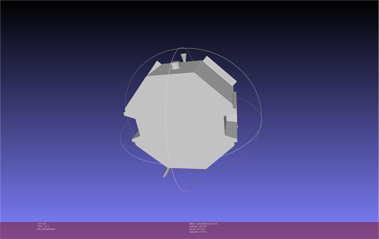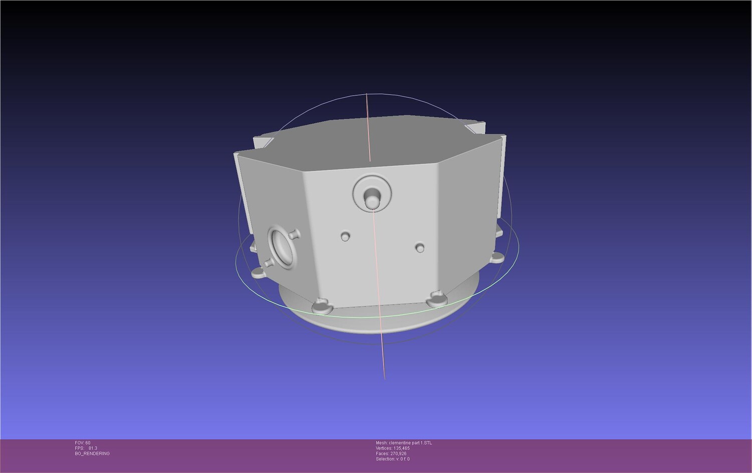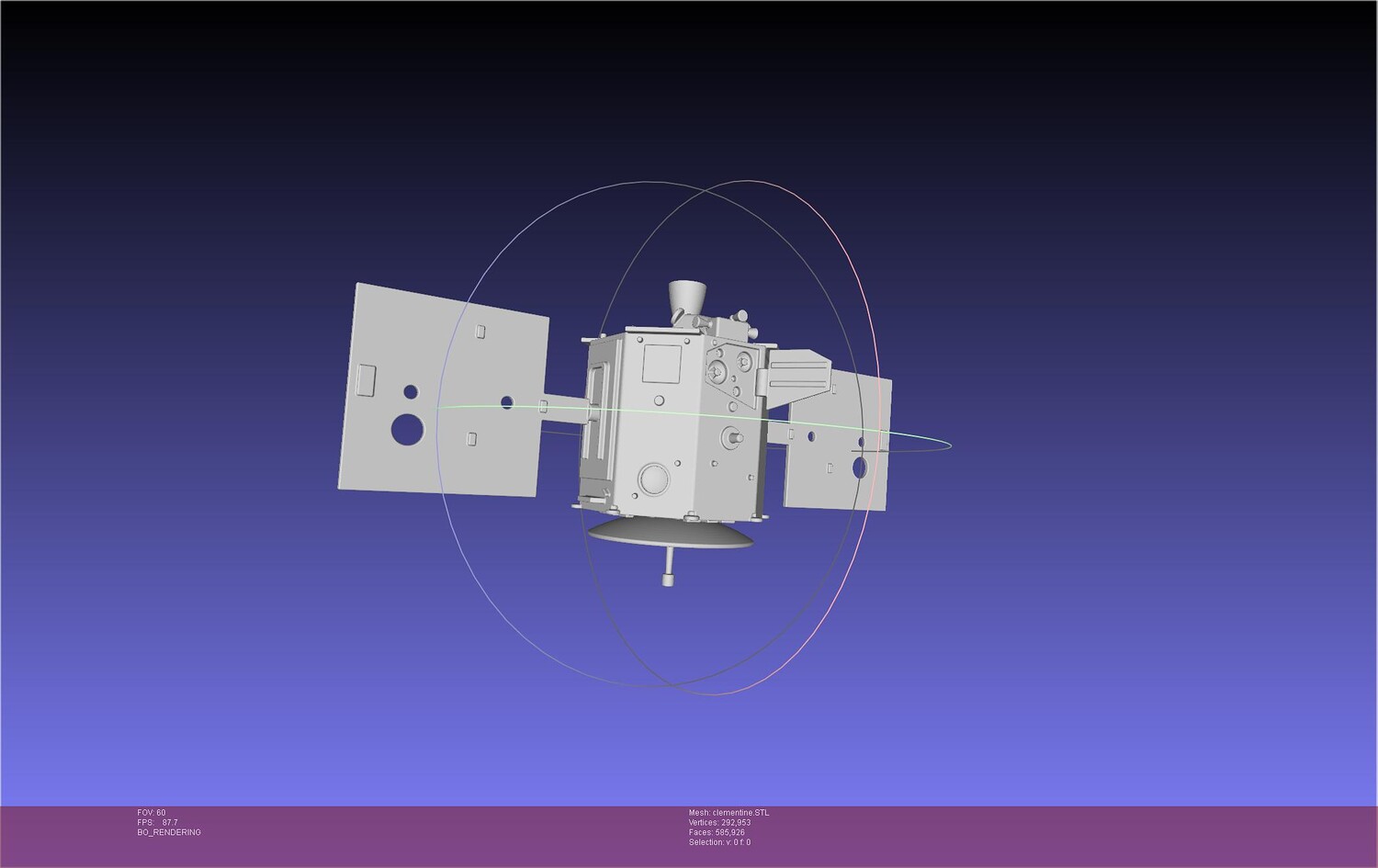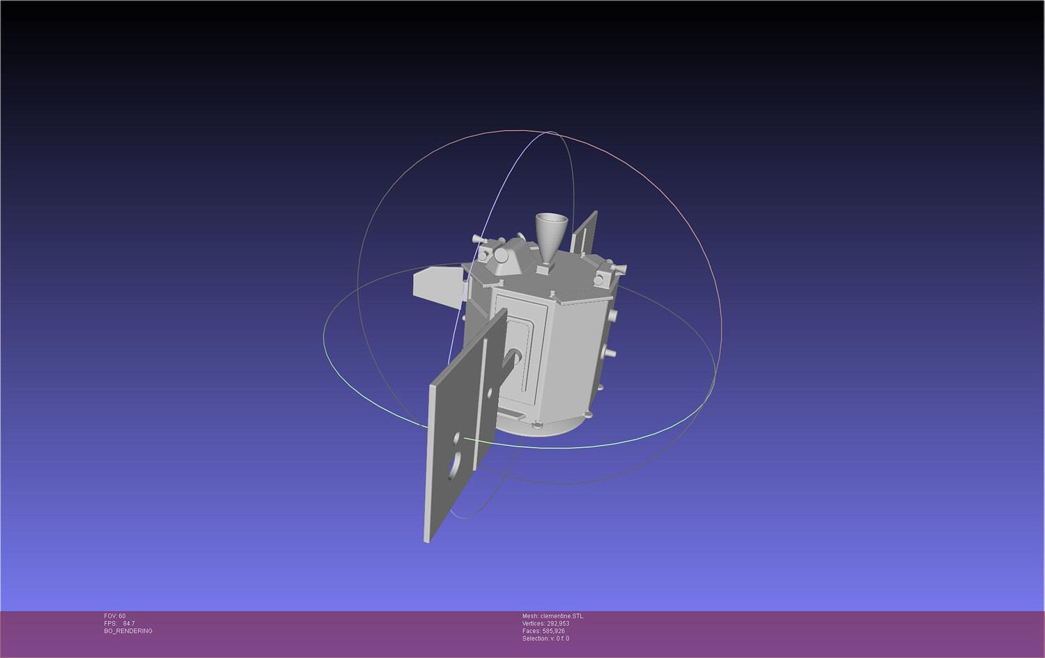 A basic 3d model of the NASA/BMDO Clementine satellite designed to be 3d printed at around 1/10 scale, made by commission and allowed to publish