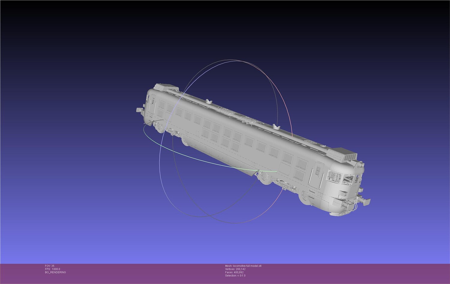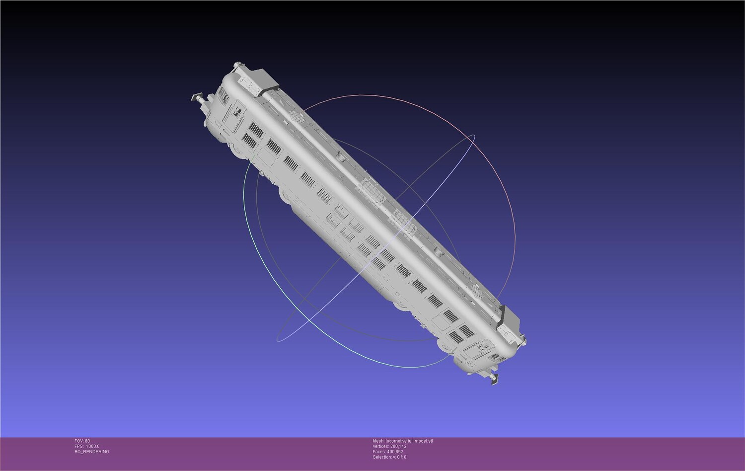 A 3d-printable miniature of the RENFE 354 locomotive made by commission this includes a full model and one split into separate parts
