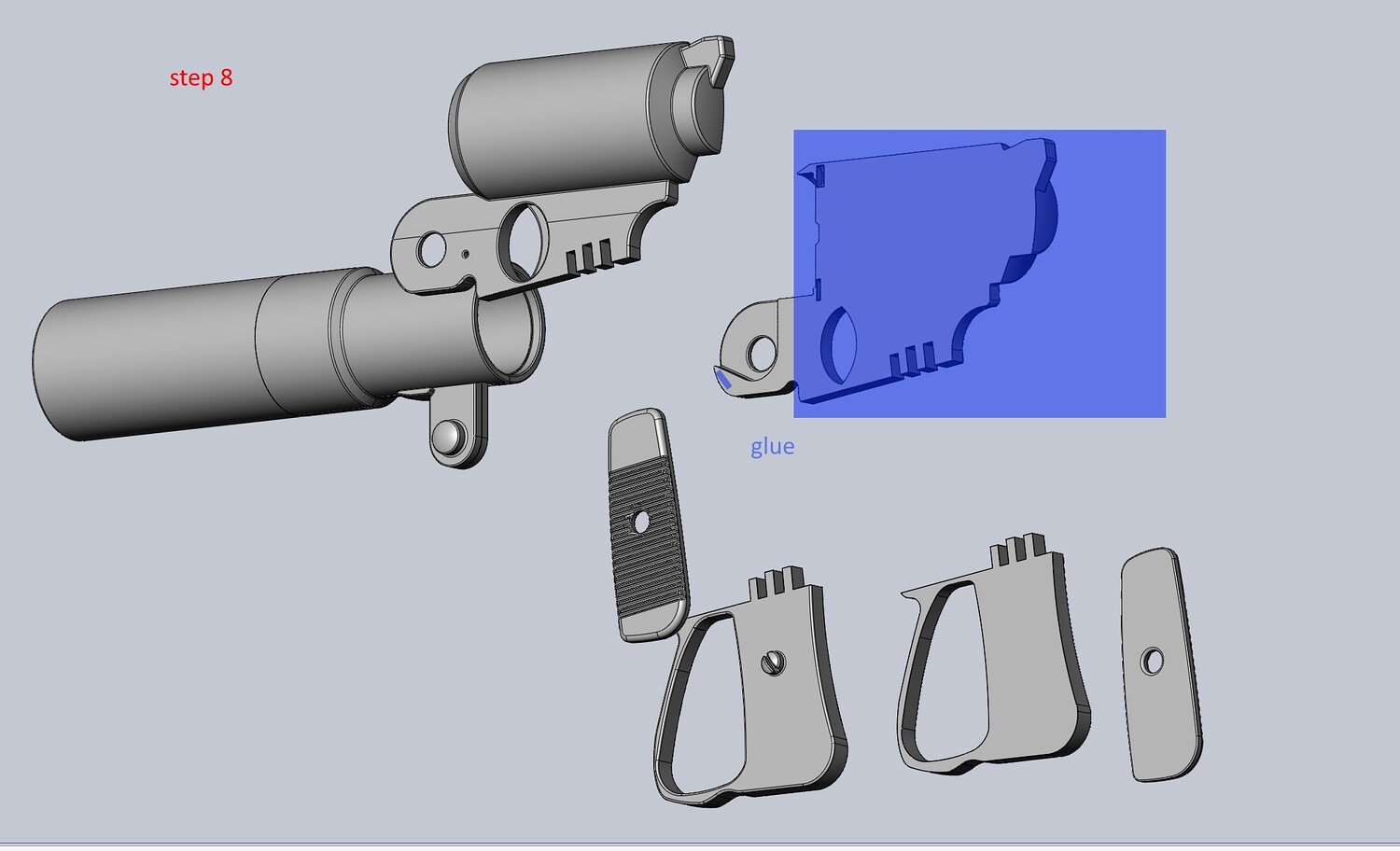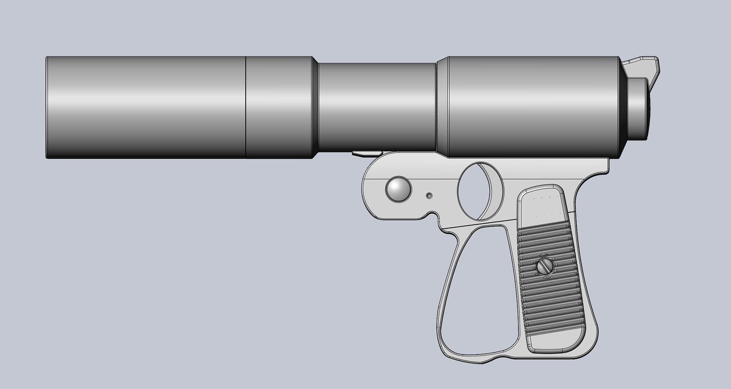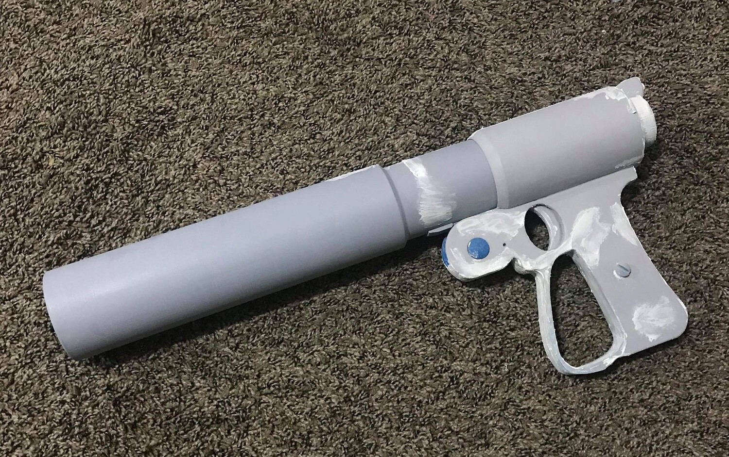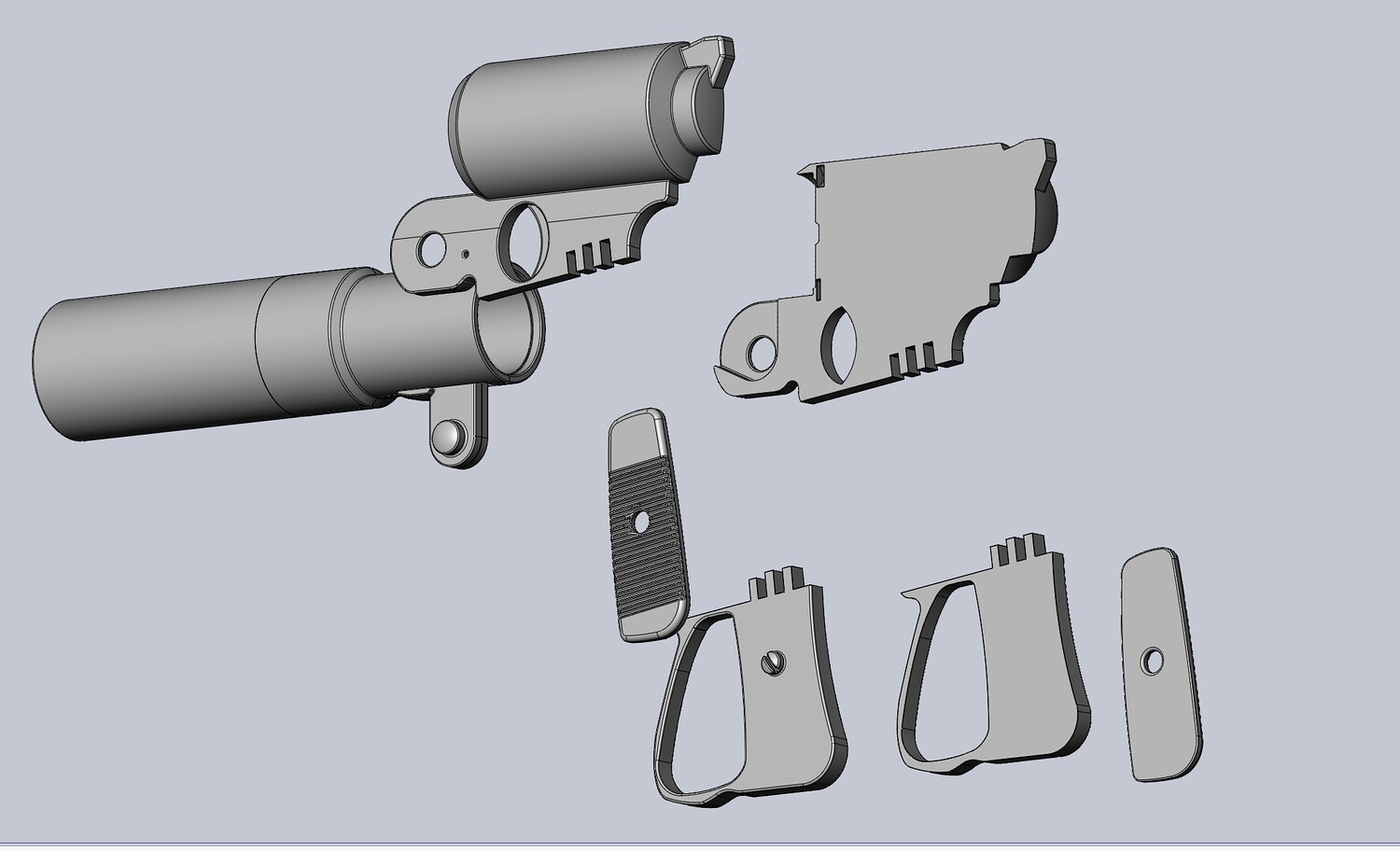 A 3d-printable model of the grenade gun seen in the ghibli movie laputa made by commission this is designed to be printed and assembled in parts with magnets glued into it to make it lock shut it can be opened, loaded and closed again with a toy cartridge