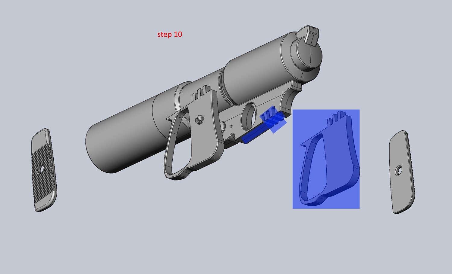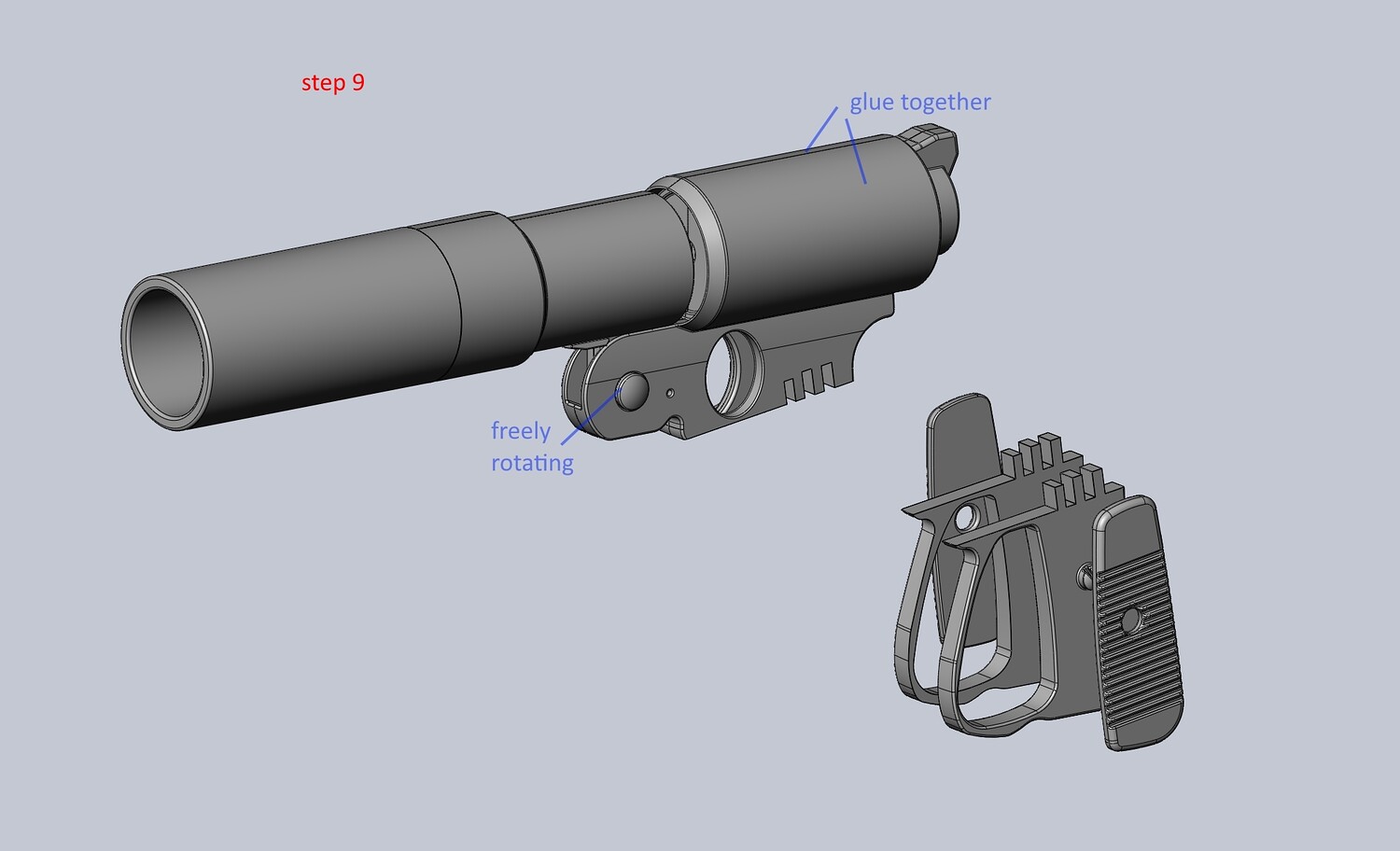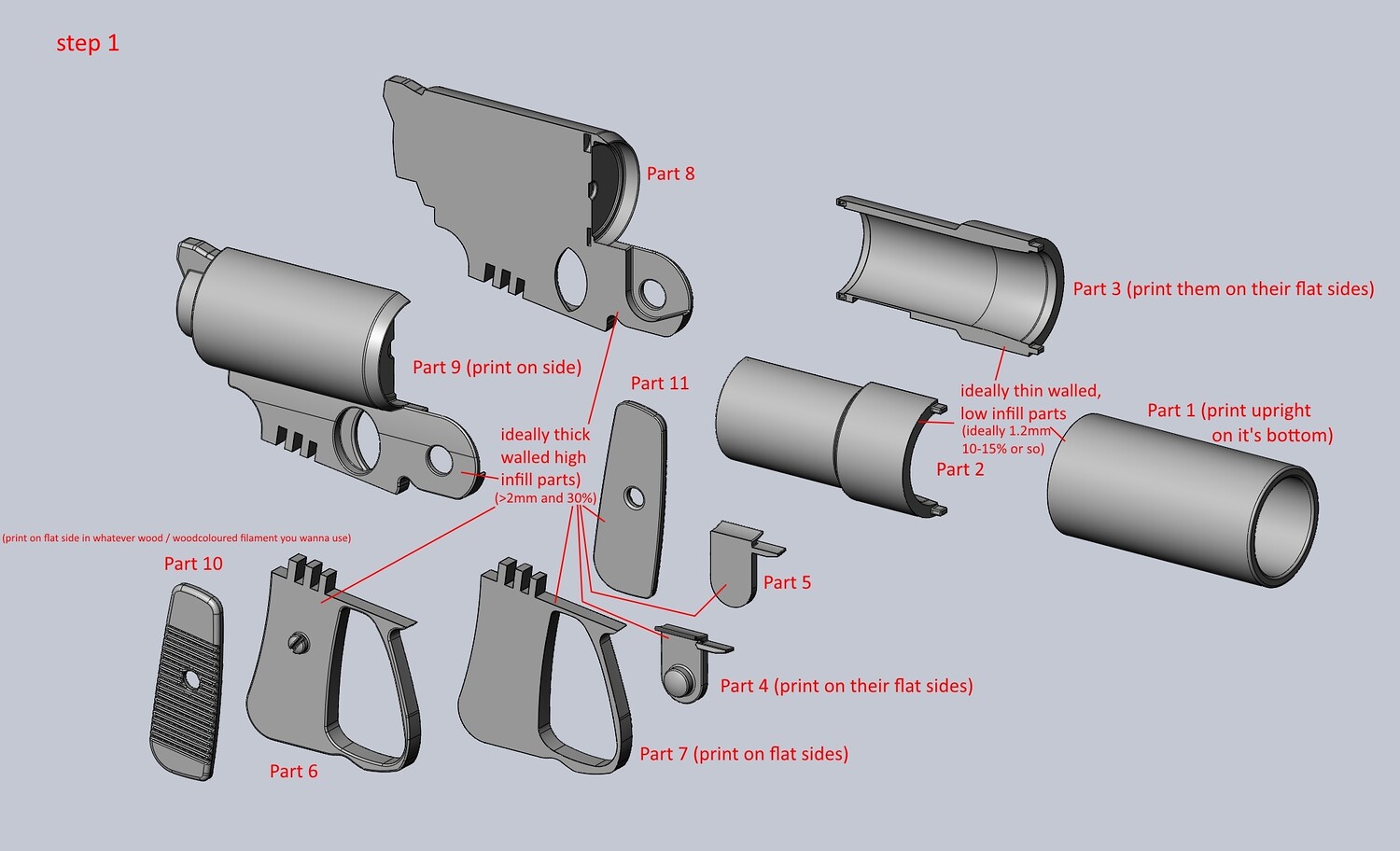 A 3d-printable model of the grenade gun seen in the ghibli movie laputa made by commission this is designed to be printed and assembled in parts with magnets glued into it to make it lock shut it can be opened, loaded and closed again with a toy cartridge
