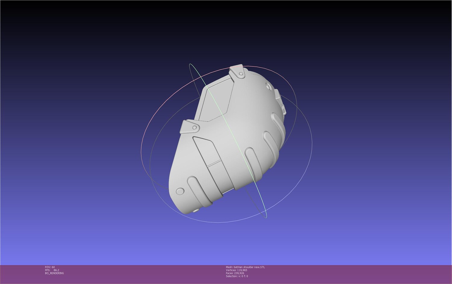 A 3d-printable model of the shoulderpiece seen in the trailers to the new batman movie made by commission the new model is based on all the available images and deailed while designed to be easily printable and sturdy enough to wear it can also be scaled and stretched to fit and remain well printable even with slightly larger nozzle sizes
