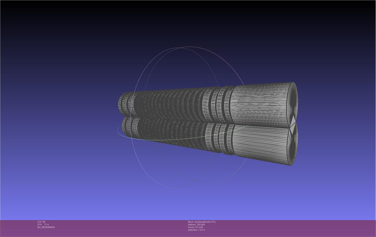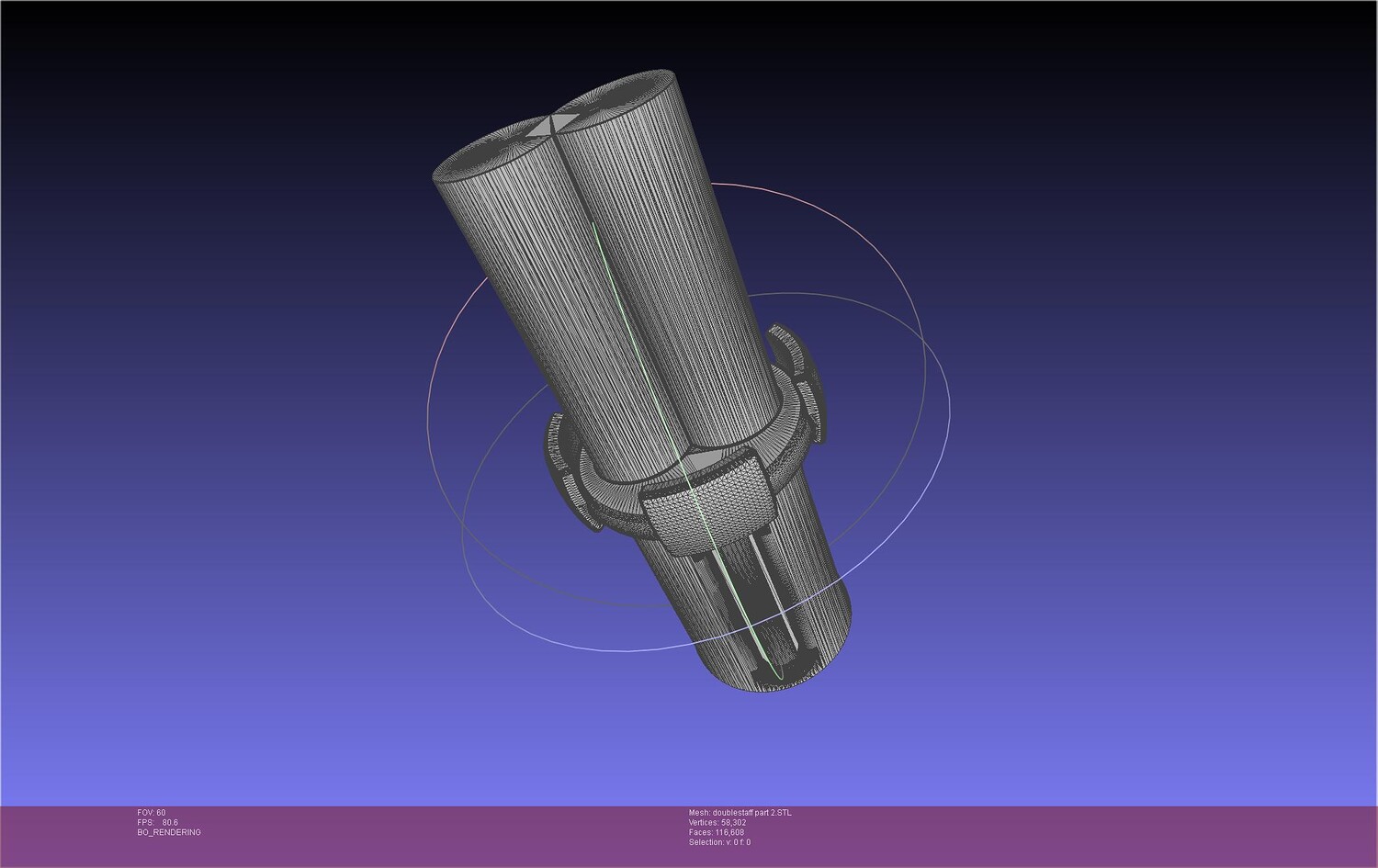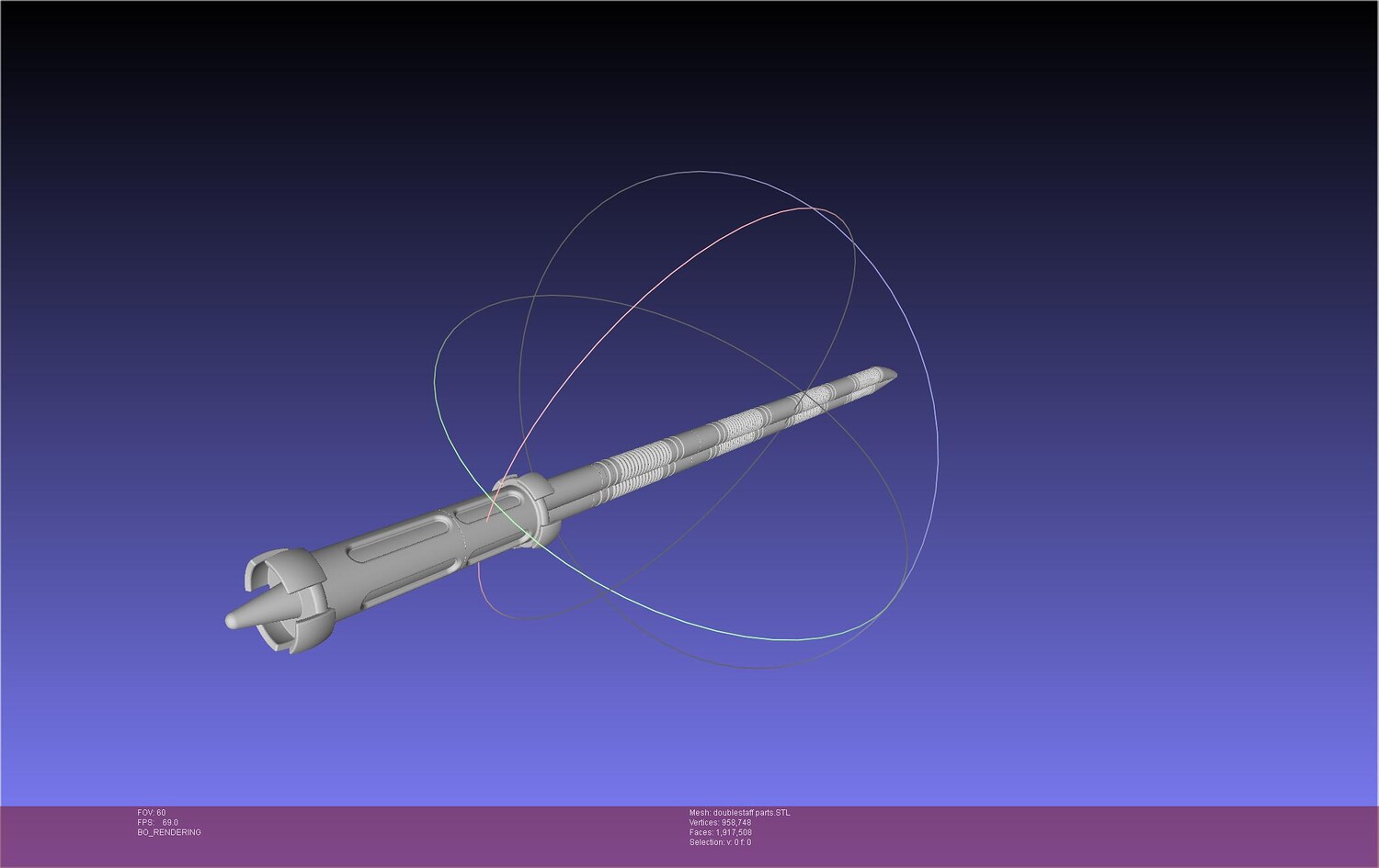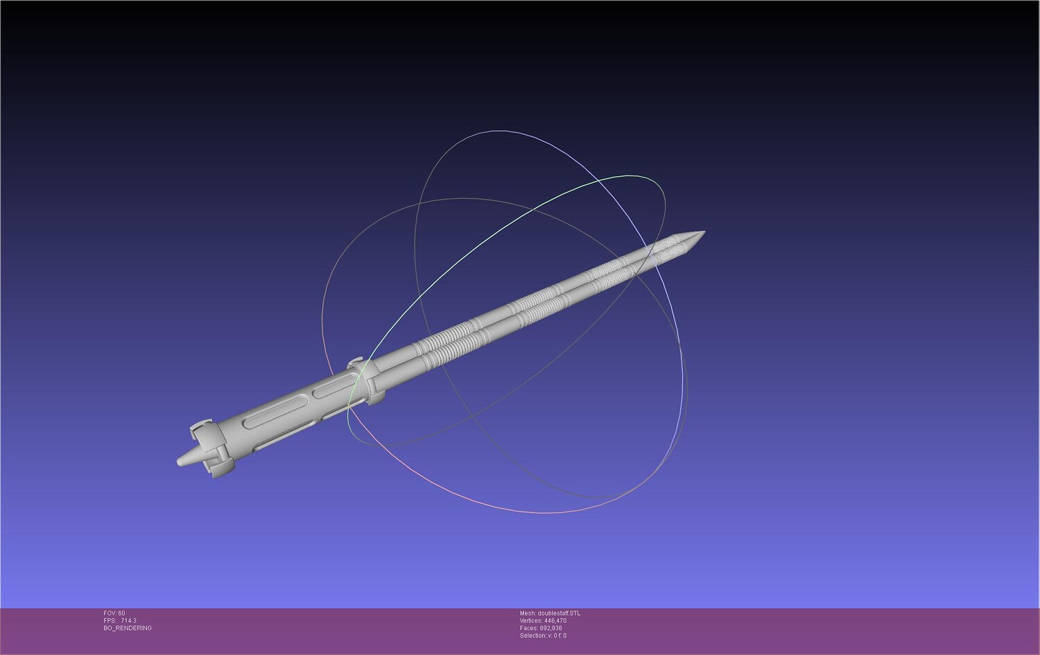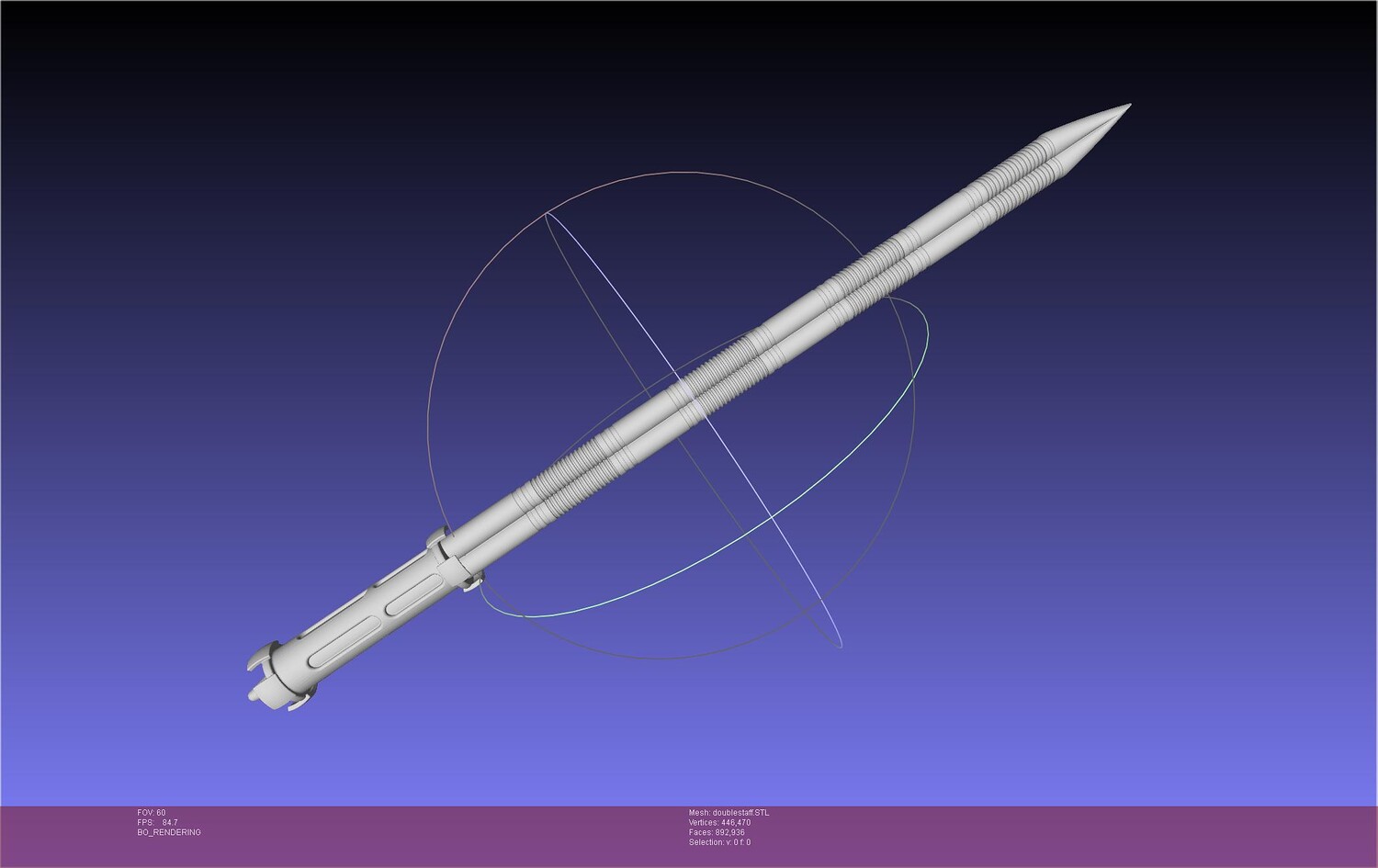 A 3d model of the doublestaff used by one of the praetorian guards from Star Wars Last Jedi this includes the full model and one split into parts for easy printing and assembly using 4mm rods