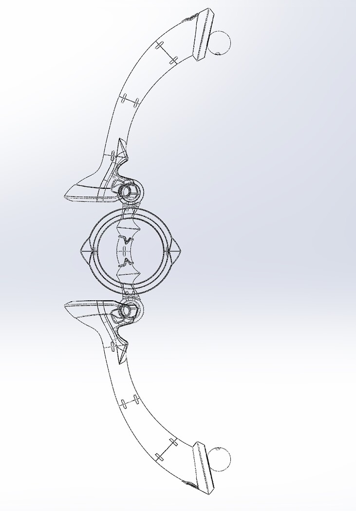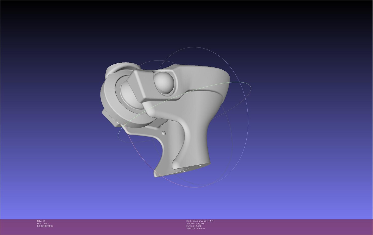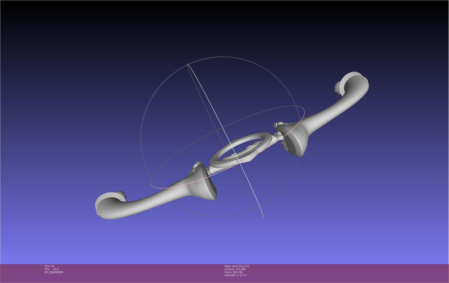 A 3d-printable model of the bow used by Sinon in the underworld part of Sword Art Online this includes both a full model and a version split up into 10 parts for easier printing and assembly using 4-5mm pegs all parts are designed for easy printability and can be scaled and remain well printable at 100% scale the full bow is about 150cm wide