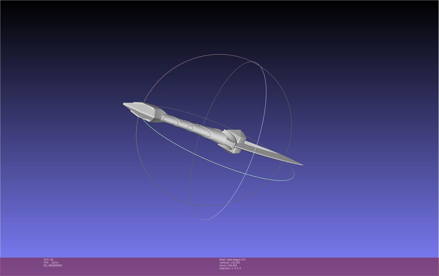 A basic 3d model of the daggerused by Akali from the videogame League of Legends designed for 3d-printingthe model is about 54 cm long and can be scaled up or down and remain well printable