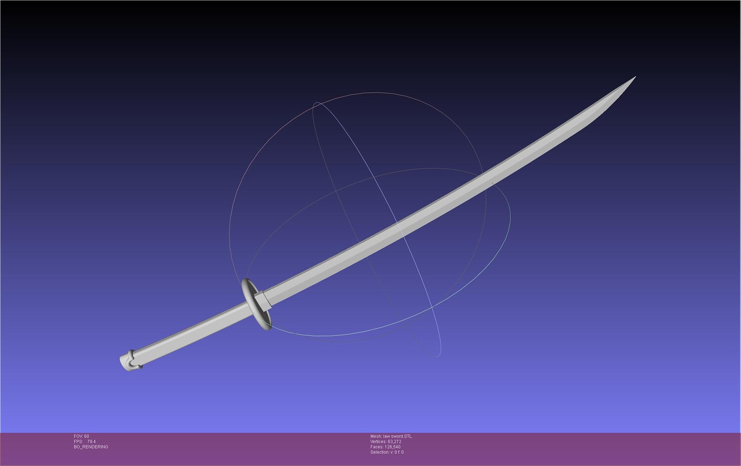 A 3d-printable model of the sword and sheath used by Trafalga Law from One Piece made by commission.