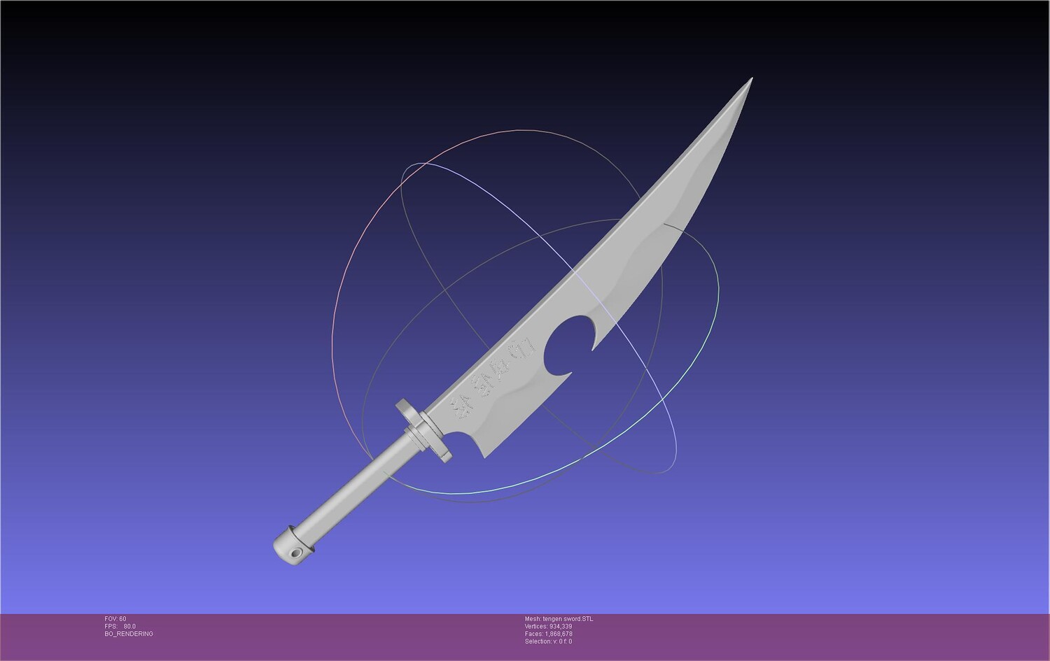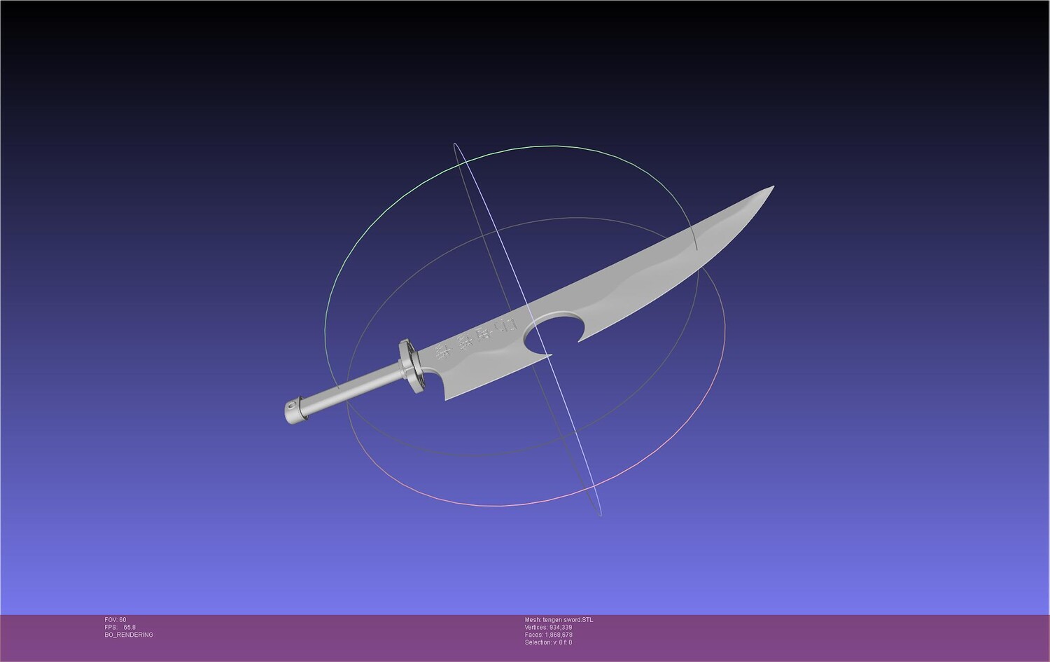 A basic 3d-model of one of the Tengens swords from the anime Demon Slayer