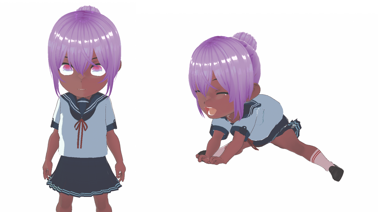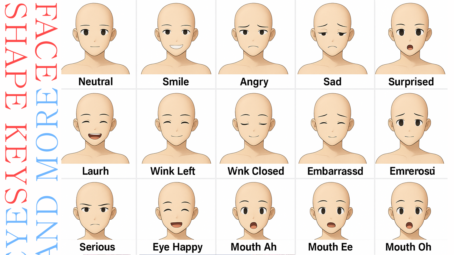 This character features 24+ shape keys for full facial expression control in Blender, Unity, and other compatible software.