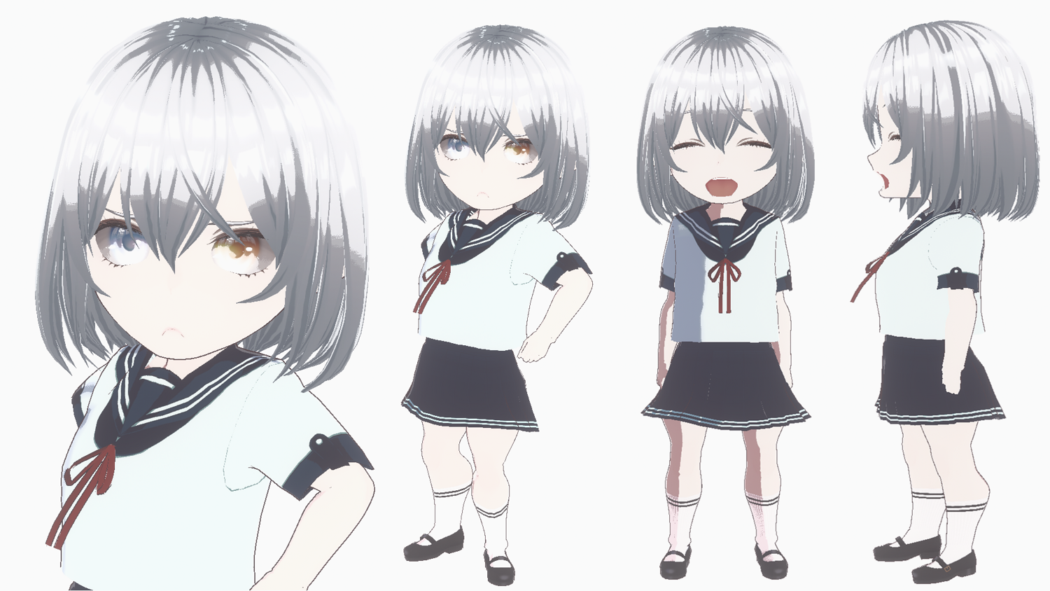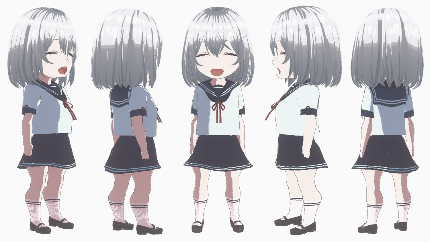 This character features 24+ shape keys for full facial expression control in Blender, Unity, and other compatible software.