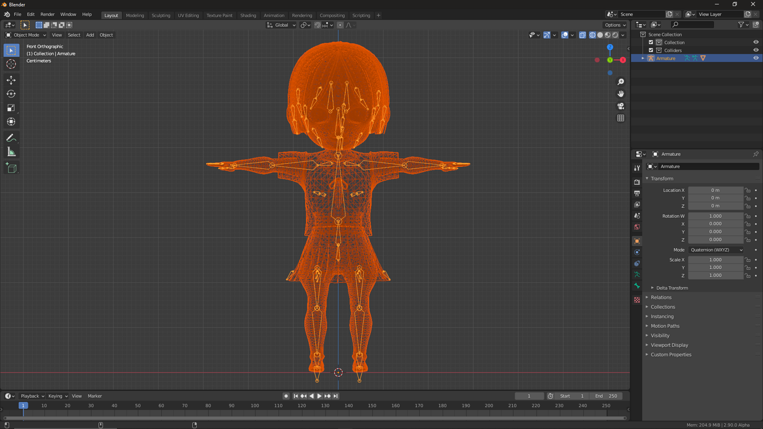 This is a fully rigged character model packed with facial expression sliders, designed for use in Blender and compatible with Unity.