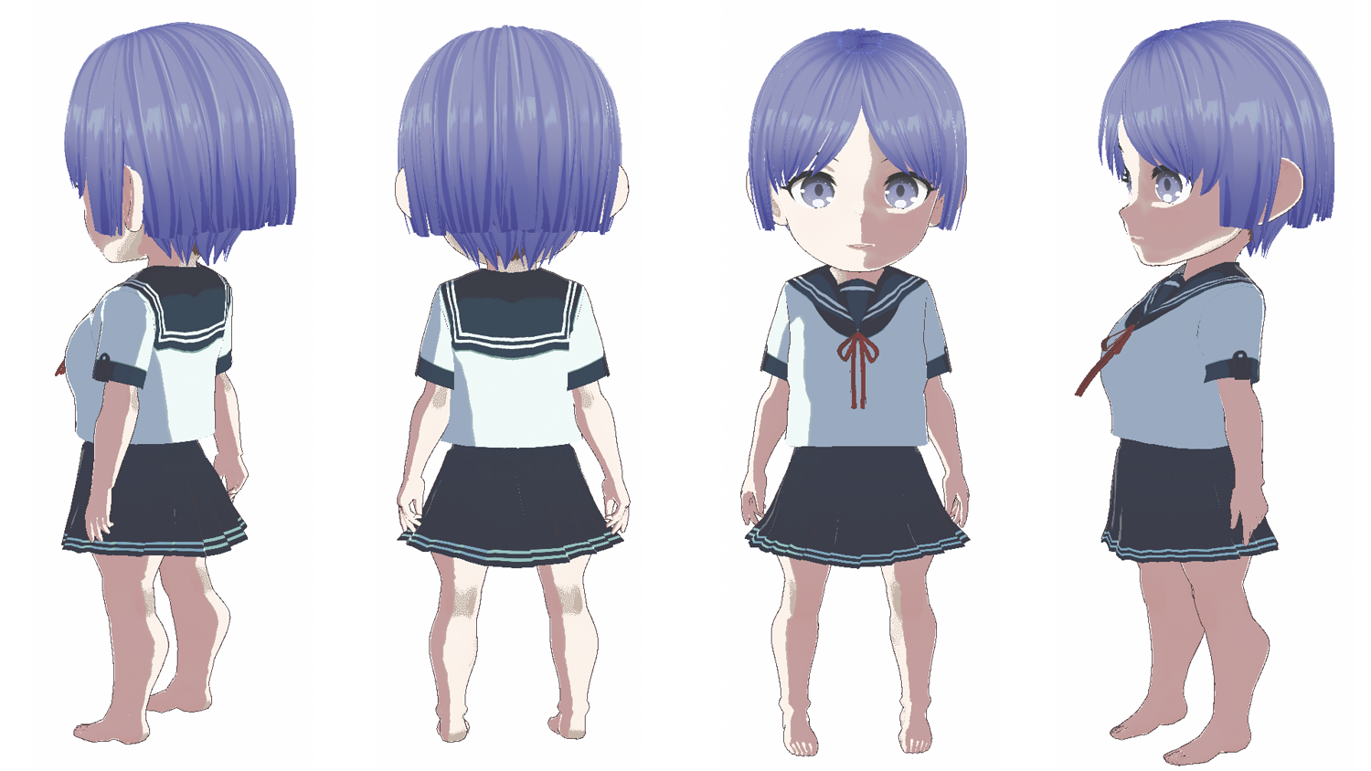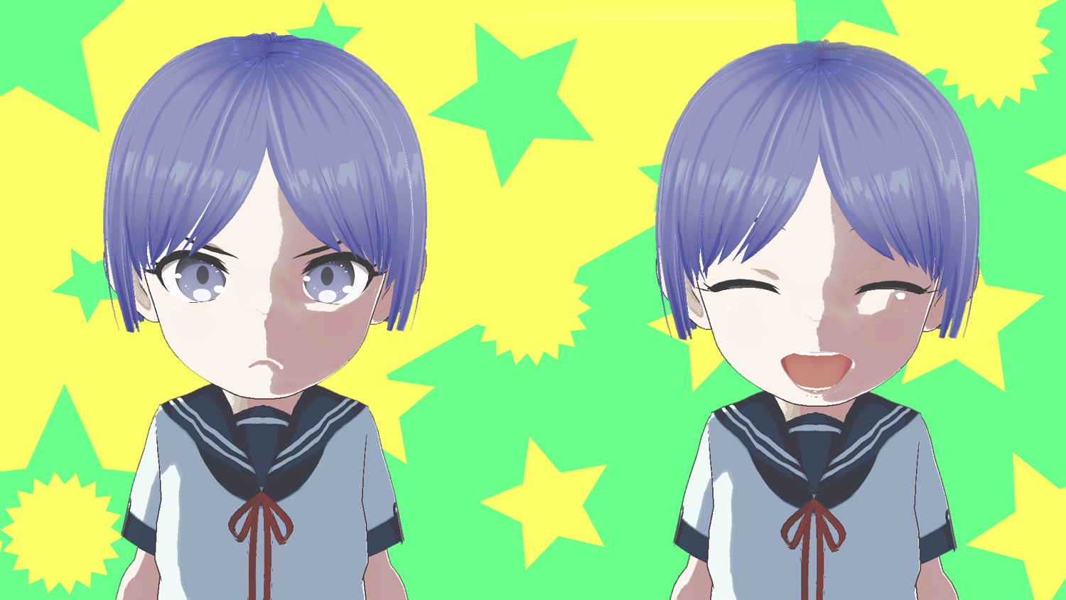 This character features 24+ shape keys for full facial expression control in Blender, Unity, and other compatible software.