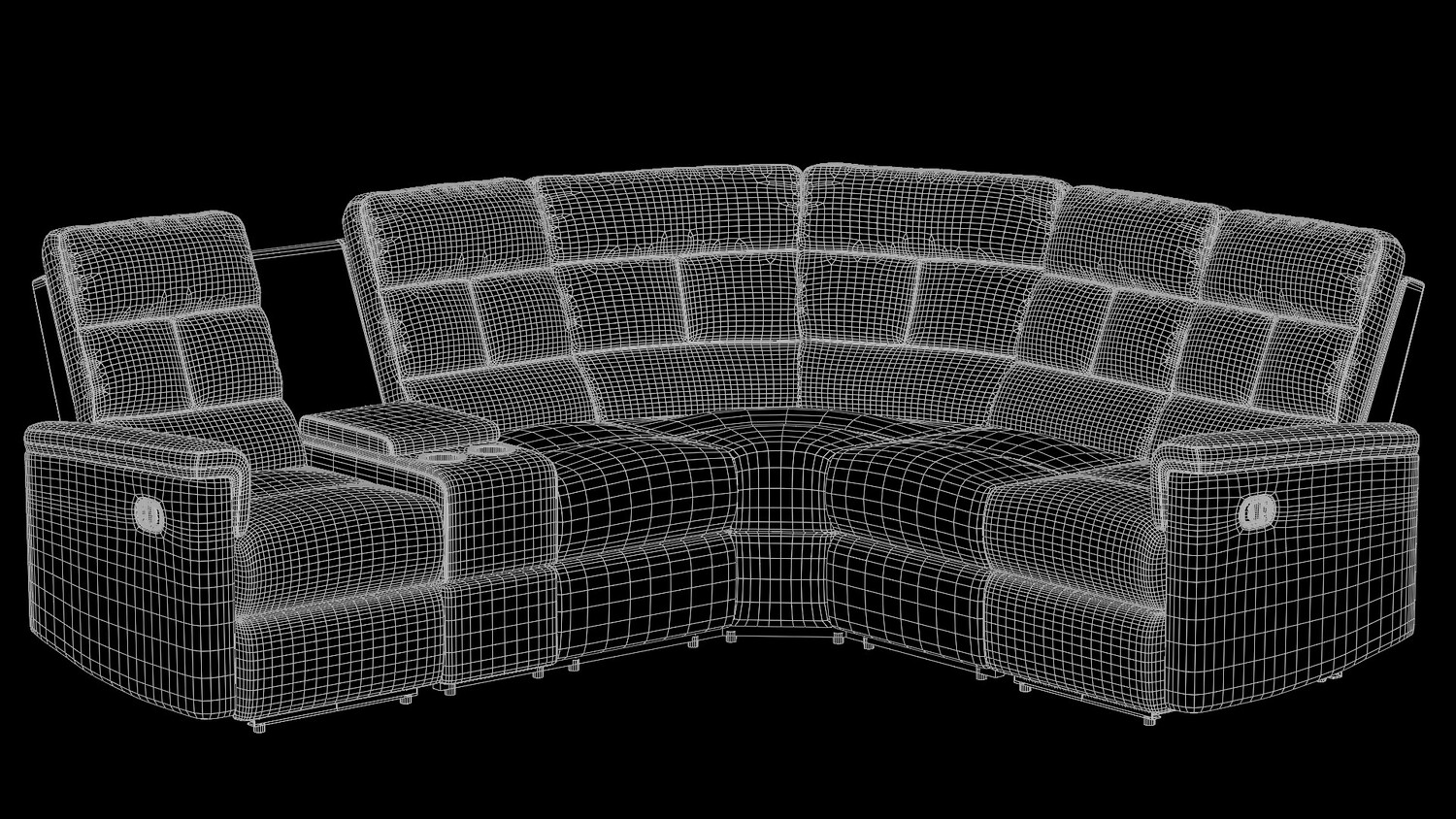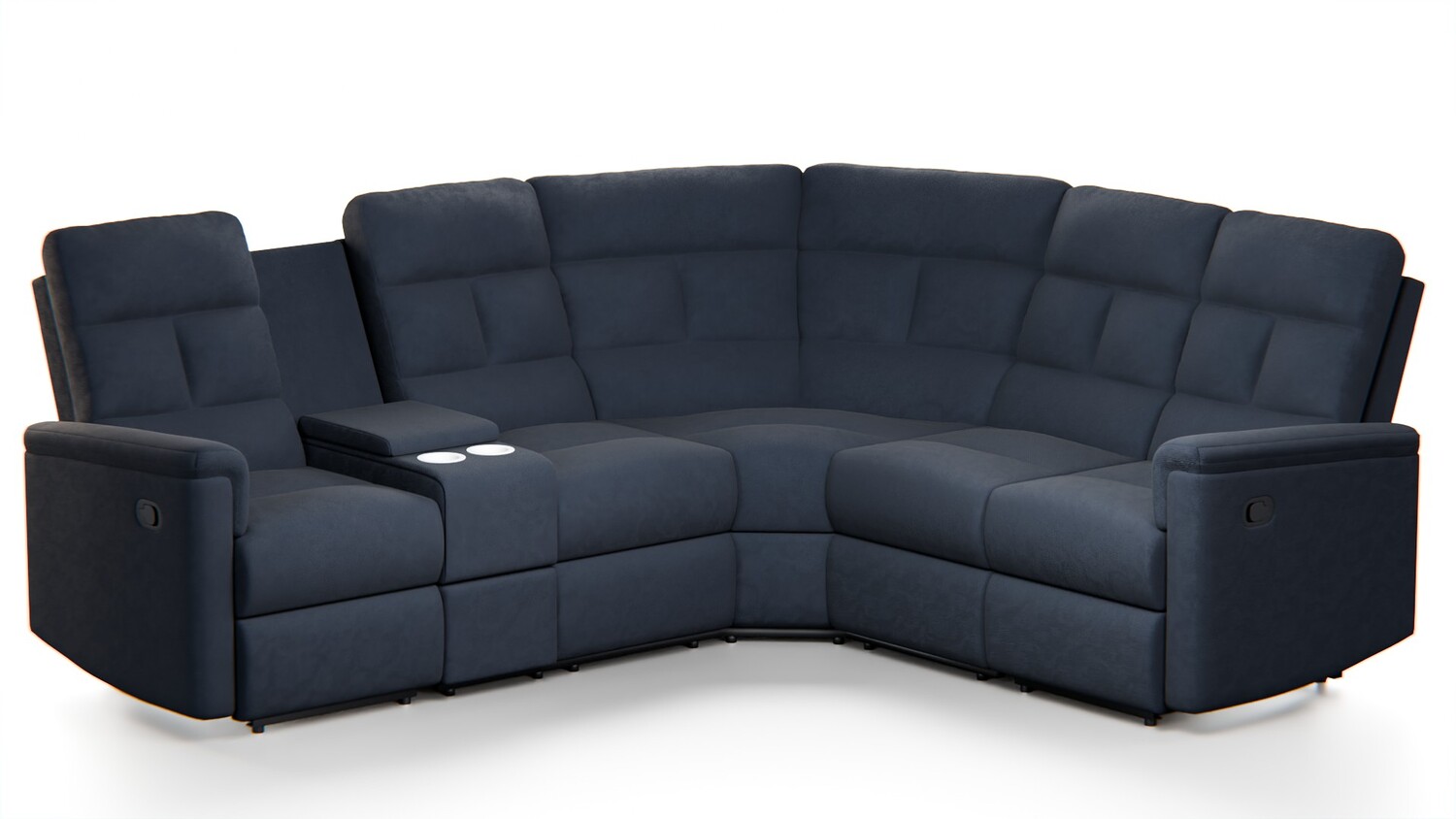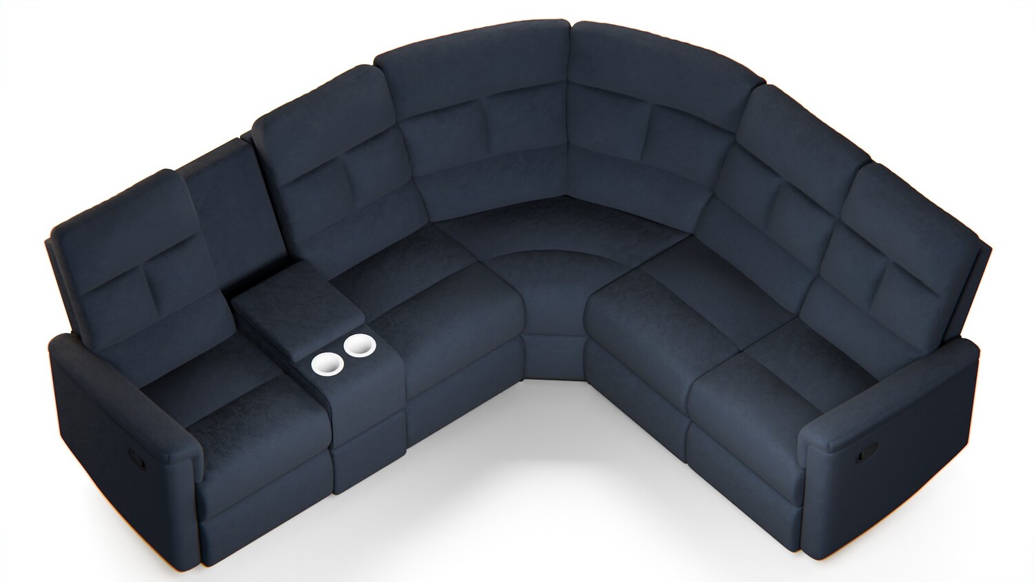 The model also includes a center console unit with padded arm support and dual cup holders, making it ideal for home-theater and luxury living room scenes.
