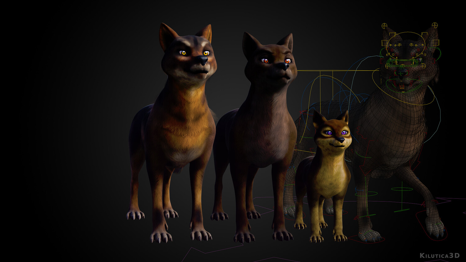 Wolf Pack Rigged Cartoon-Realistic 3D Model Pack for Blender
