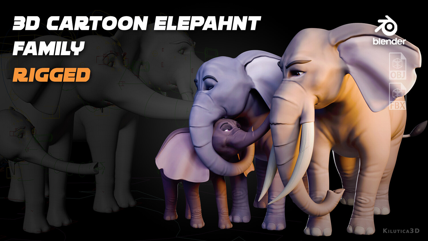 YT Showcase and Creation Process Timelapse: https://youtu.be/5-PWOfm7Pno Introducing the Cartoon Elephant Family Pack, a charming trio of stylized, fully rigged elephants—Male, Female, and Cub—perfect for animations, games, educational projects, and storytelling.Built with clean quad-based topology, all three models feature efficiently mirrored UVs, high-quality textures, corrective weight painting, and custom Rigify rigs for smooth, expressive animation.