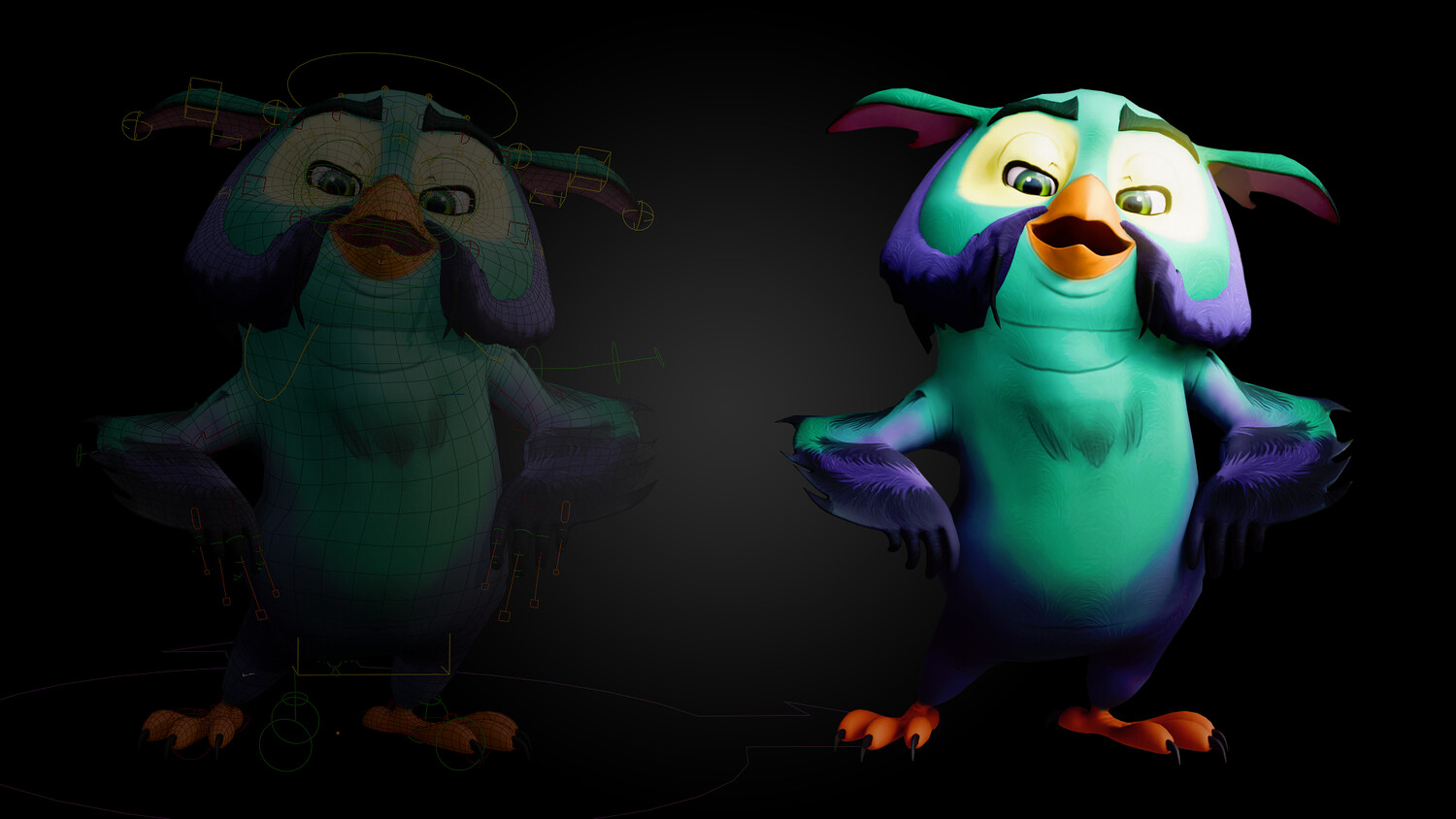 ChibiOwl3DModelCartoonBirdStylizedAnimalLow-polyRiggedAnimationReadyBlenderCompatiblePBRTexturesQuad-basedTopologyGameAssetCyclesRenderCreativeProjectsPlumpGreenGradientTexturedClose-upRendersUniqueCharacterHeavynce