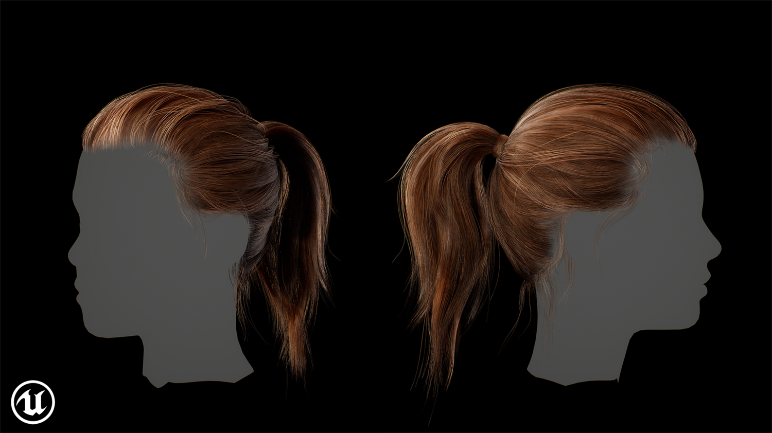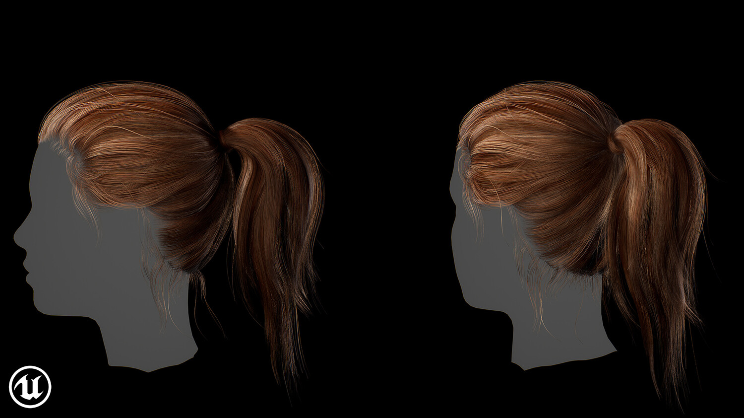 Game ready female ponytail hairstyle real time hair Low-poly 3D model