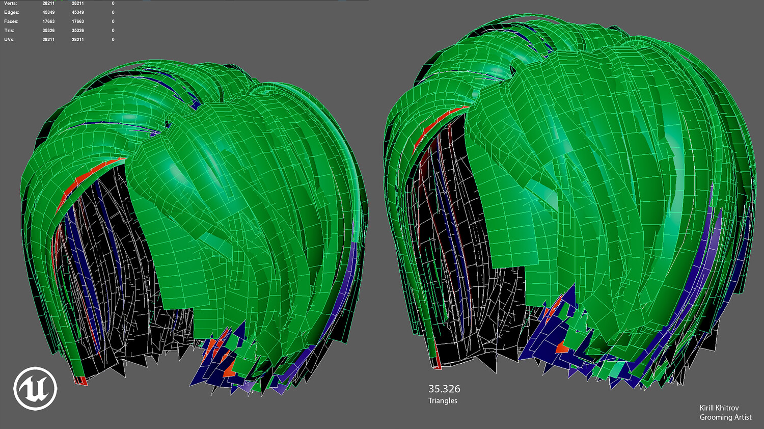 Used software Maya. XGen (hair strands). Arnold (Hair Baking)