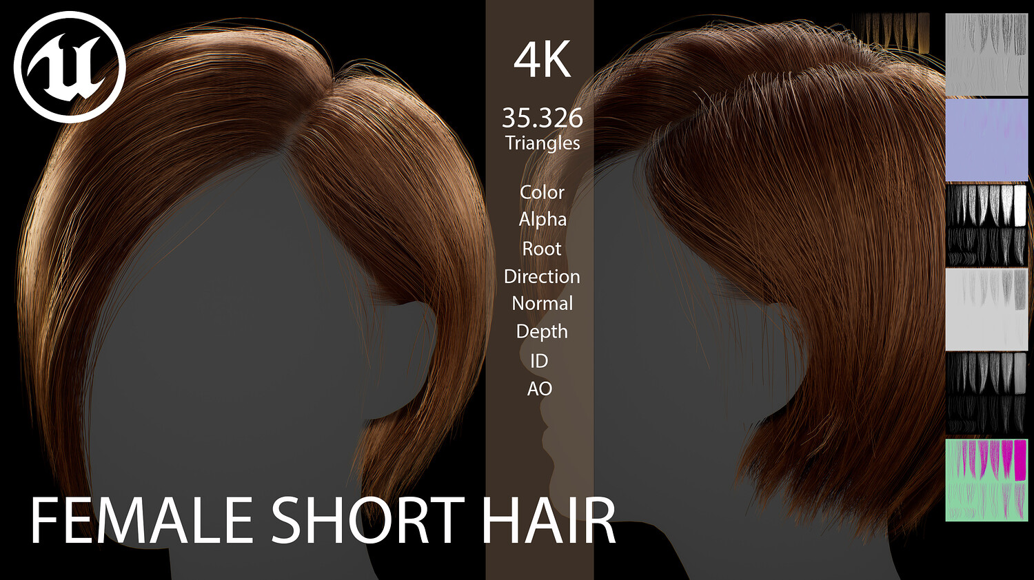 The pack includes: - Hair - .fbx - Hair - .obj - Hair - .ma - Textures: 4k, TGA (8 diffuse maps), PNG (8 maps) - UE 5.2 Scene No eyebrows and eyelashes. No head maneken