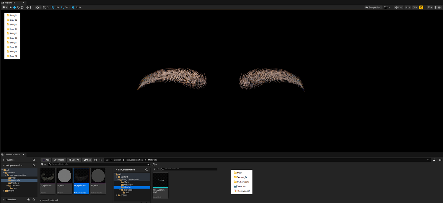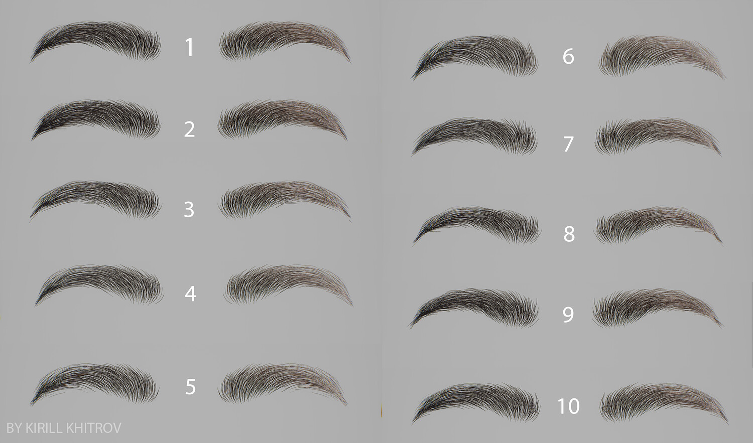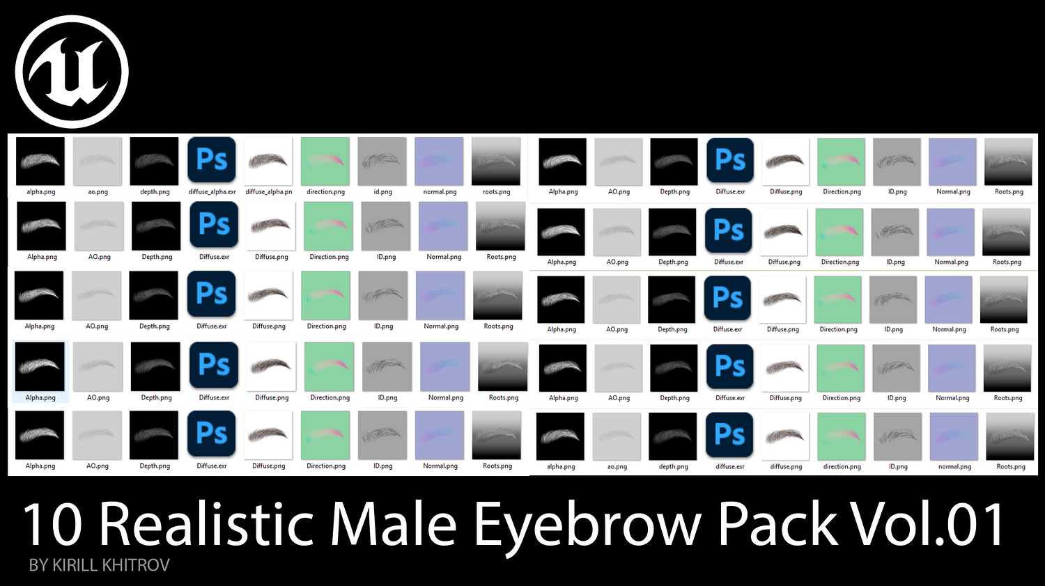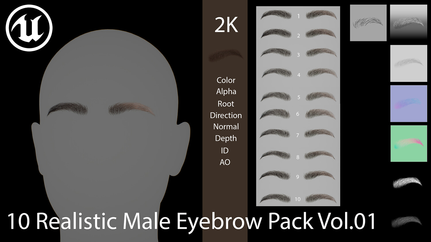 10 Realistic Male Eyebrow Pack Vol.01 is a set of 10 realistic male eyebrow assets created for real-time characters and production-ready character workflows. This pack is designed to provide a variety of natural eyebrow shapes suitable for game characters, digital humans, character customization, and presentation renders.