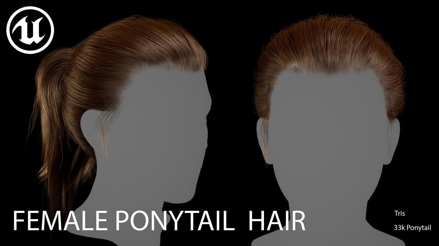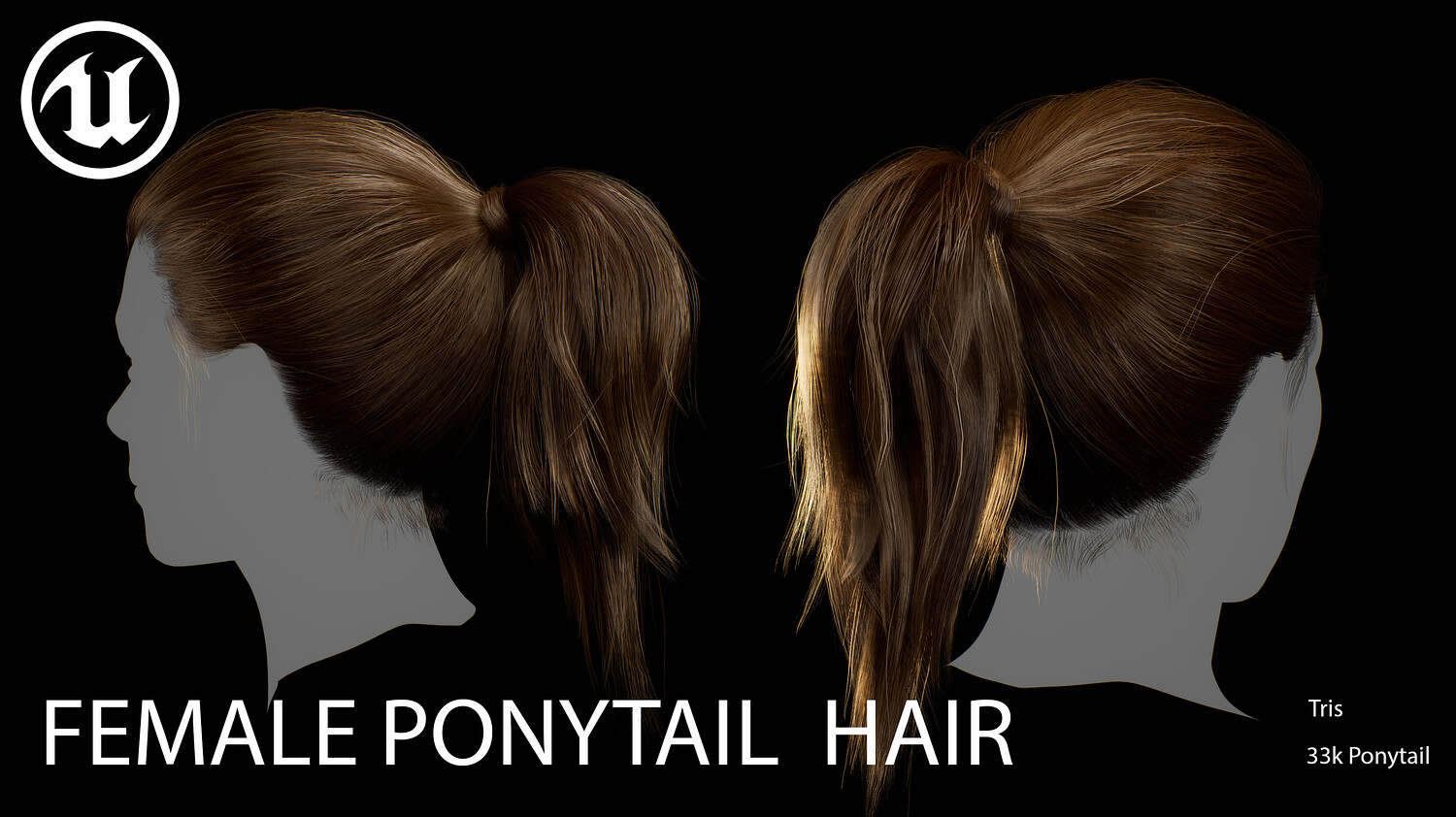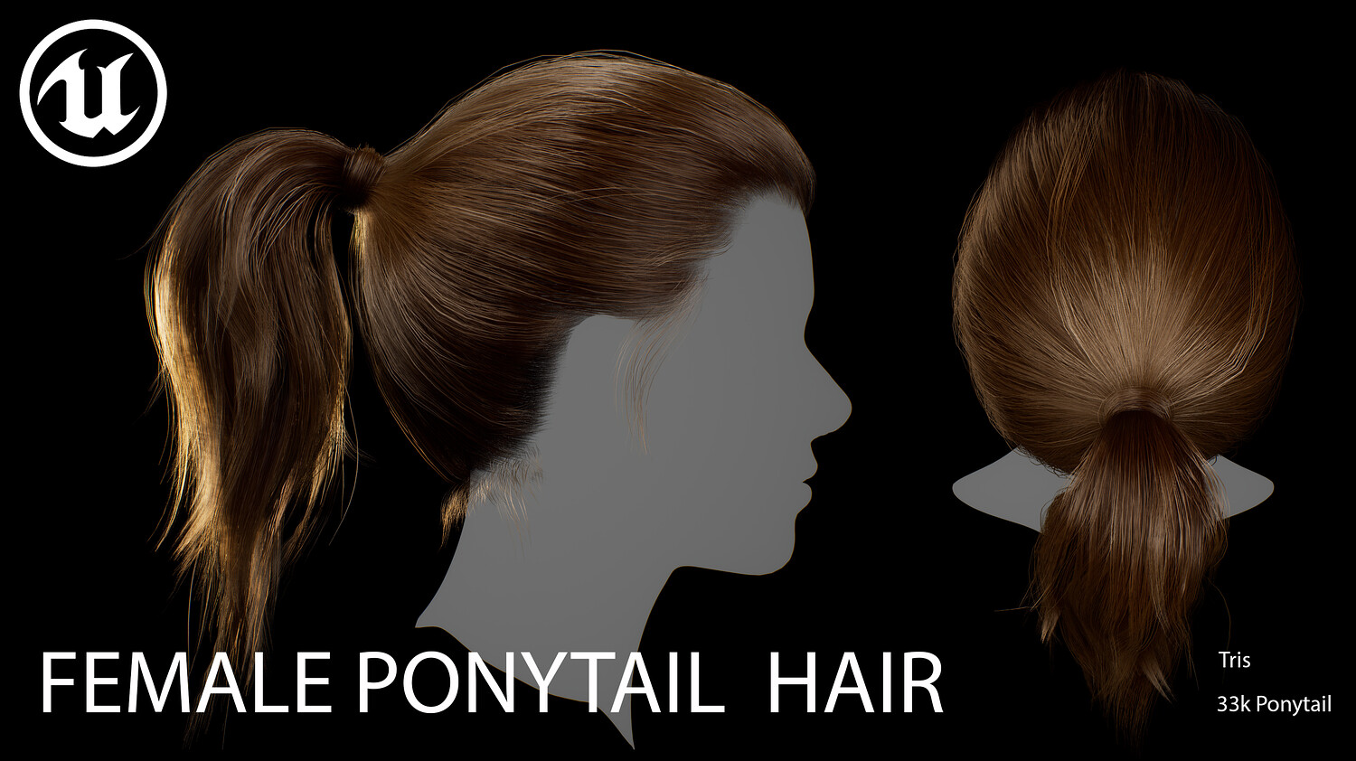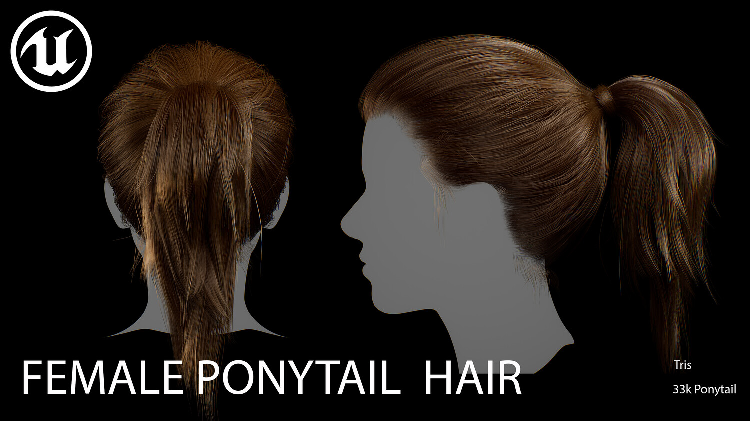 This elegant real-time female ponytail hairstyle is designed for use in games, cinematics, and real-time applications. Created with XGen (haircards baked using xGen and Arnold) and optimized for Unreal Engine 4-5, this asset delivers both performance and high visual quality.