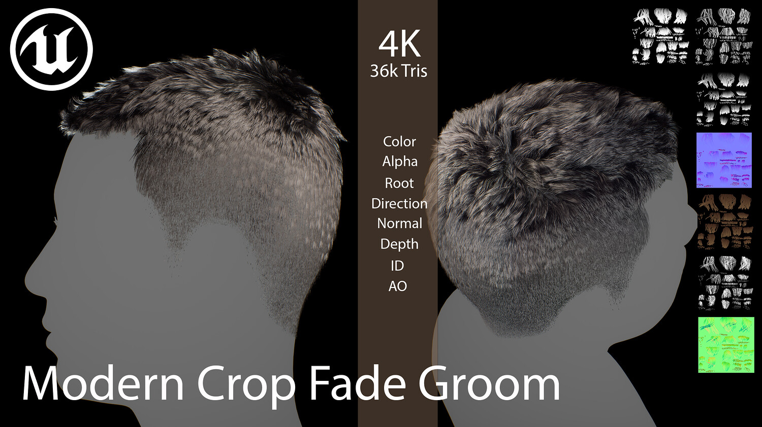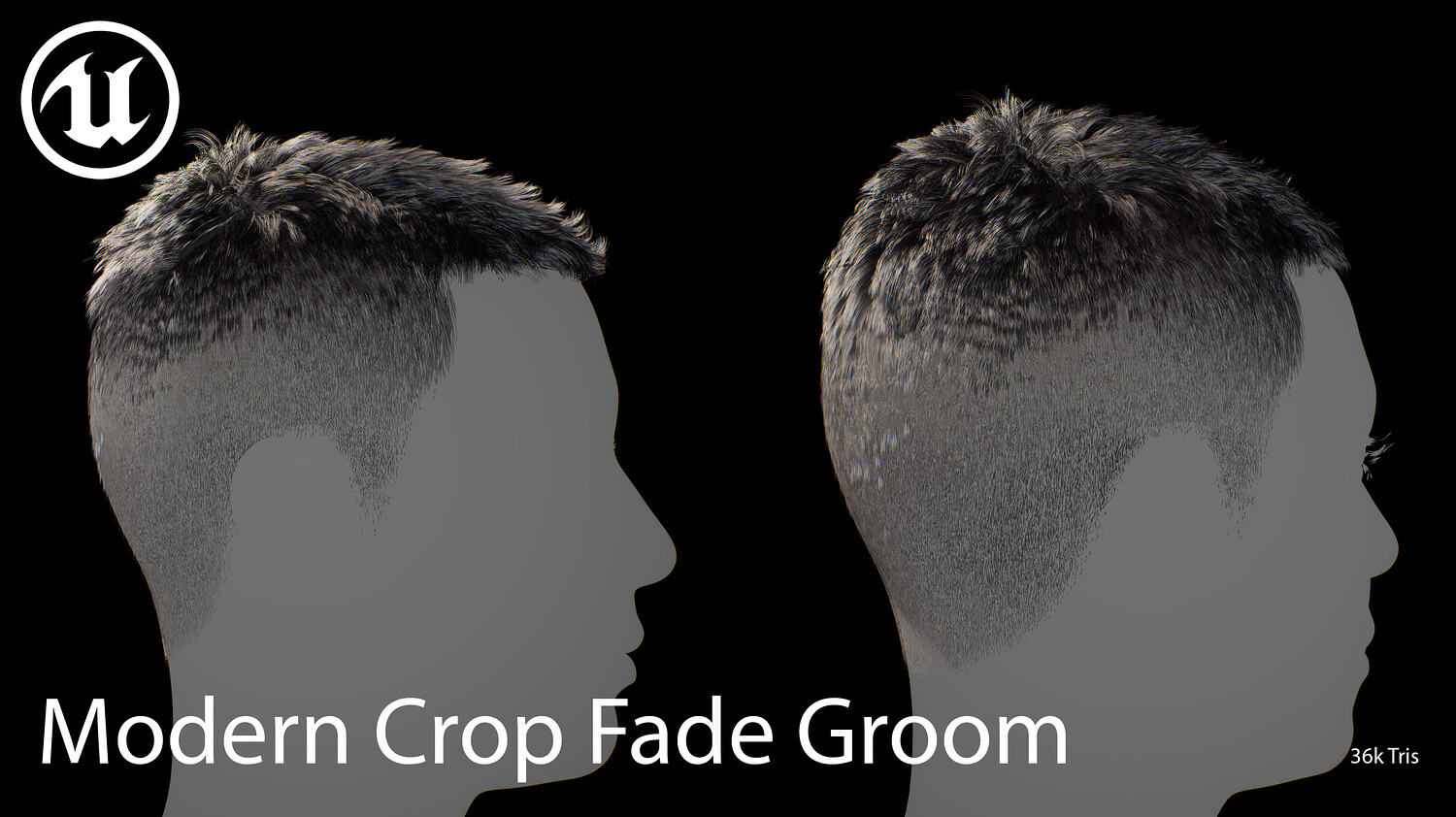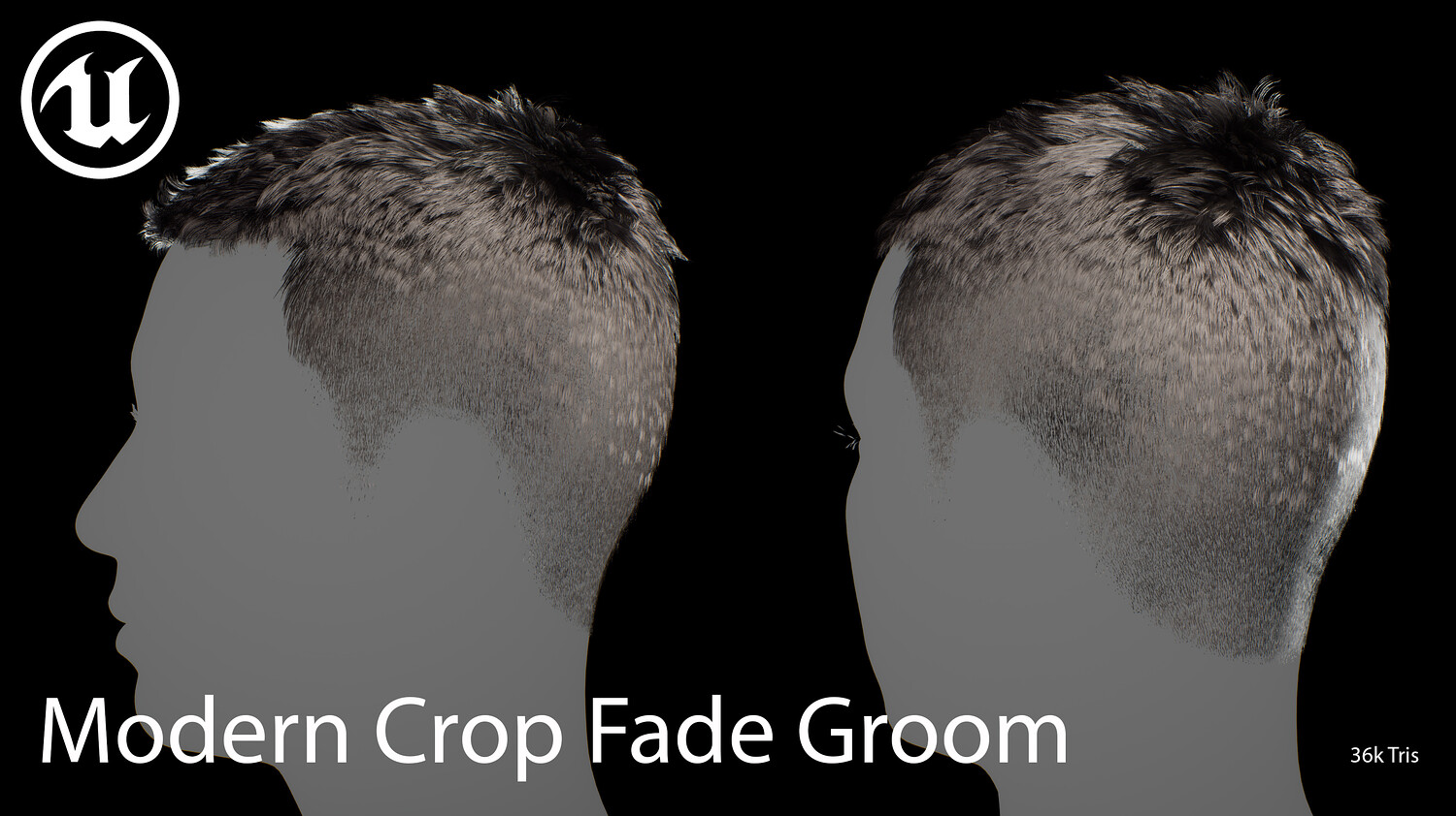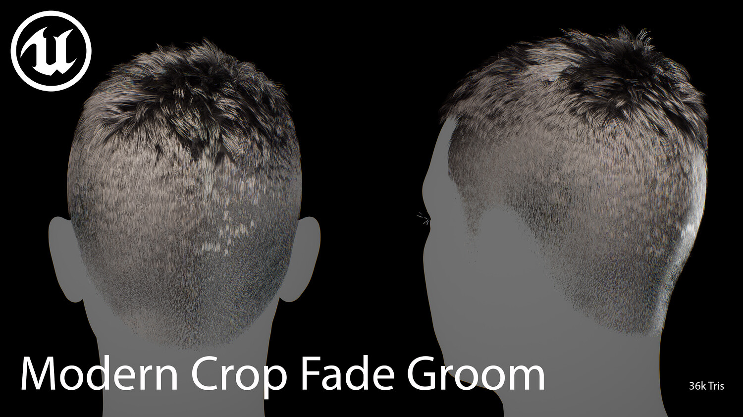 Modern Crop Fade Groom Realtime Hair is designed for use in games, cinematics, and real-time applications. Hair textures created with Fibershop and optimized for Unreal Engine 4-5, this asset delivers both performance and high visual quality.
