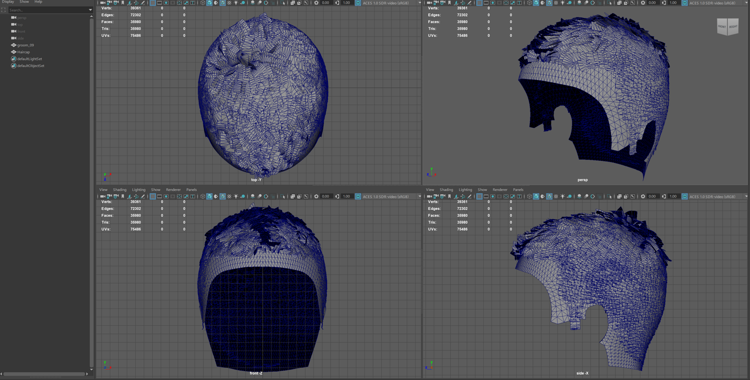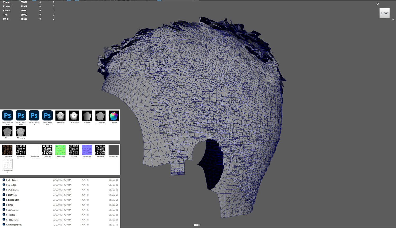 Polycount: 30 404 triangles hair and 5 576 tris haircap