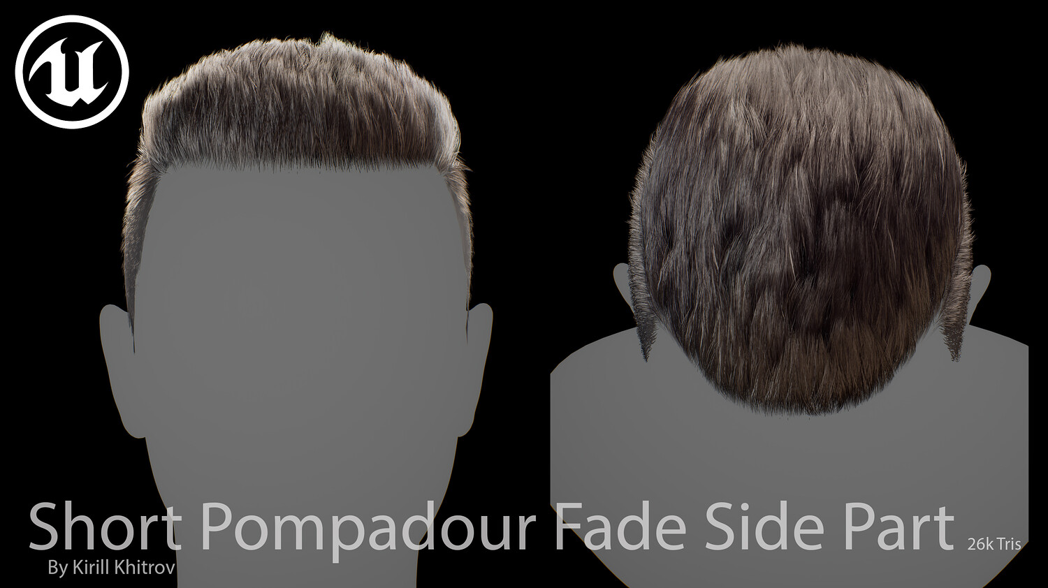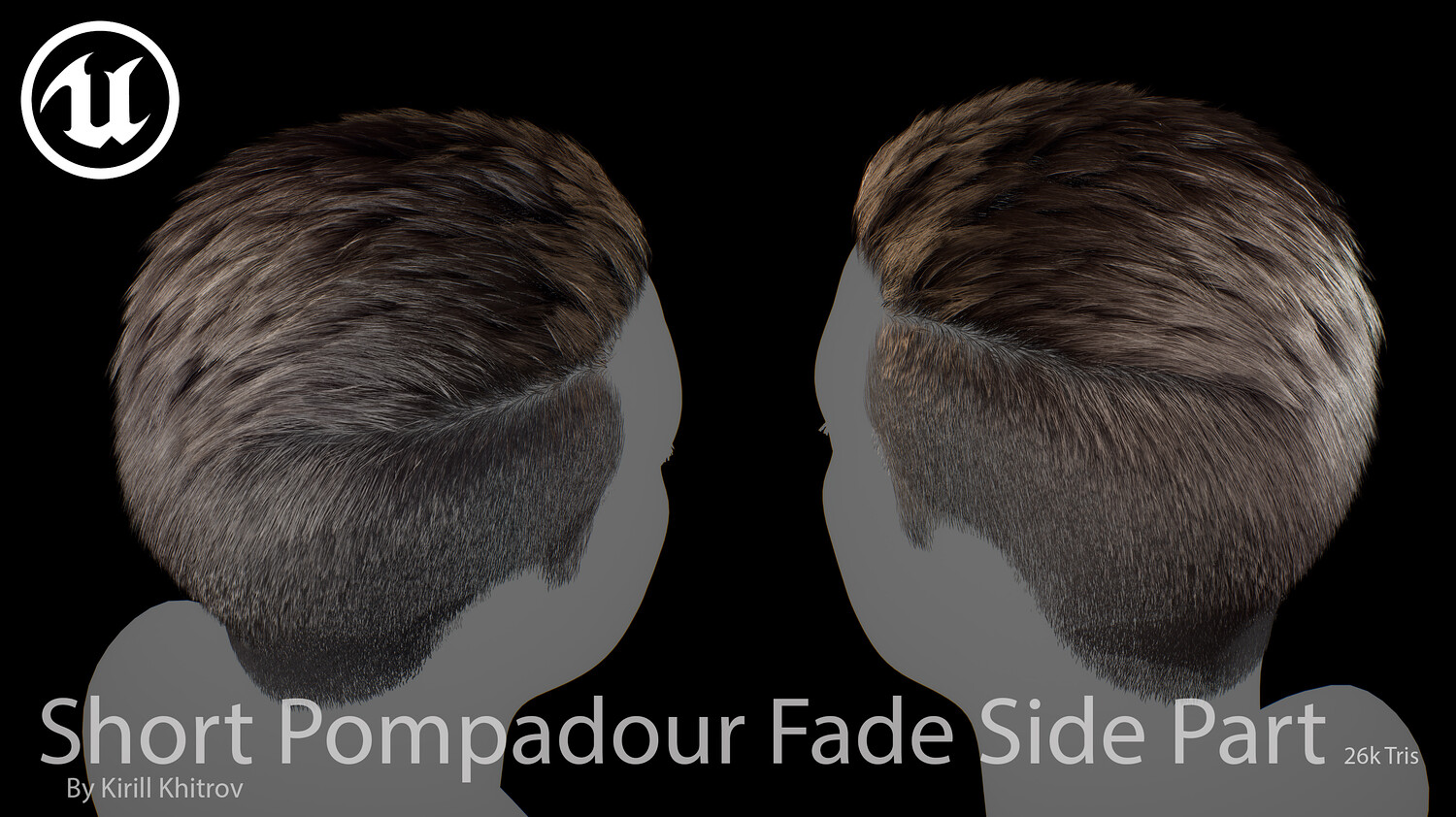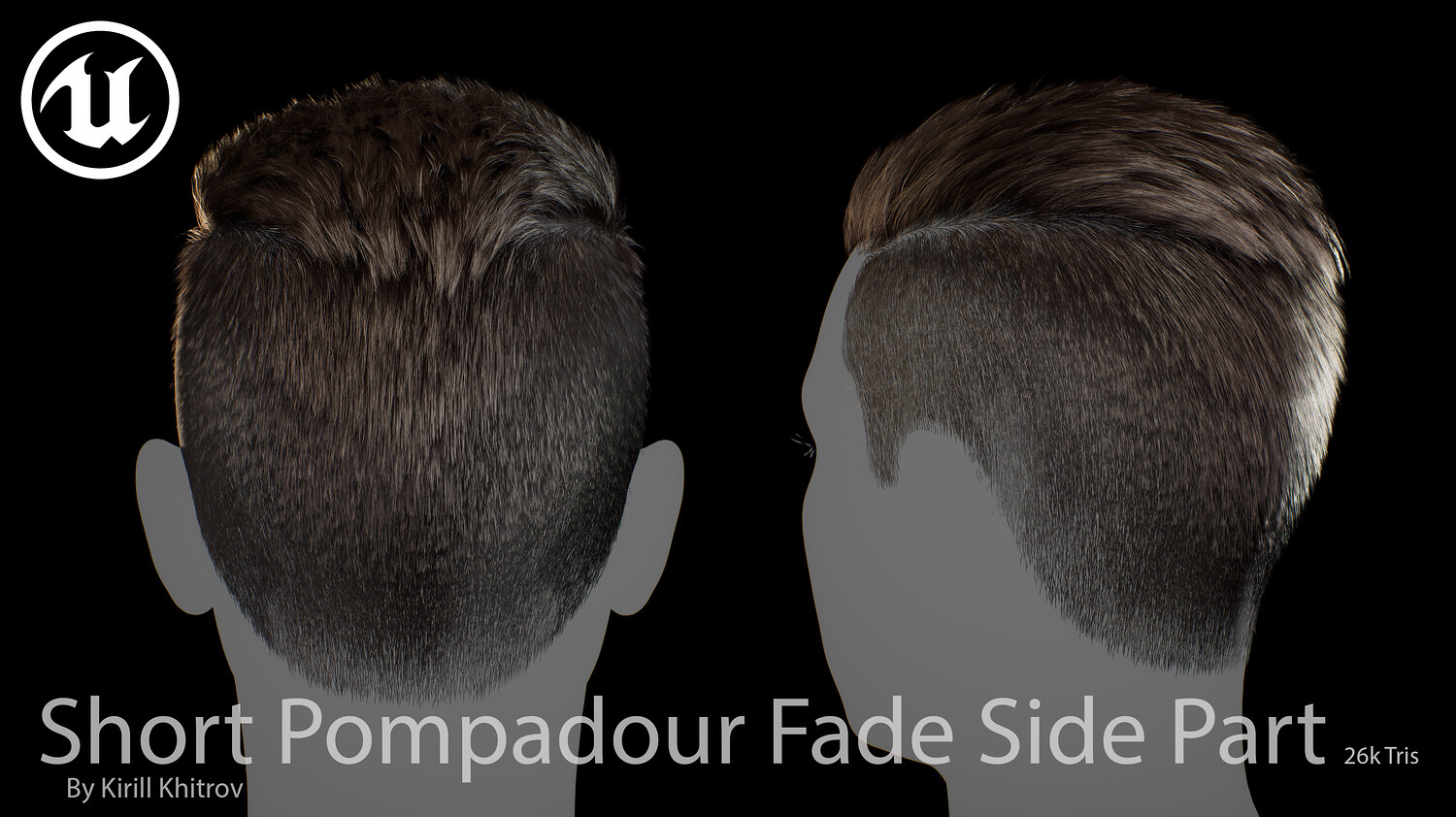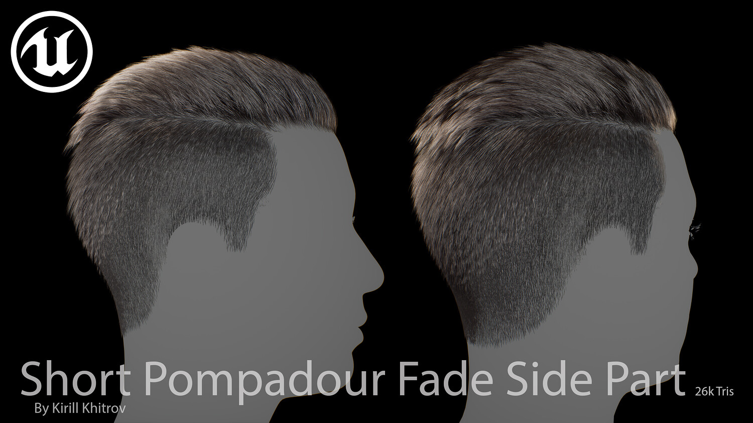 Short Pompadour Fade Side Part - Game-Ready Real-Time Hair is designed for use in games, cinematics, and real-time applications. Hair textures created with Fibershop and optimized for Unreal Engine 4-5, this asset delivers both performance and high visual quality.