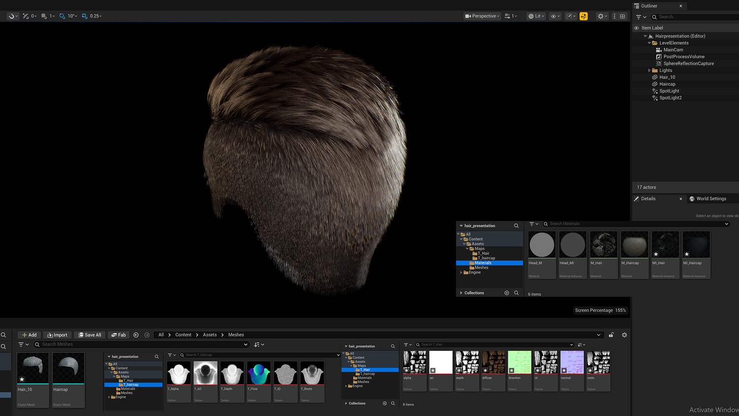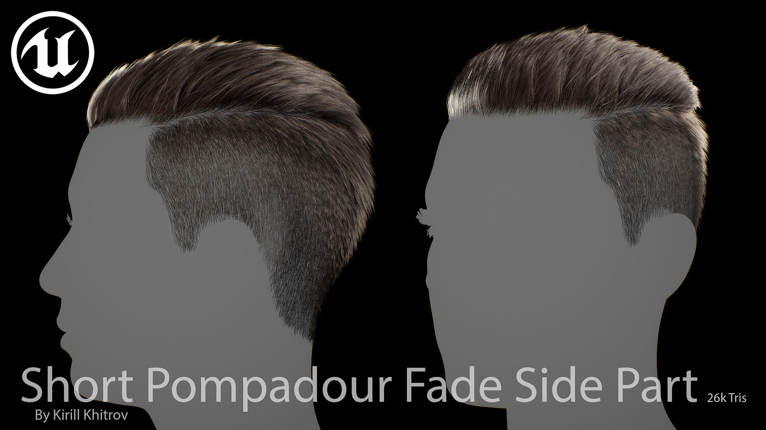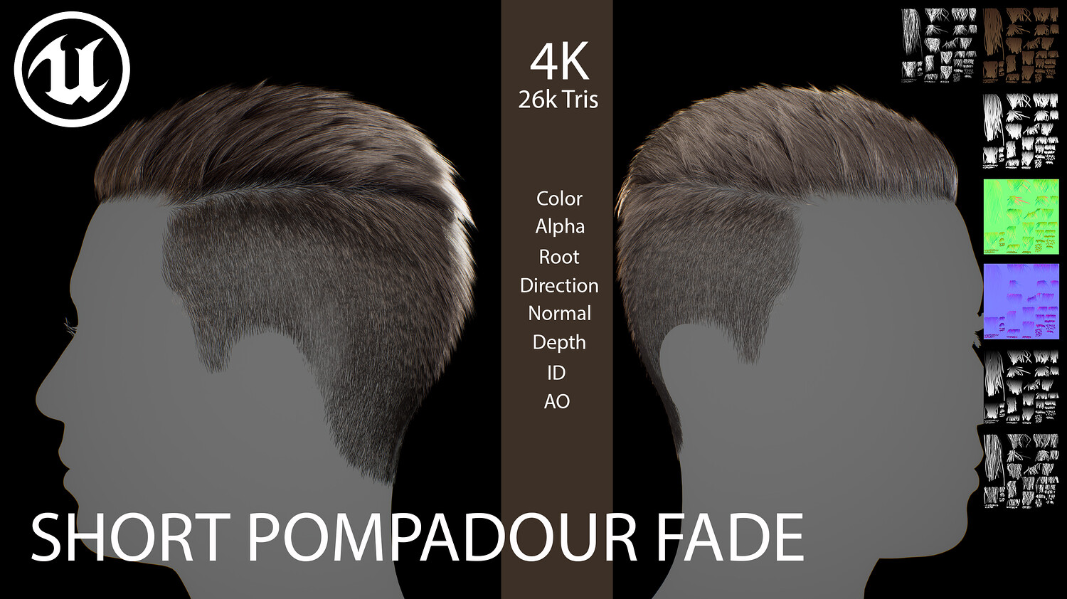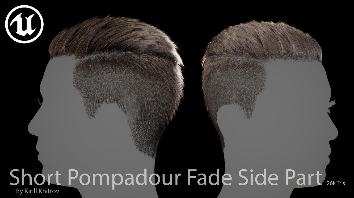 Short Pompadour Fade Side Part - Game-Ready Real-Time Hair is designed for use in games, cinematics, and real-time applications. Hair textures created with Fibershop and optimized for Unreal Engine 4-5, this asset delivers both performance and high visual quality.