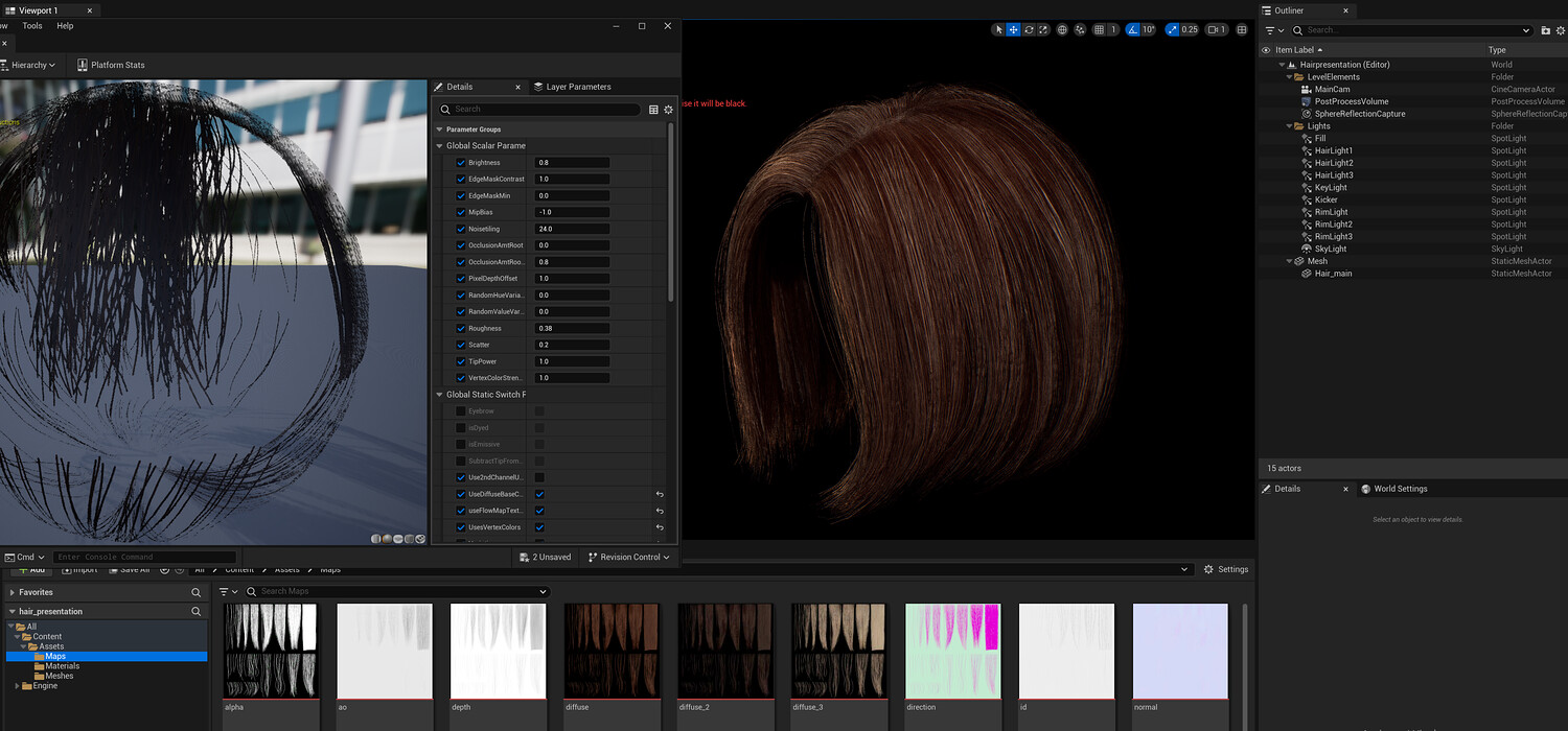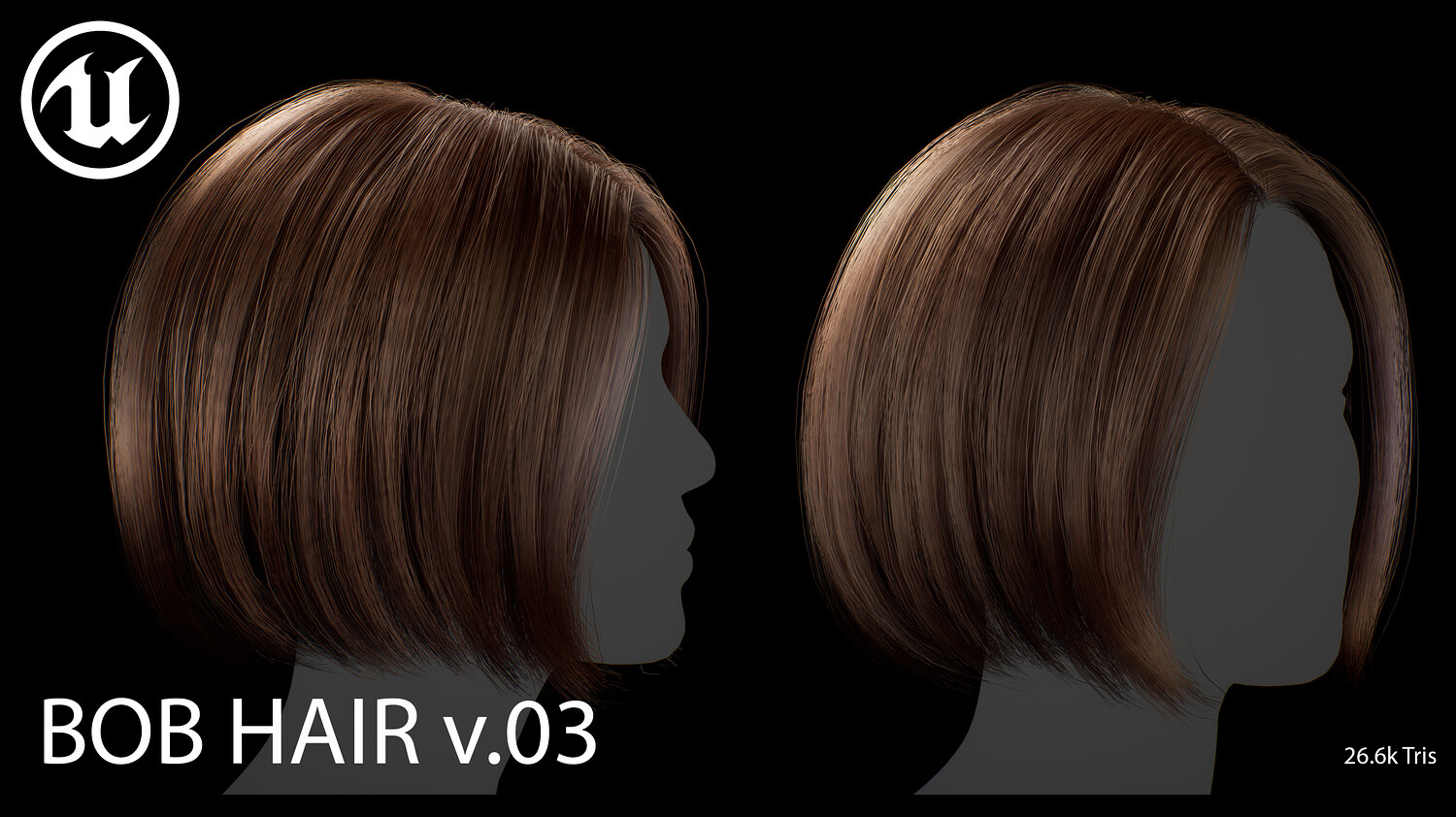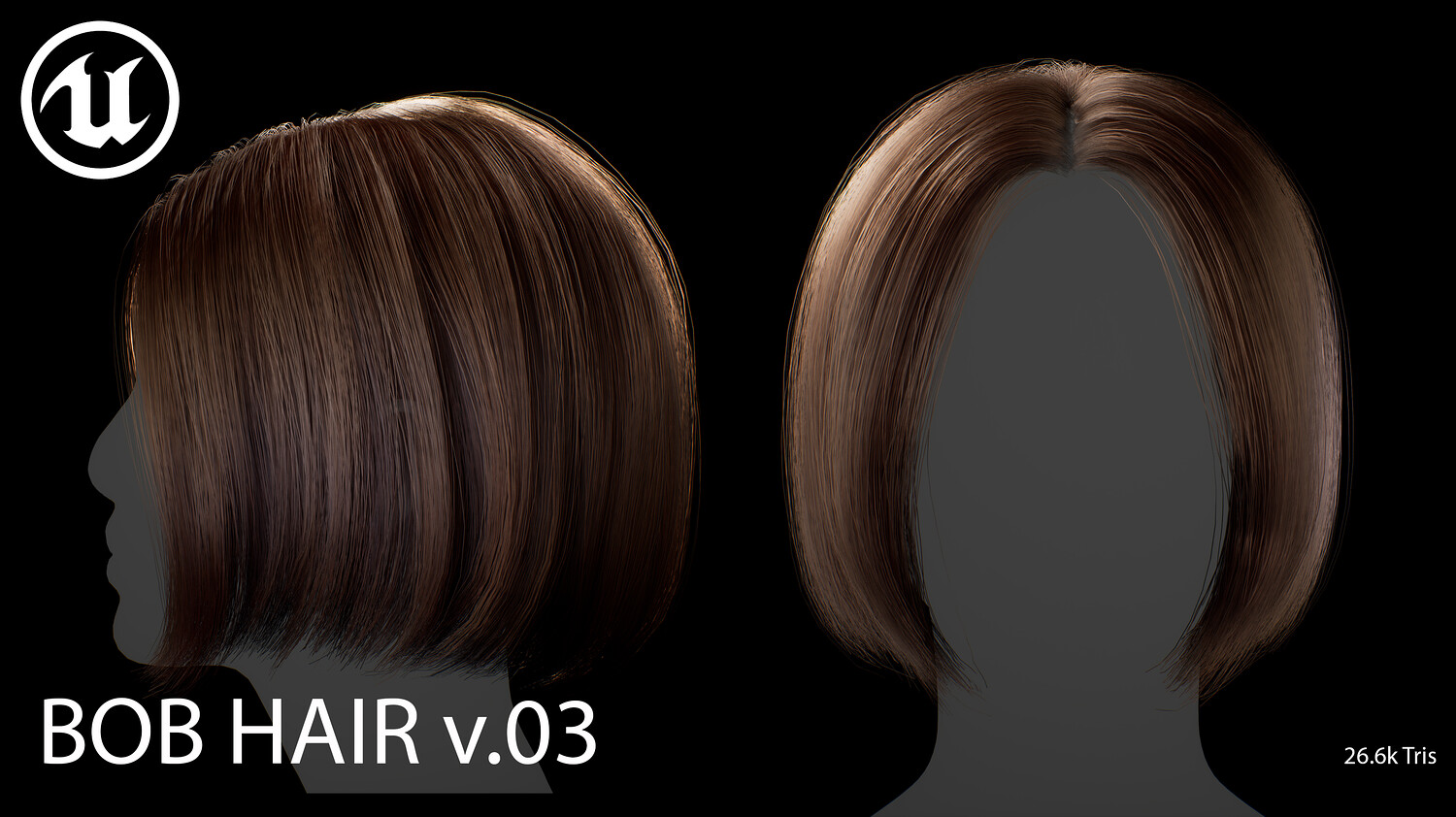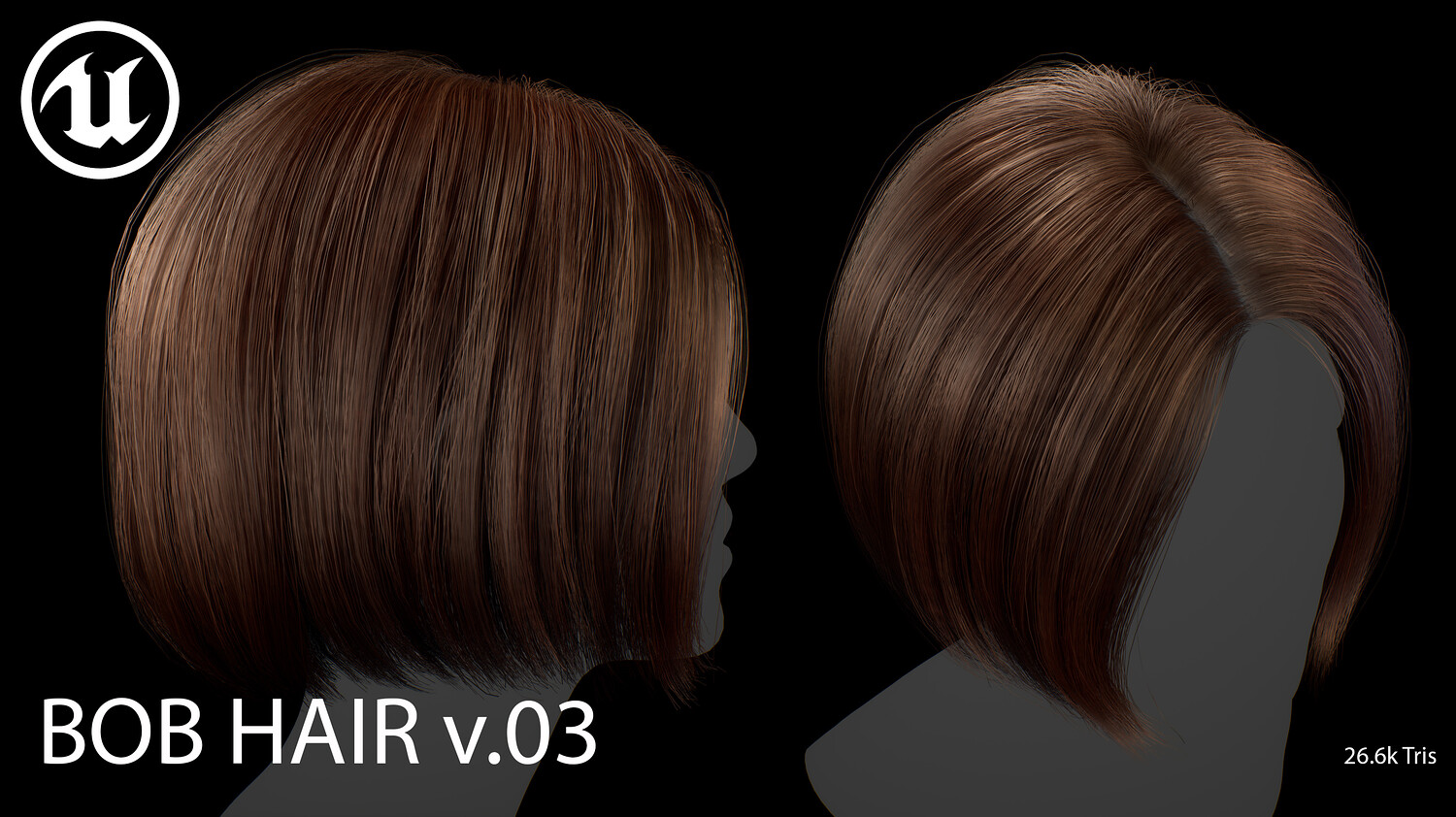 This elegant real-time female Bob v03 hairstyle is designed for use in games, cinematics, and real-time applications. Hair textures created with XGen (textures were made and baked using xGen and Arnold) and optimized for Unreal Engine 4-5, this asset delivers both performance and high visual quality.