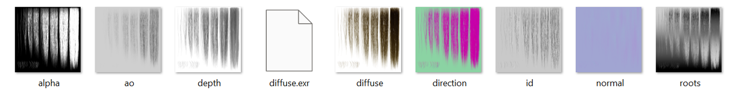 Hair albedo blond AO Normal ID Depth Directional Roots Alpha