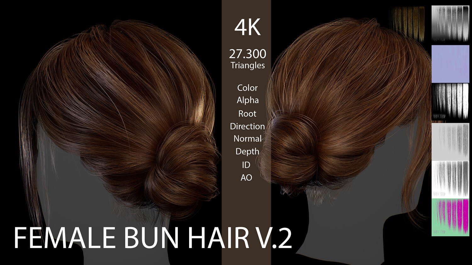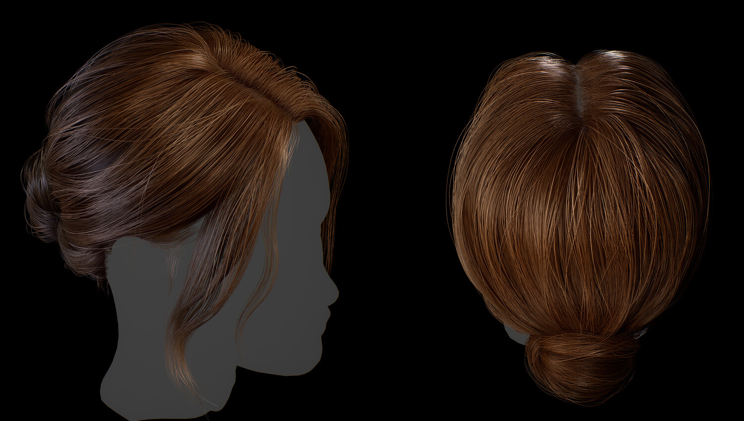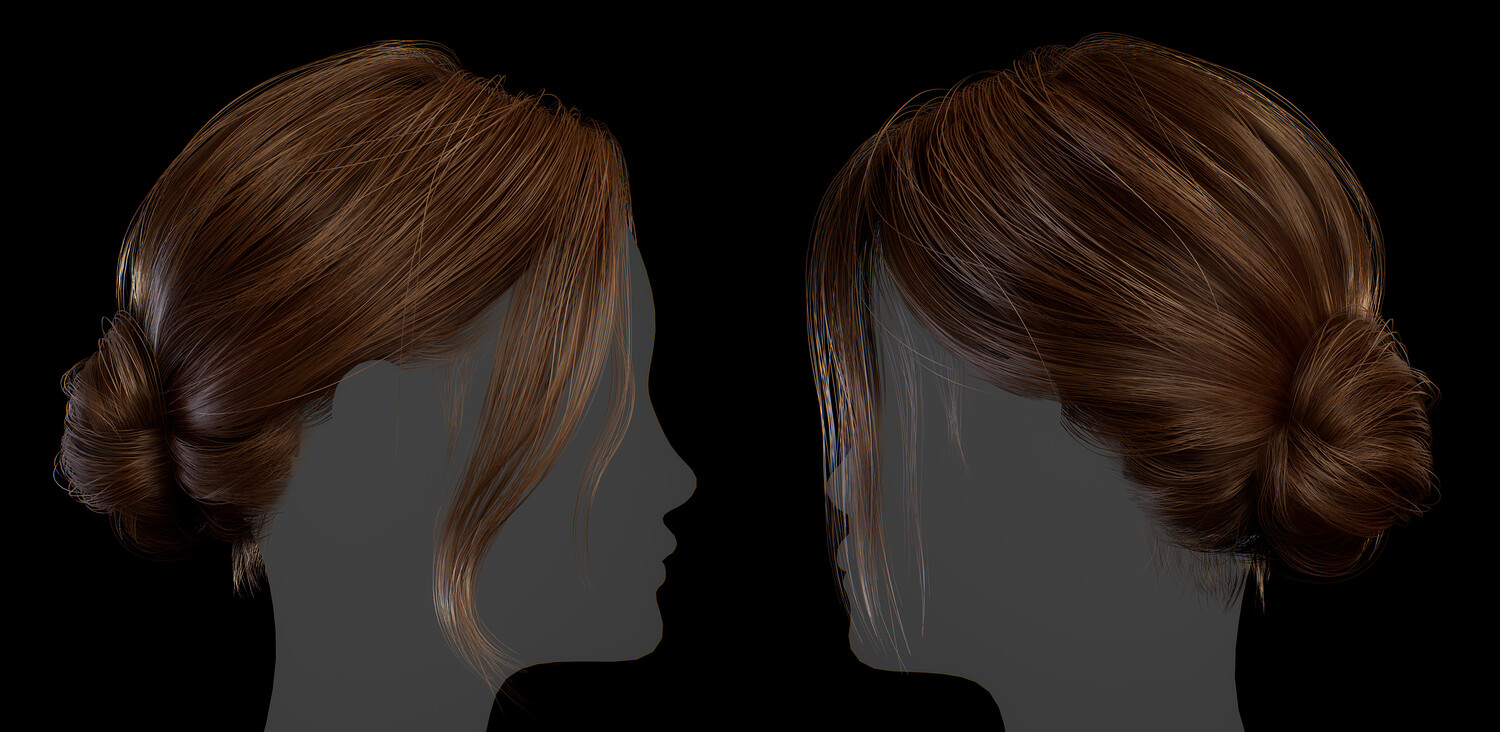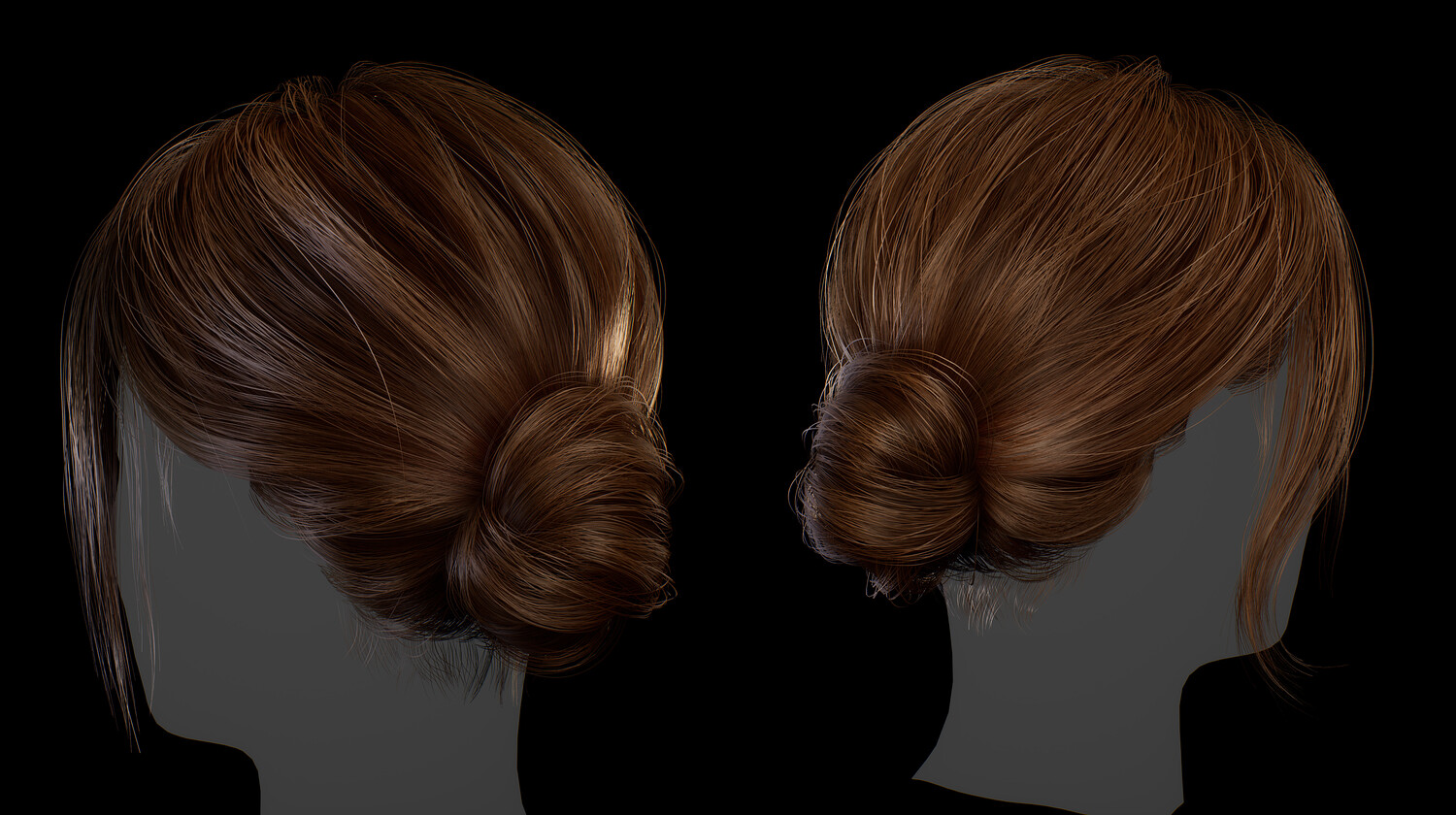 Real-time female bun hairstyle using Maya Textures created by XGen and rendered in Arnlold :