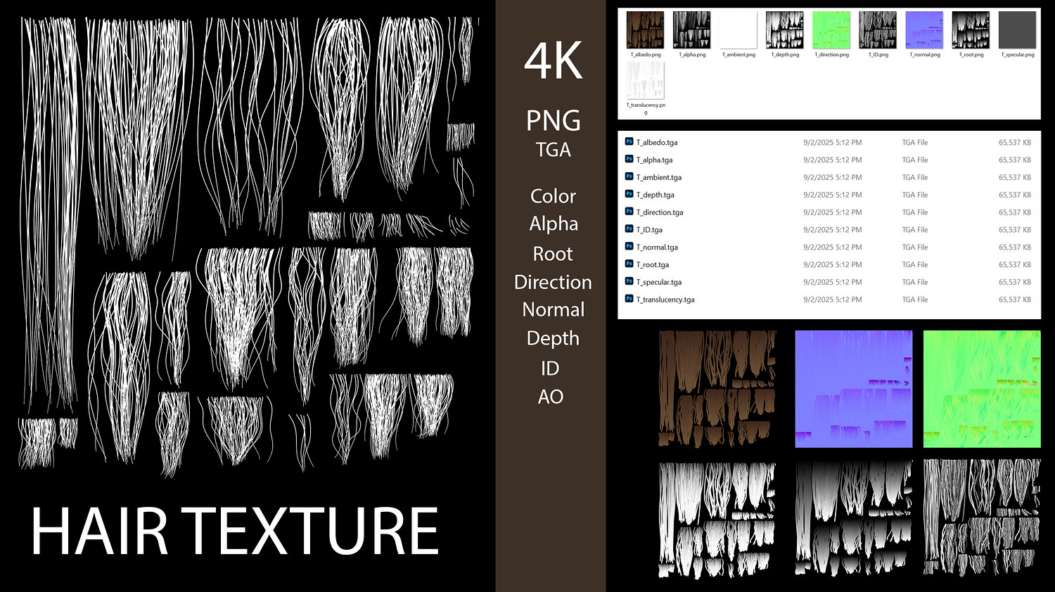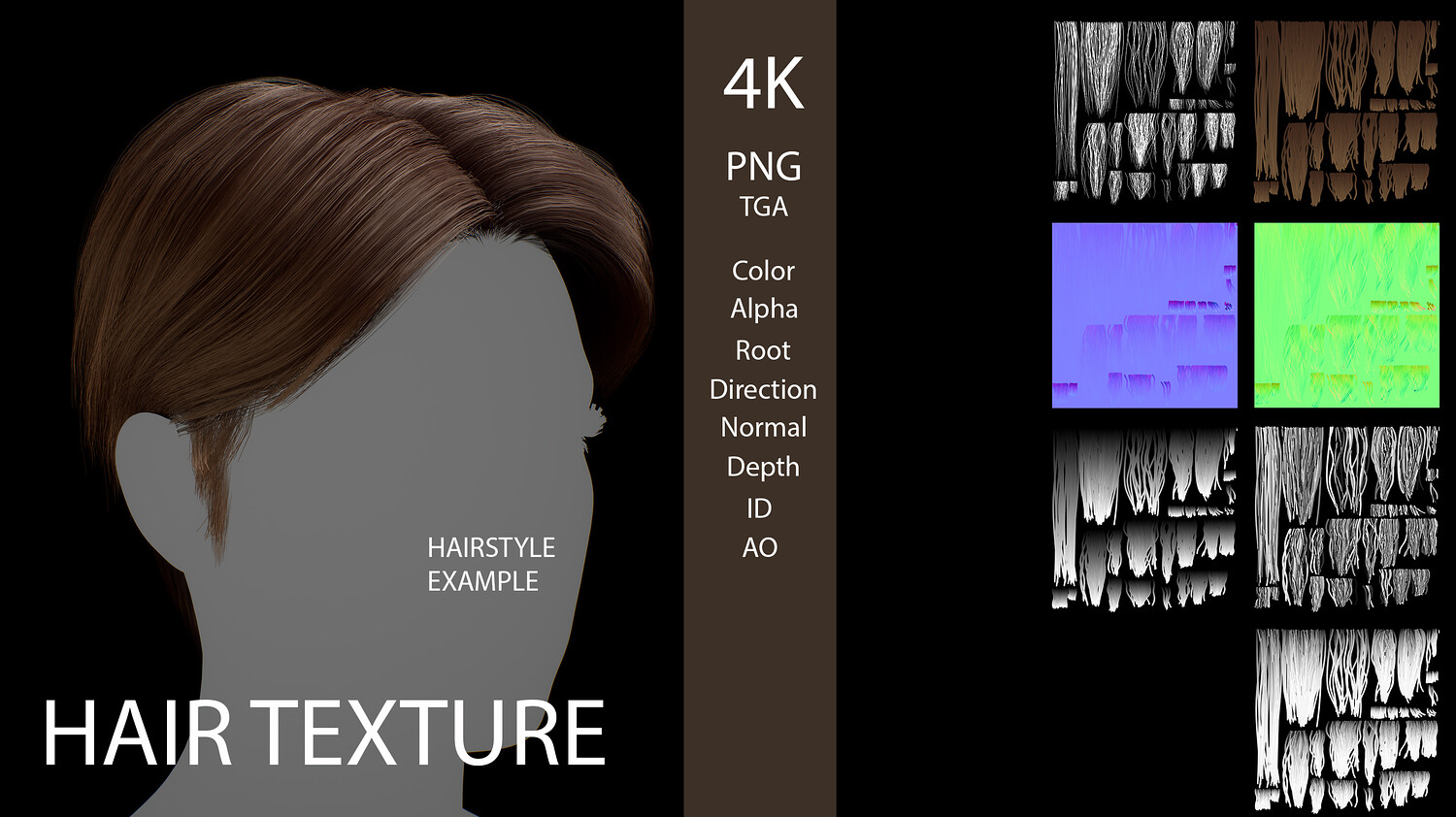 4K Hair Card Texture Set - Medium and Short Hairstyles for games