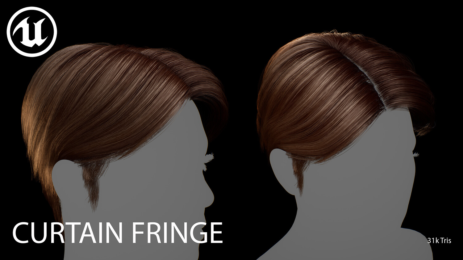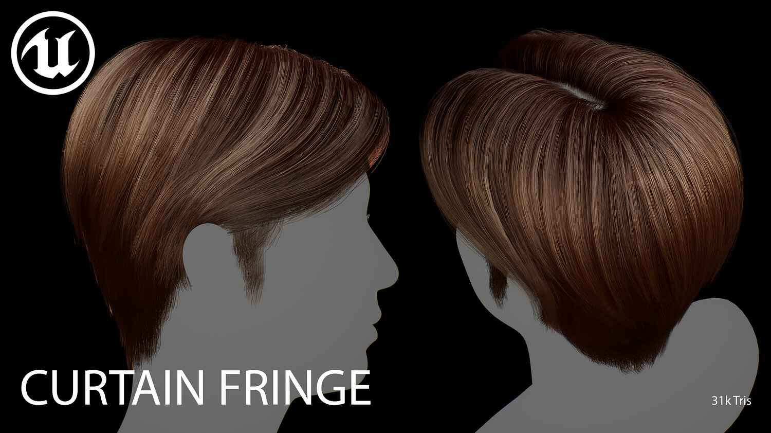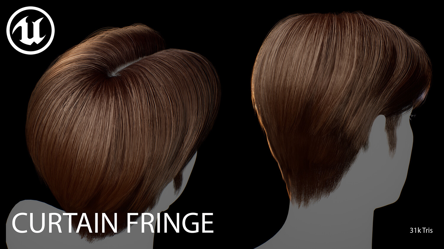This real-time Curtain Fringe hairstyle is designed for use in games, cinematics, and real-time applications. Hair textures created with Fibershop and optimized for Unreal Engine 4-5, this asset delivers both performance and high visual quality.