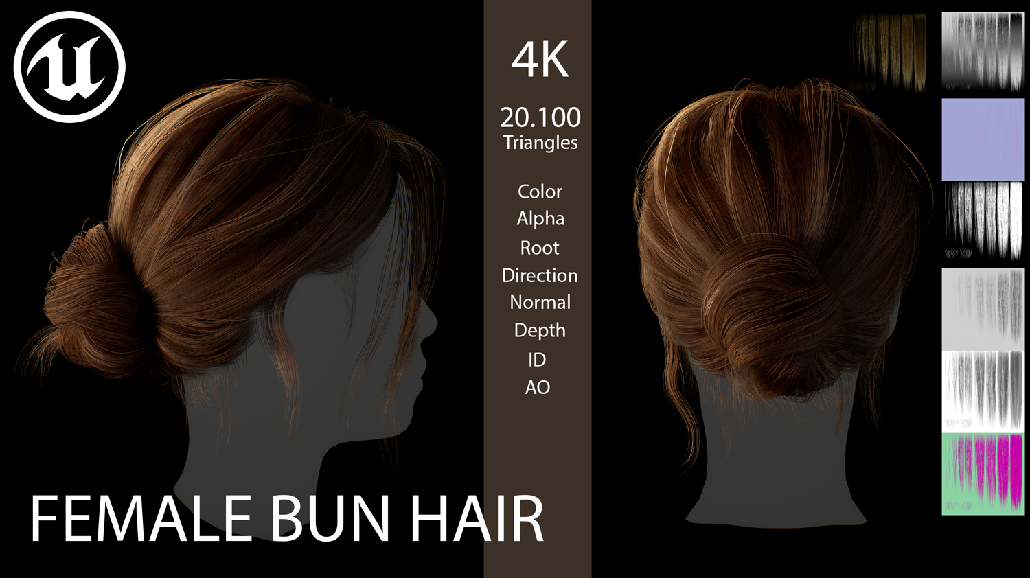 PBR cards: Hair albedo blond AO Normal ID Depth Directional Roots Alpha