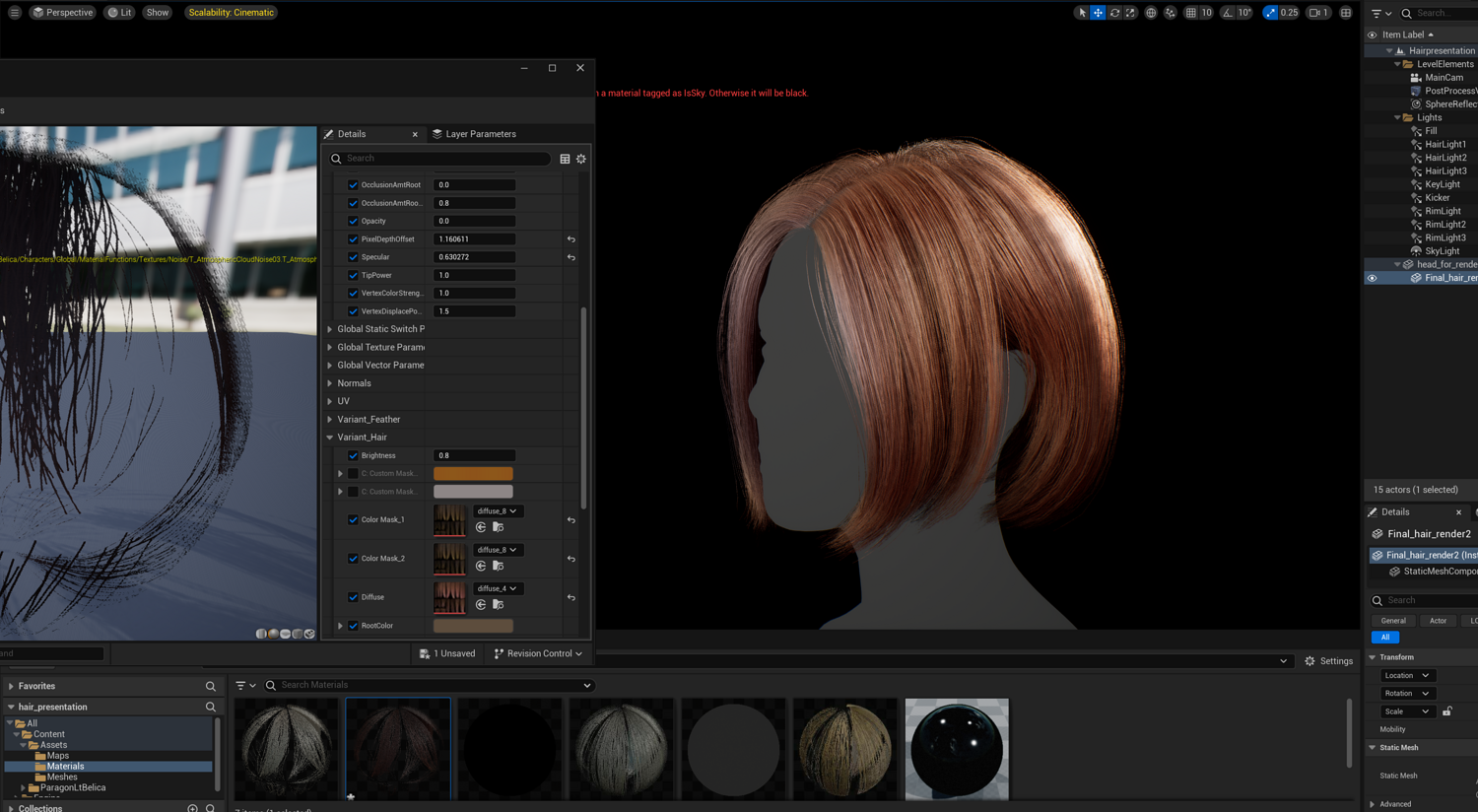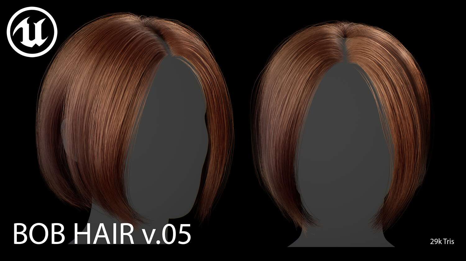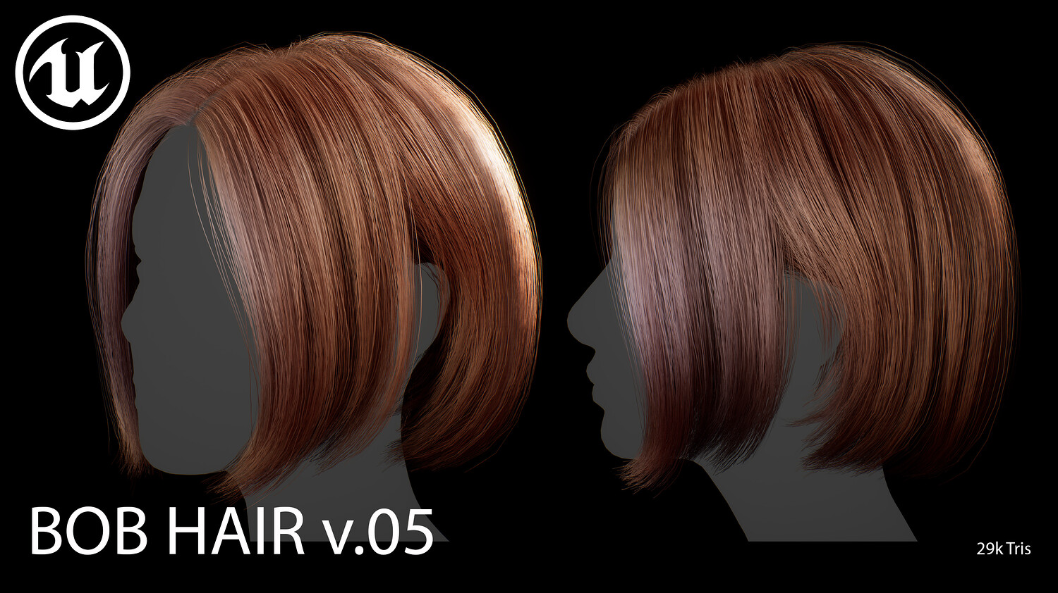 This elegant real-time female Bob v05 hairstyle is designed for use in games, cinematics, and real-time applications. Hair textures created with XGen (textures were made and baked using xGen and Arnold) and optimized for Unreal Engine 4-5, this asset delivers both performance and high visual quality.