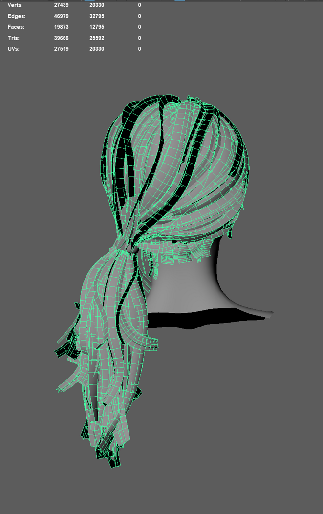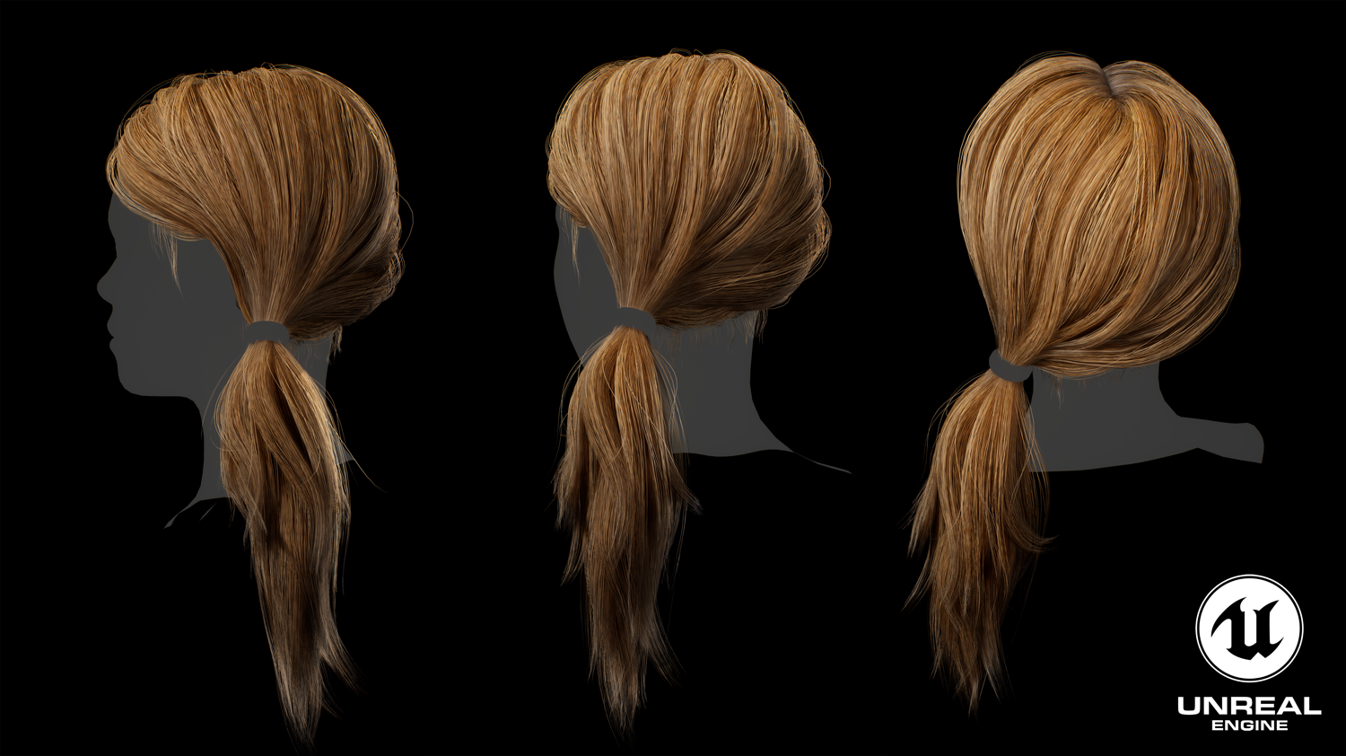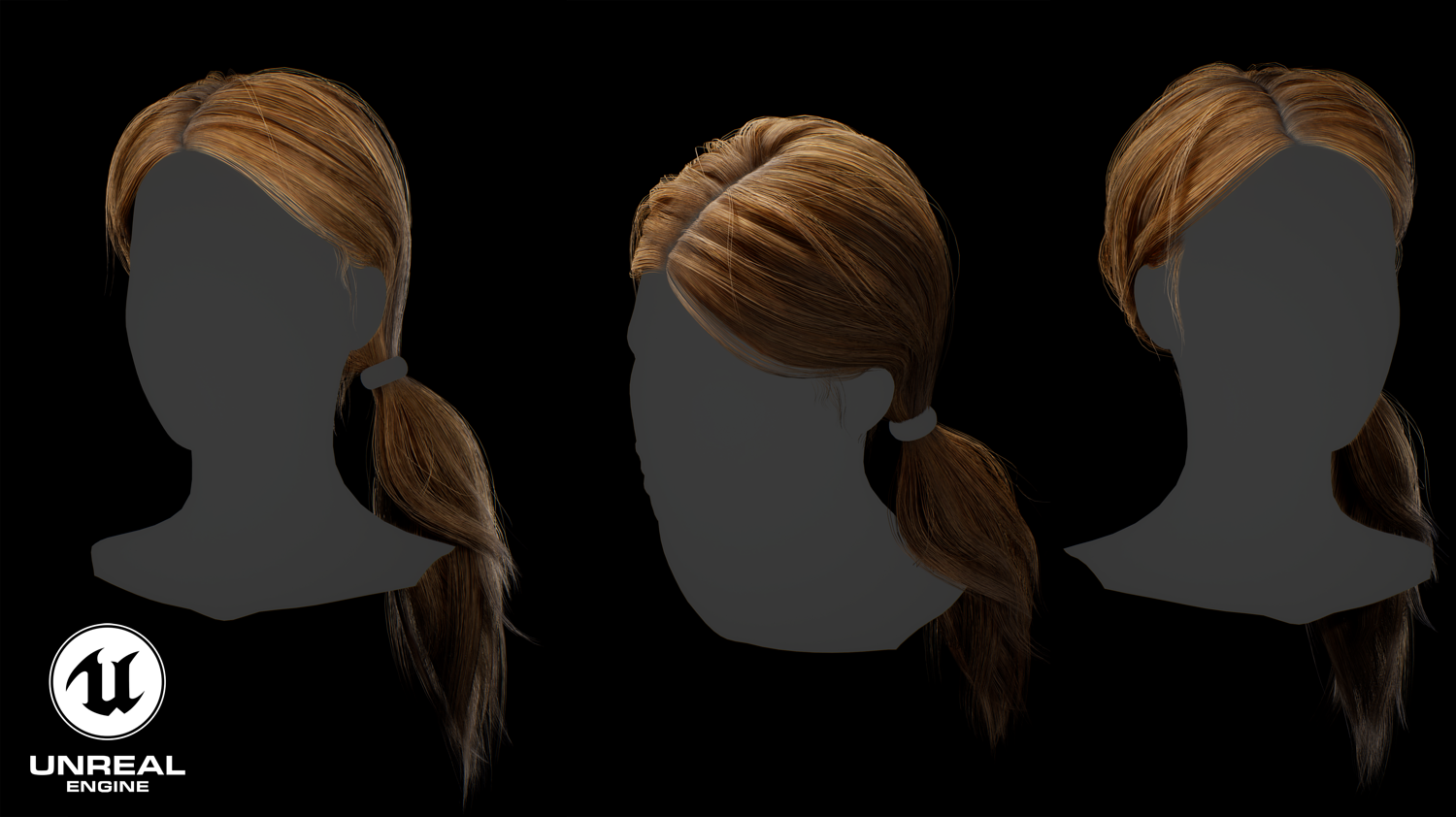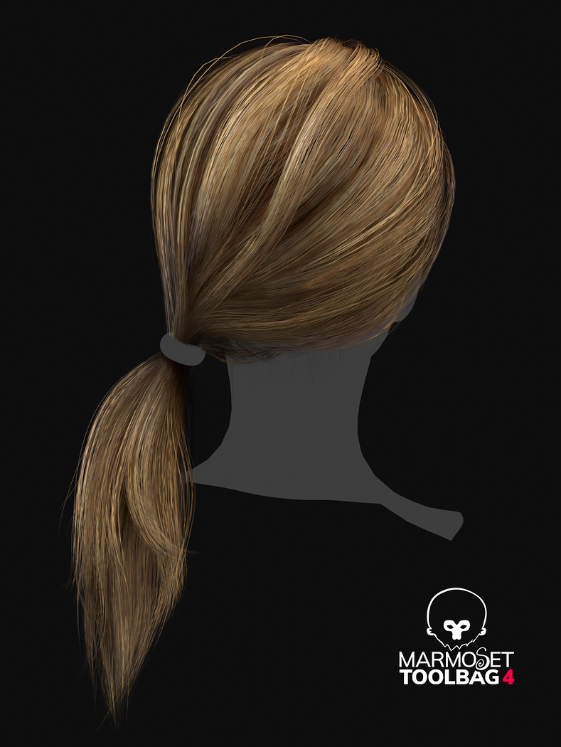 Game ready female long tail hairstyle real time hair