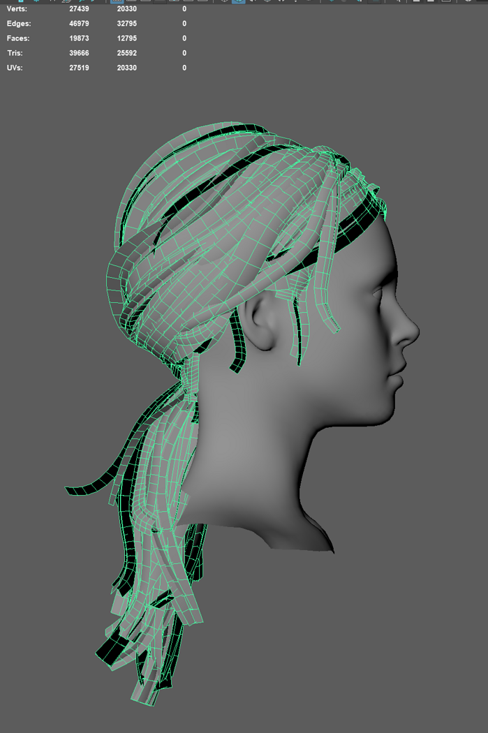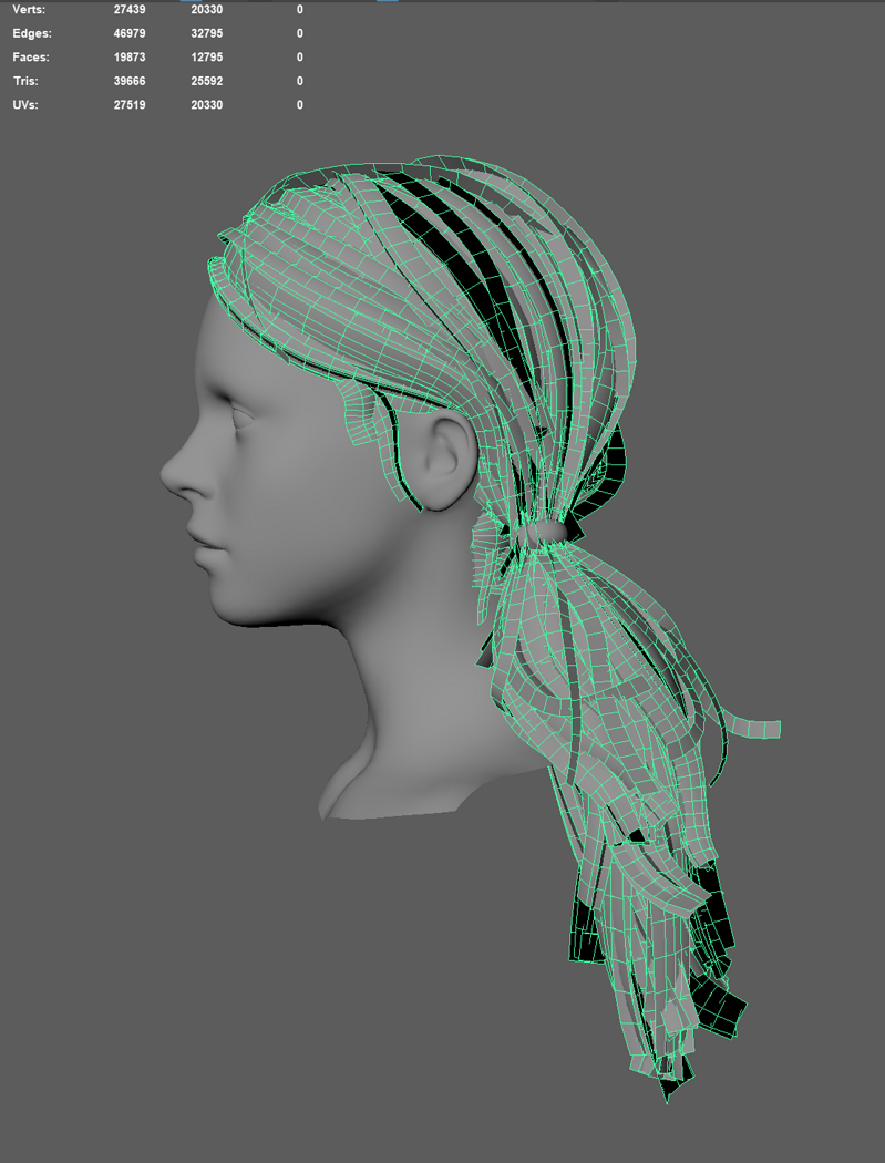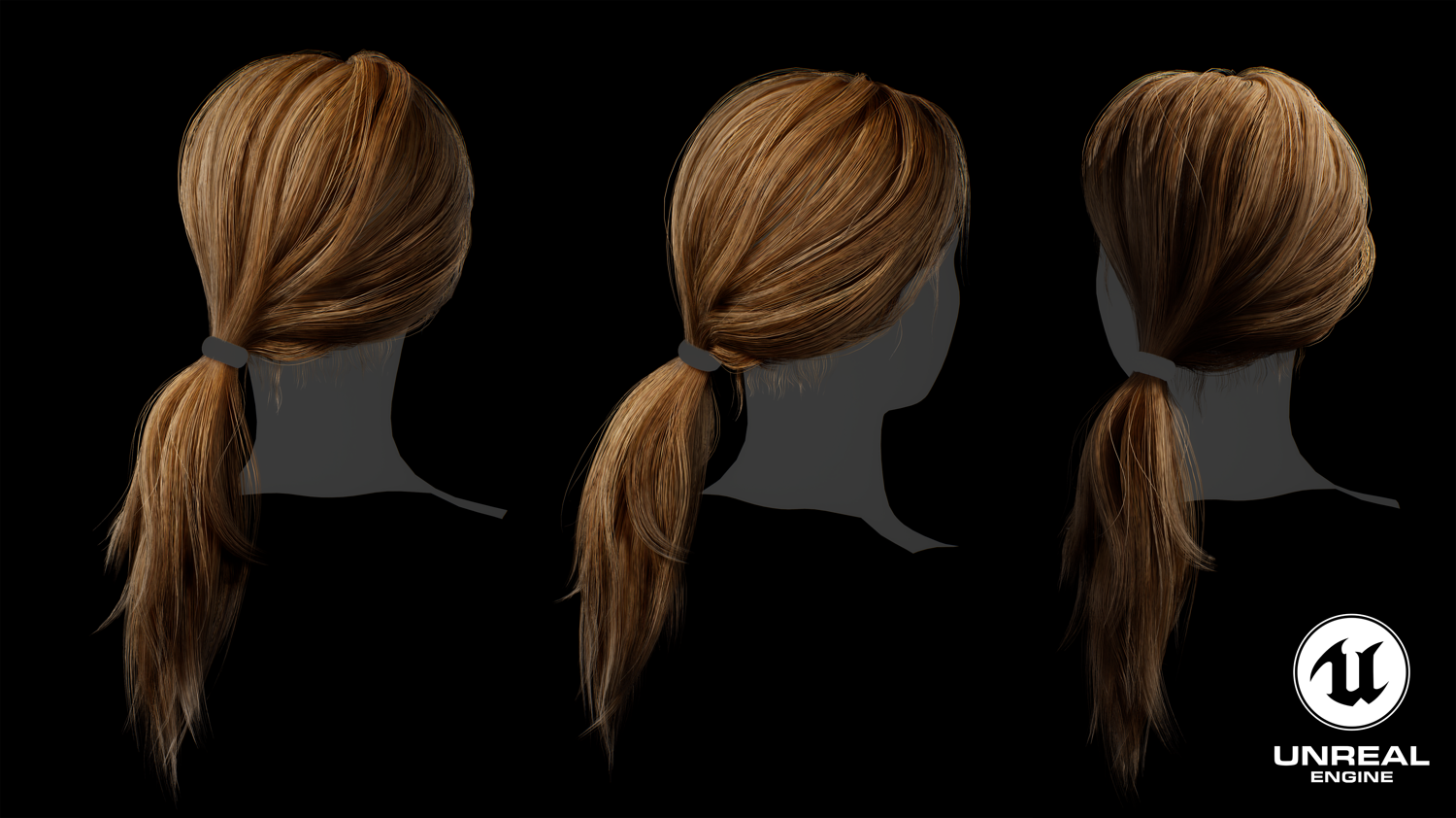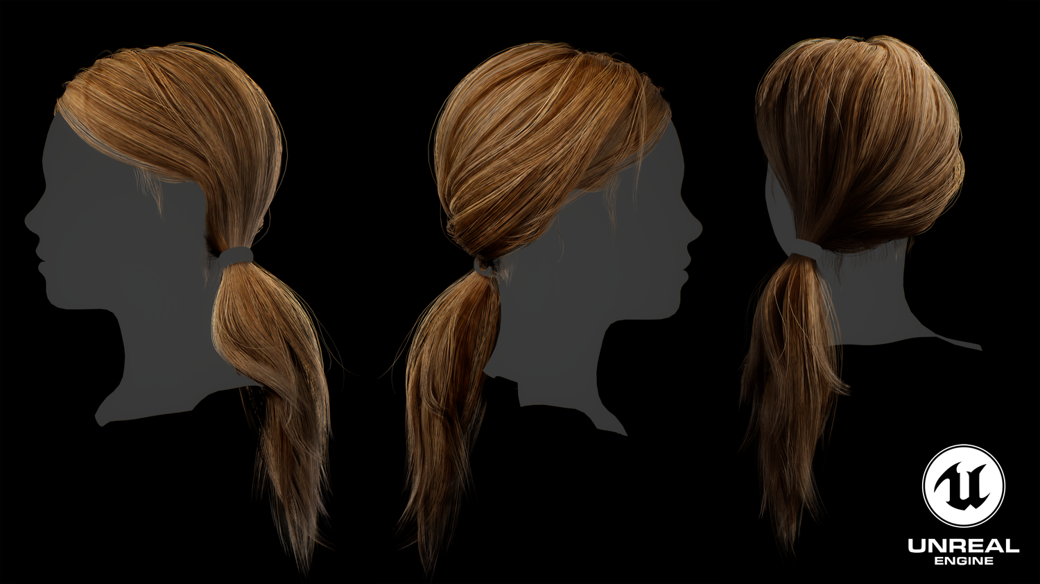 Game ready female long tail hairstyle real time hair