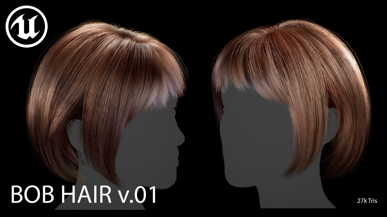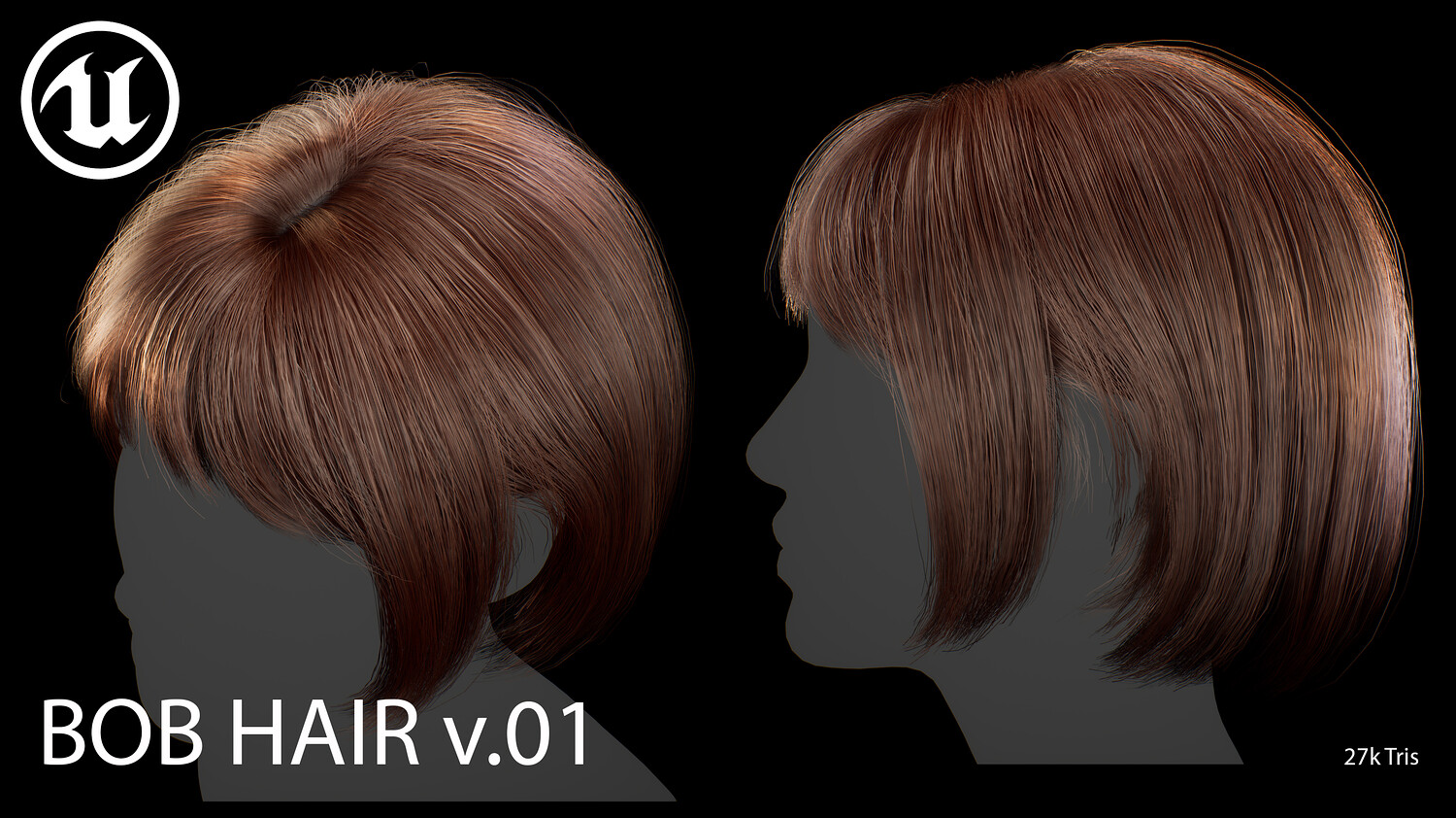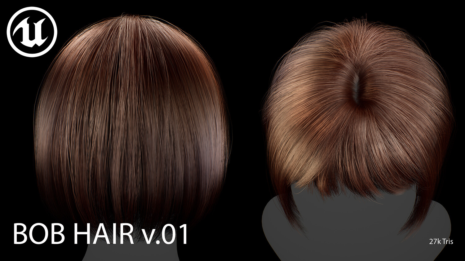 This elegant real-time female Bob hairstyle is designed for use in games, cinematics, and real-time applications. Hair textures created with XGen (textures were made and baked using xGen and Arnold) and optimized for Unreal Engine 4-5, this asset delivers both performance and high visual quality.